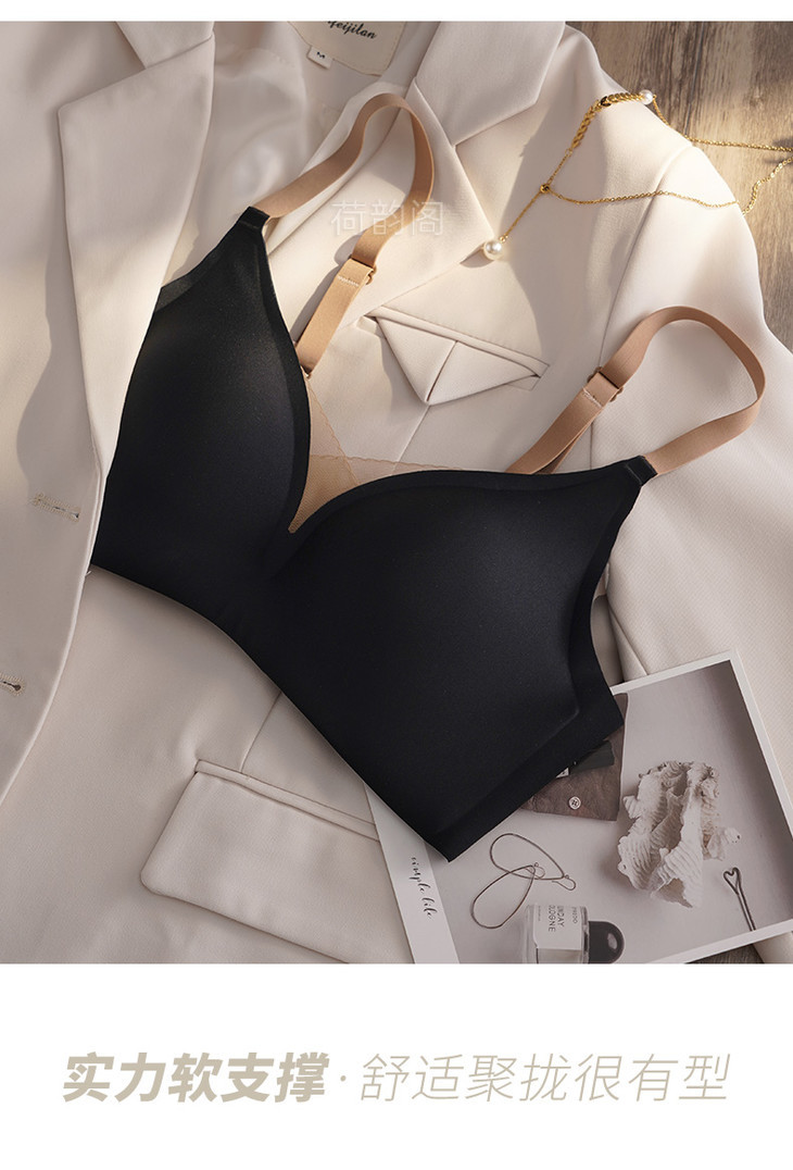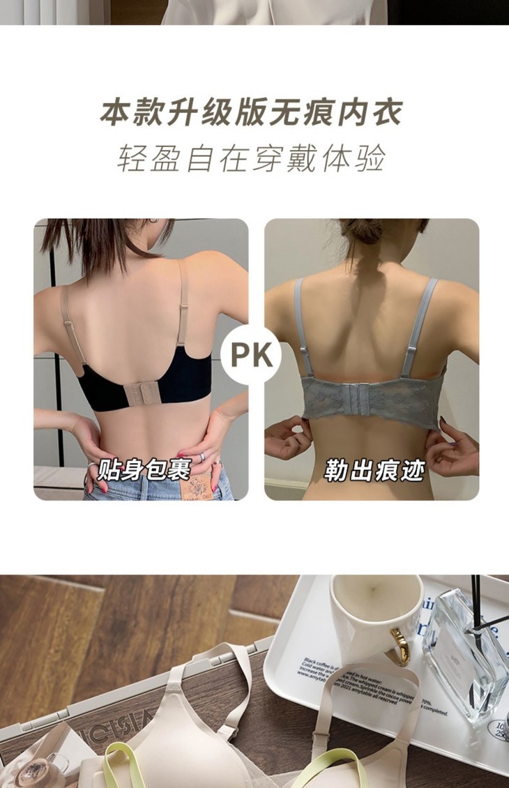 【买一送一】创意撞色设计 薄款无痕光面小胸聚拢文胸 无钢圈上托防下垂舒适透气