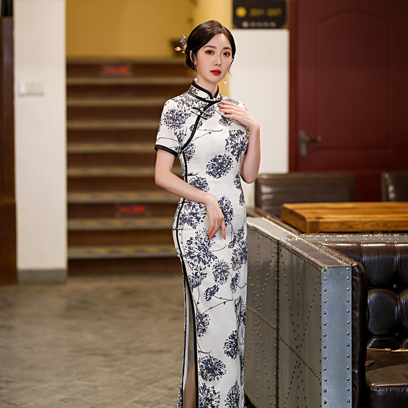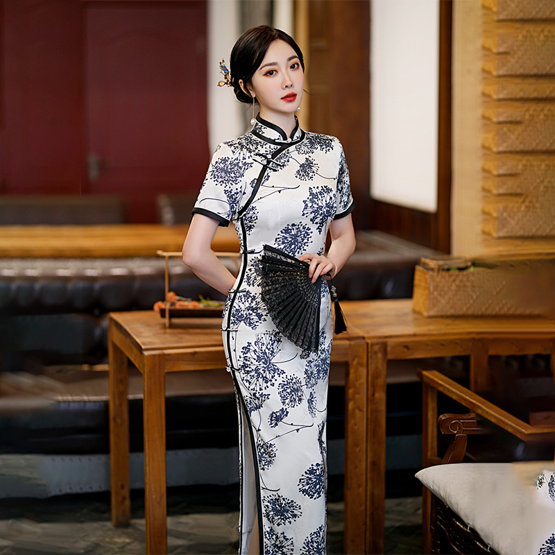 2022春夏改良长款宽边八扣旗袍日常复古修身老上海时尚旗袍 ZA5100