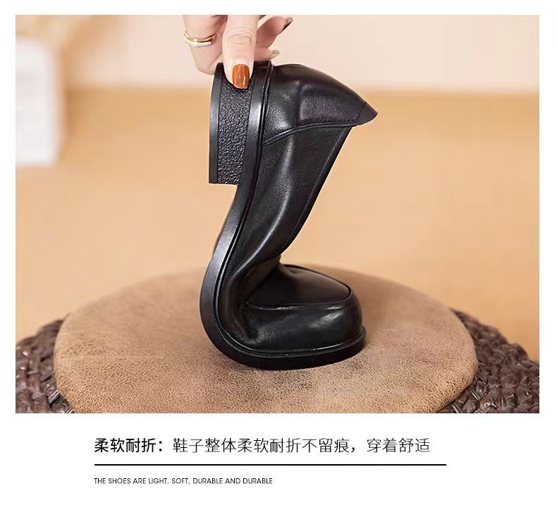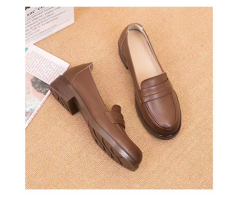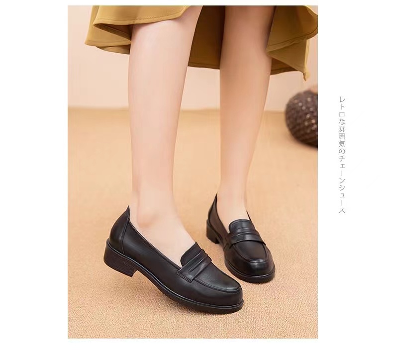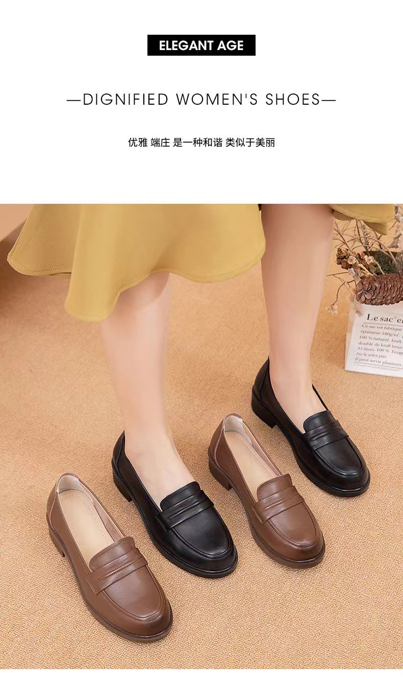 【实付满399送保温杯】【圆头小皮鞋】女2024新款黑色头层牛皮基础款套脚乐福鞋