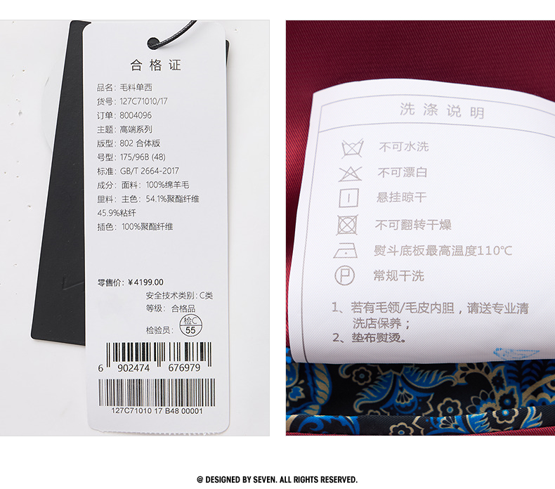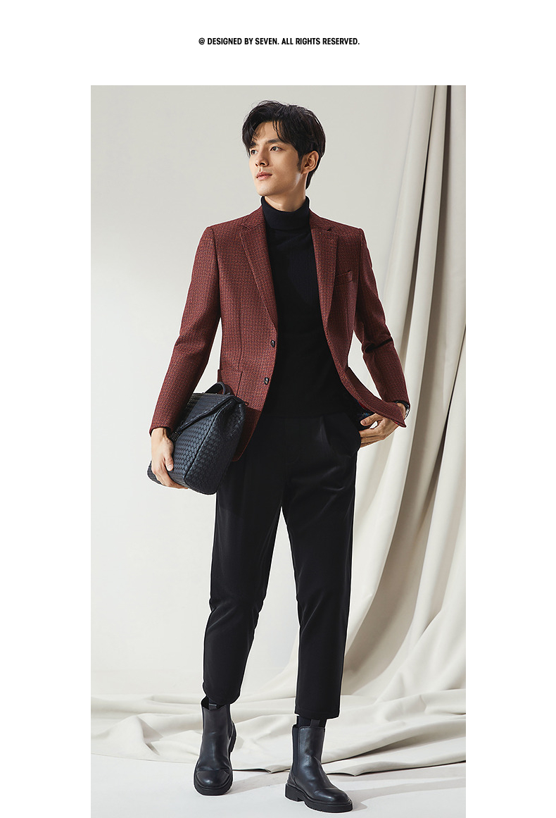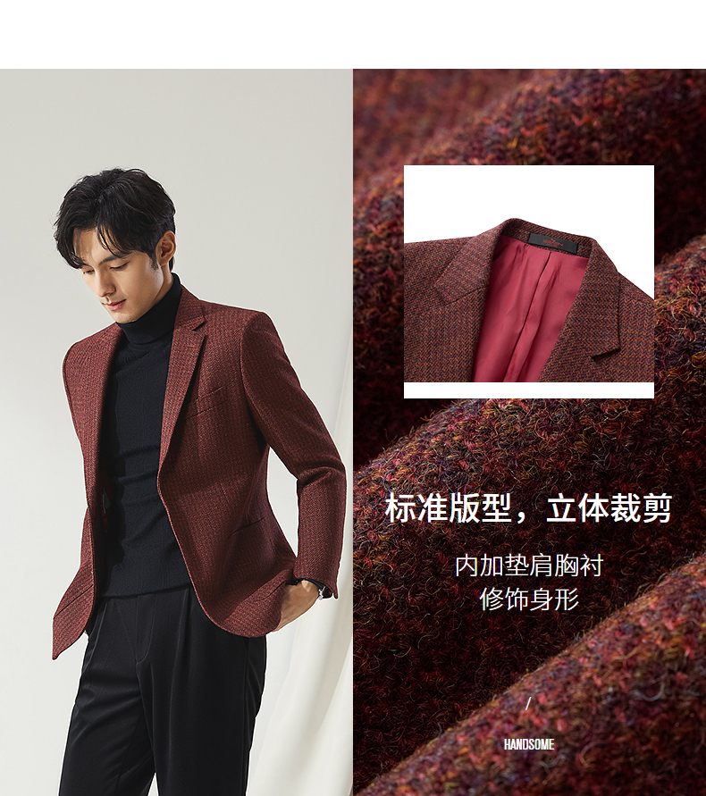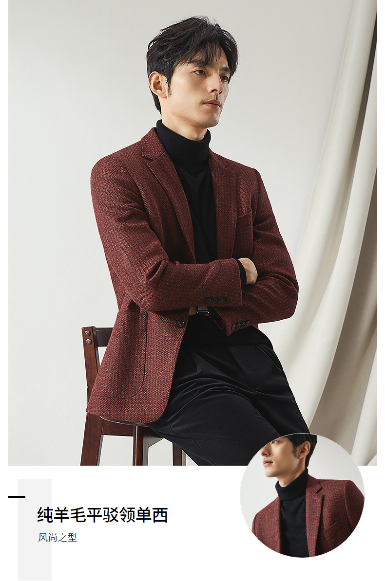 【高端系列】柒牌西装男秋冬新品进口面料纯羊毛商务休闲西服外套 127C71010