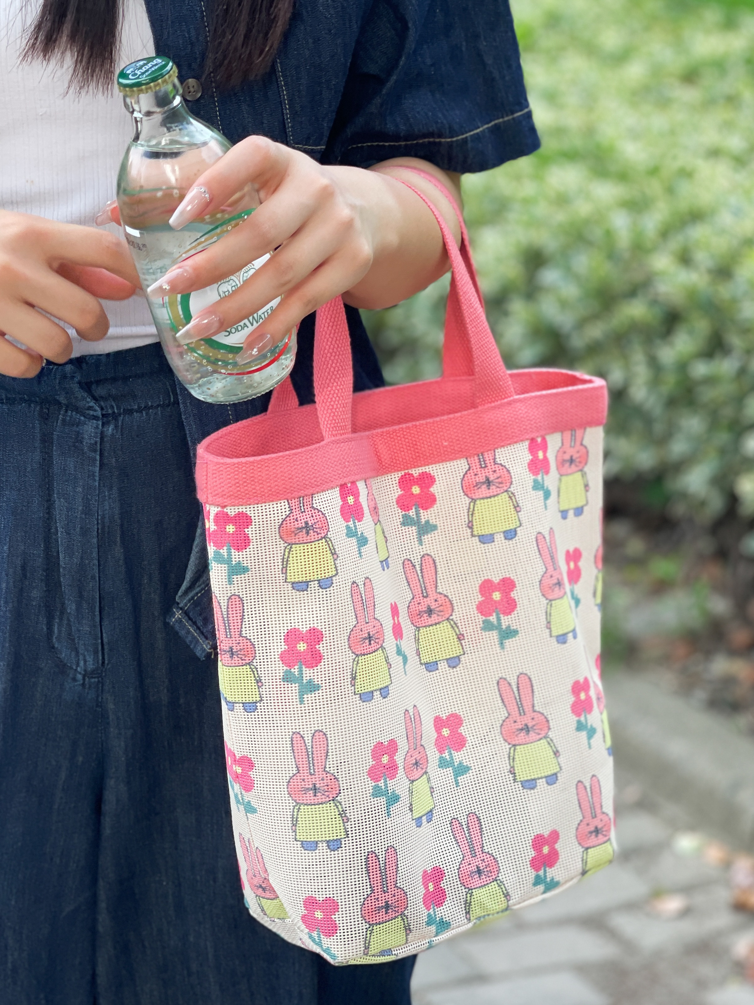 citywalk必备❗超可爱的万能手提包❗NDHT夏日浪漫网眼包!轻盈且巨能装,可爱随性,拍照贼出片 可当遛娃包/野餐包/沙滩包/通勤包.加厚沙滩网材质+立体边骨锁边设计 桶状超大容量,可放笔记本电脑