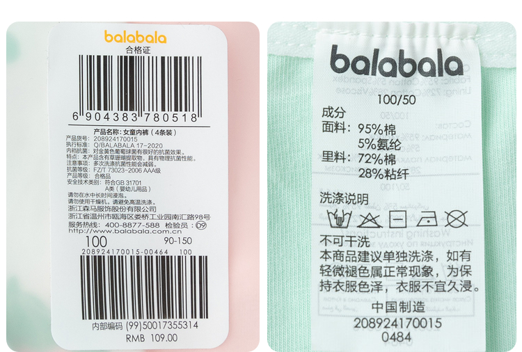 巴拉巴拉女童内裤棉平角儿童三角短裤小童宝宝不夹PP亲肤萌四条装