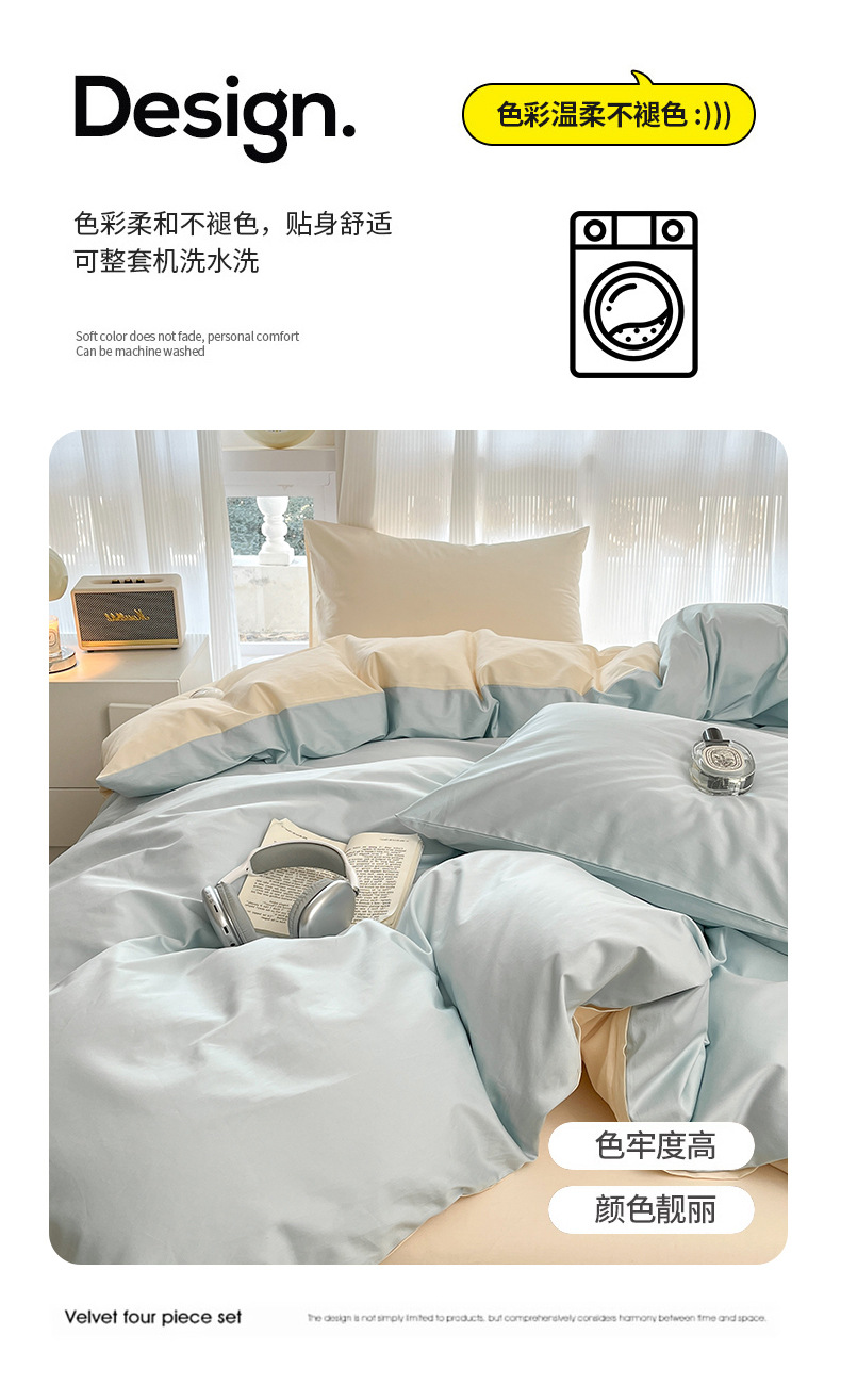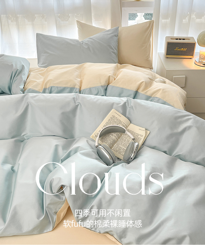 【四季可用!A类母婴级】60支纯棉四件套ins风全棉床上四件套纯色南通家纺春秋款。ry