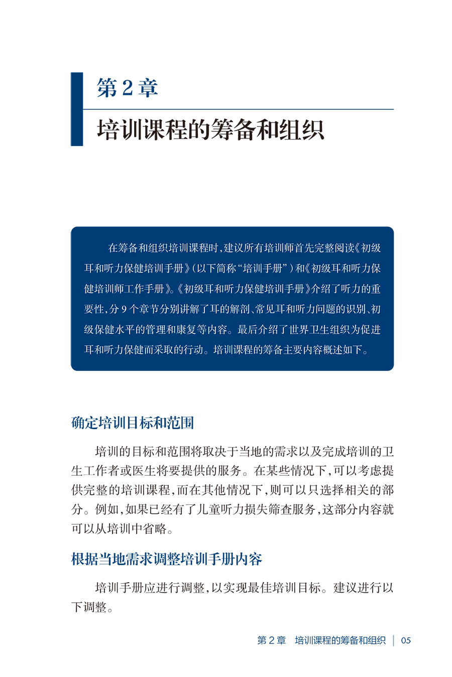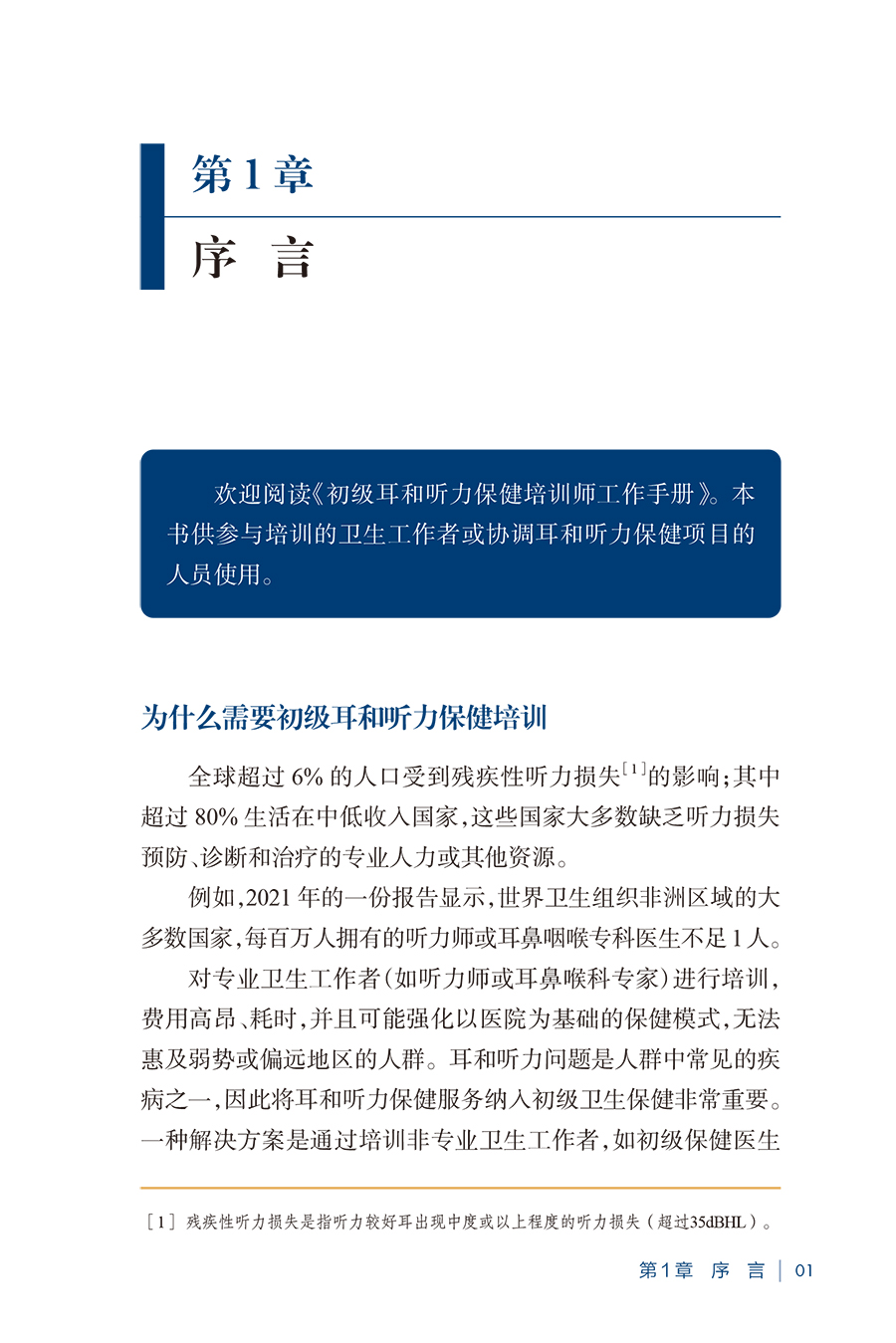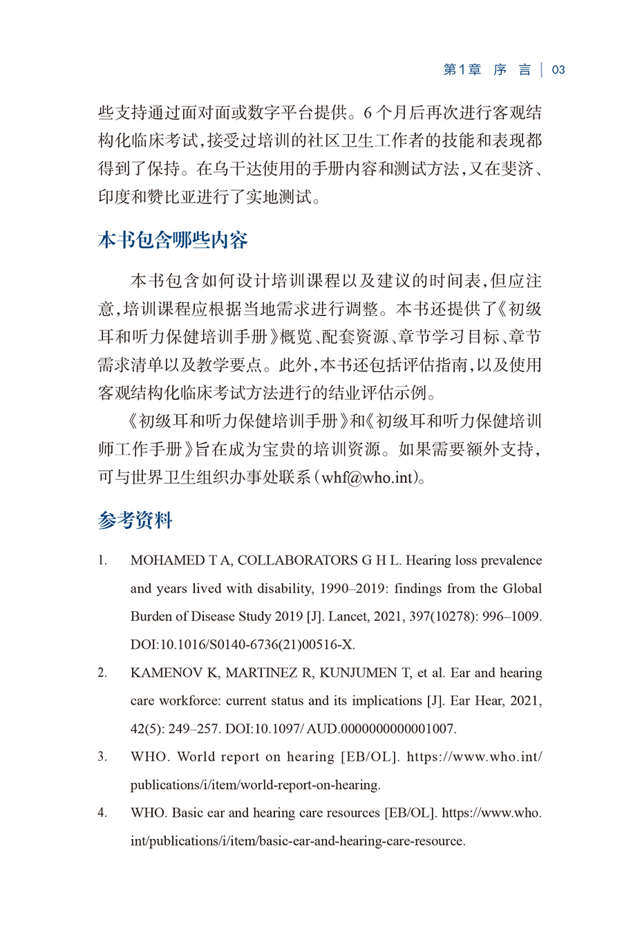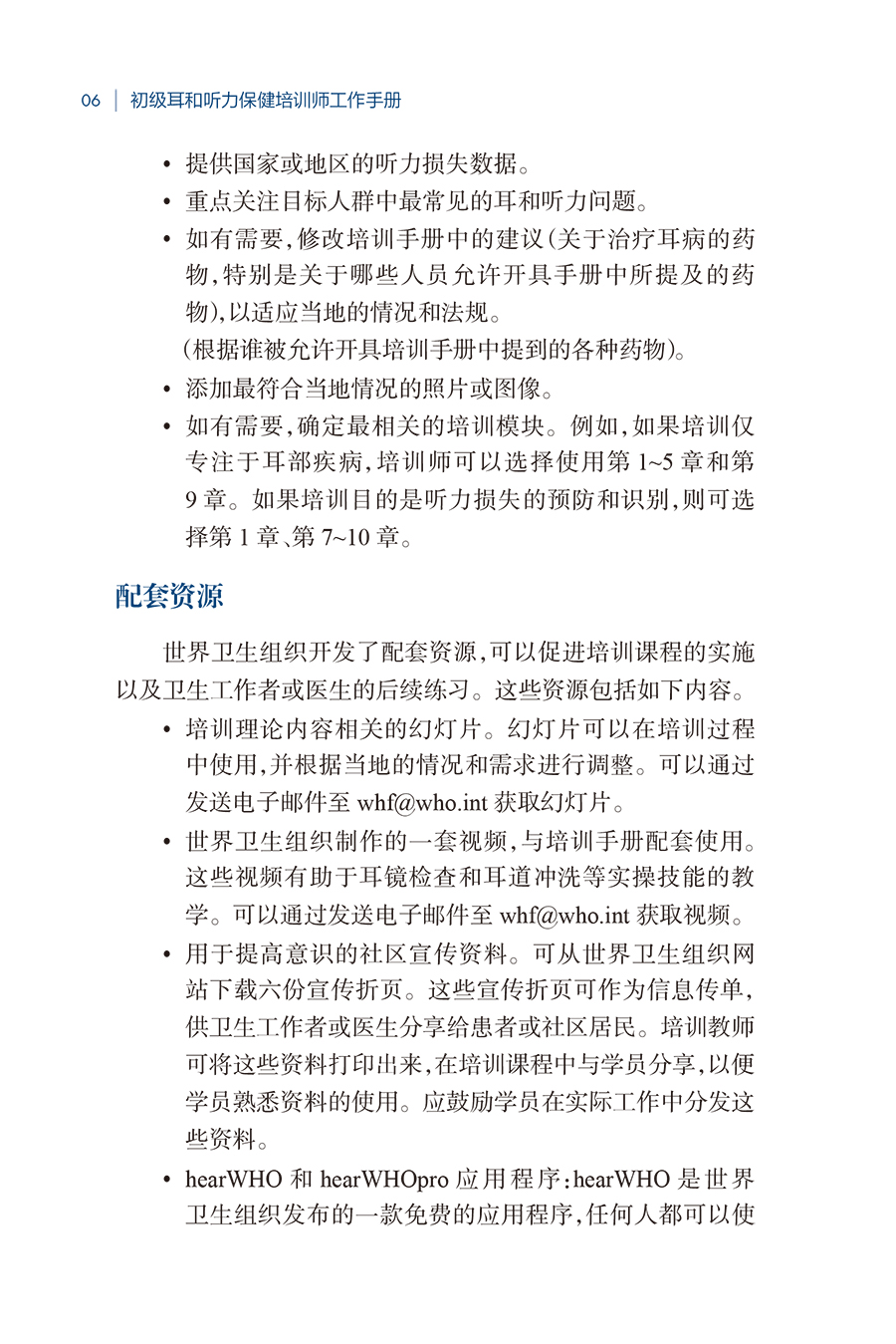 本书以《初级耳和听力保健培训师读本》为基础,供参与培训的卫生工作者或协调耳和听力保健项目的人员使用。分别讲解了耳的解剖、常见耳和听力问题的识别、初级保健水平的管理和康复等内容。最后介绍了世界卫生组织为促进耳和听力保健而采取的行动。本书包含如何设计培训课程以及建议的时间表,还提供了《初级耳和听力保健培训手册》概览、配套资源、章节学习目标、章节需求清单以及教学要点。此外,本书还包括评估指南,以及使用客观结构化临床考试方法进行的结业评估示例。