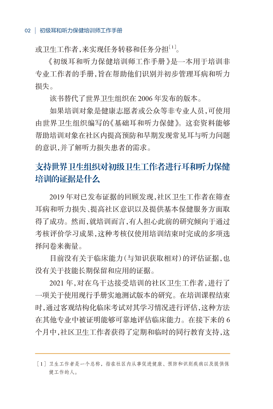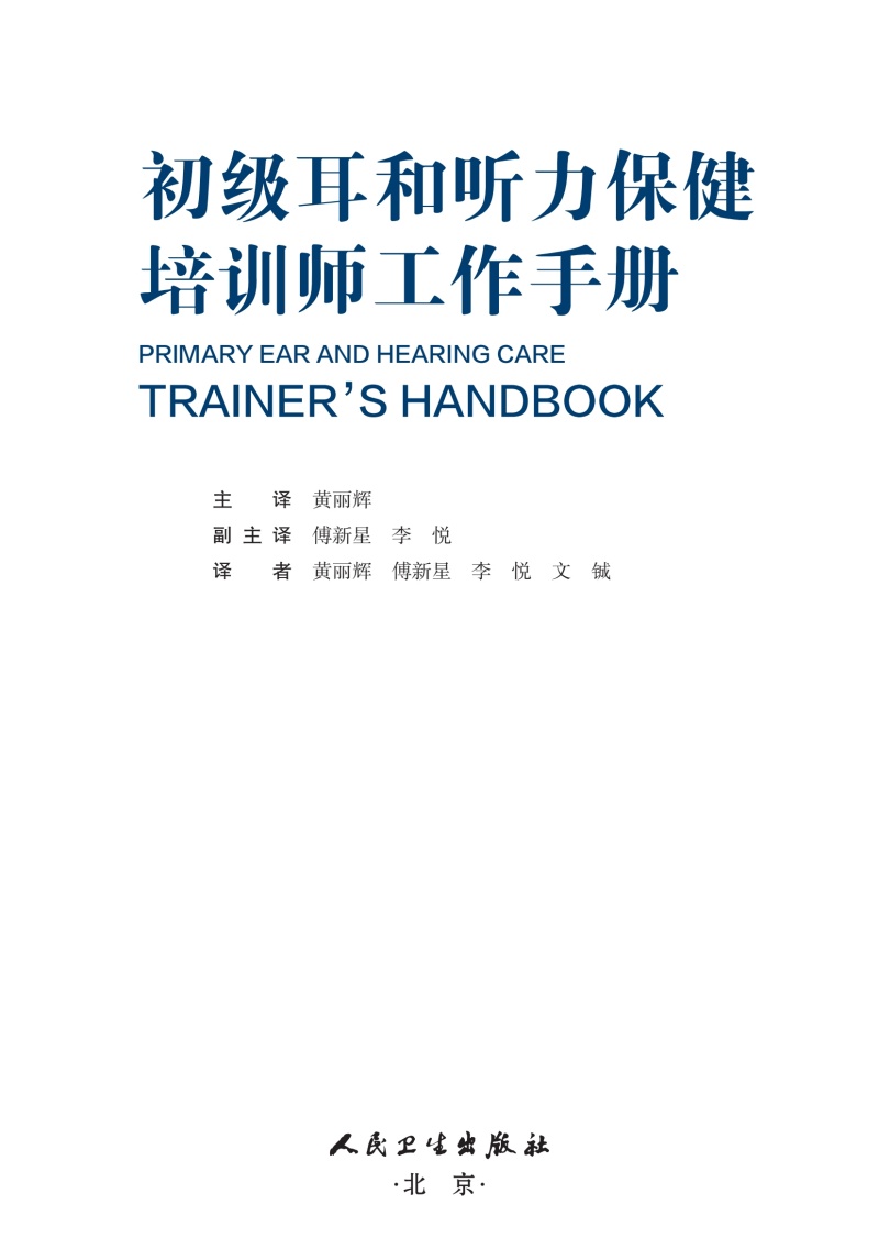 初级耳和听力保健培训师工作手册 黄丽辉 主译 供参与培训的卫生工作者或协调耳和听力保健项目的人员使用 参考书 人民卫生出版社