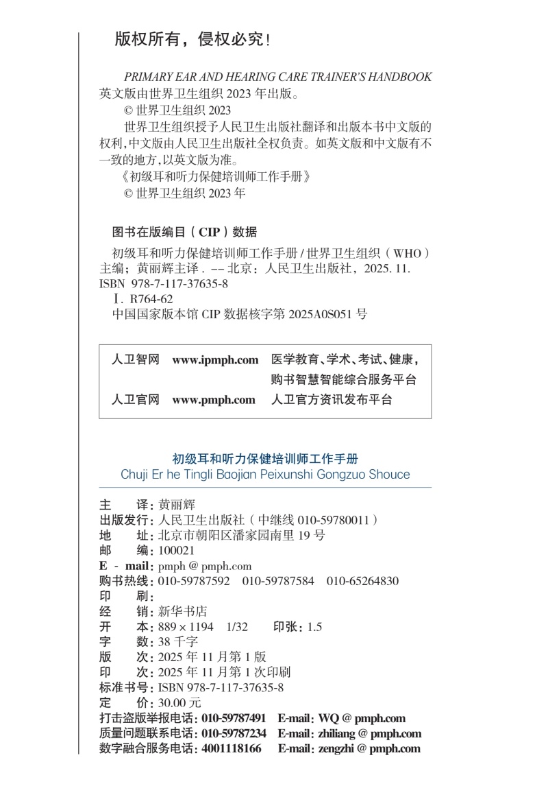书名:初级耳和听力保健培训师工作手册