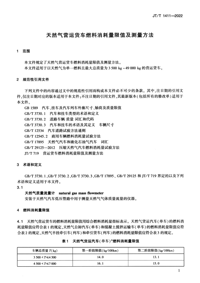 书名:天然气营运货车燃料消耗量限值及测量方法(JT/T 1411—2022)