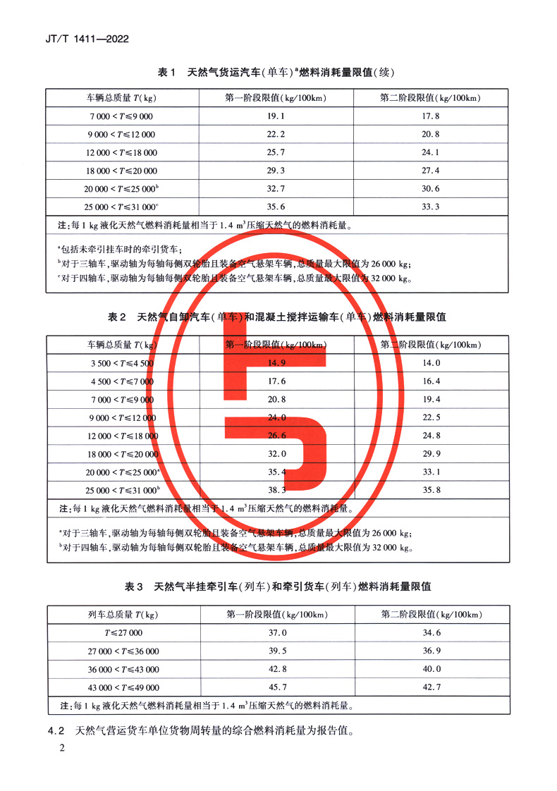 天然气营运货车燃料消耗量限值及测量方法(JT/T 1411—2022)