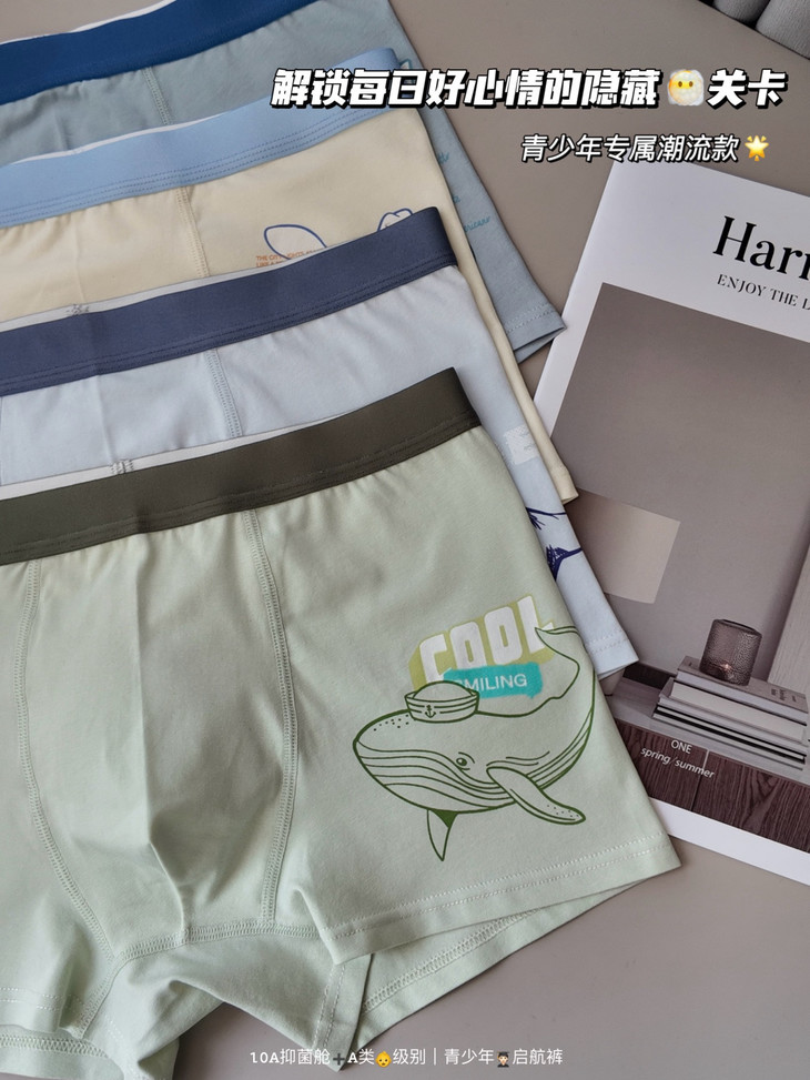 📣🔥 妈妈必看👀孩子进入发育期,挑选内裤成了技术活! 太勒、不透气、材质不安全...别让“小事”影响孩子的舒适一天 「青少年👦成长期“启航裤”」专属版型贴合青春期体型 U型囊袋预留成长空间,✅避免摩擦,告别成人款将就穿!