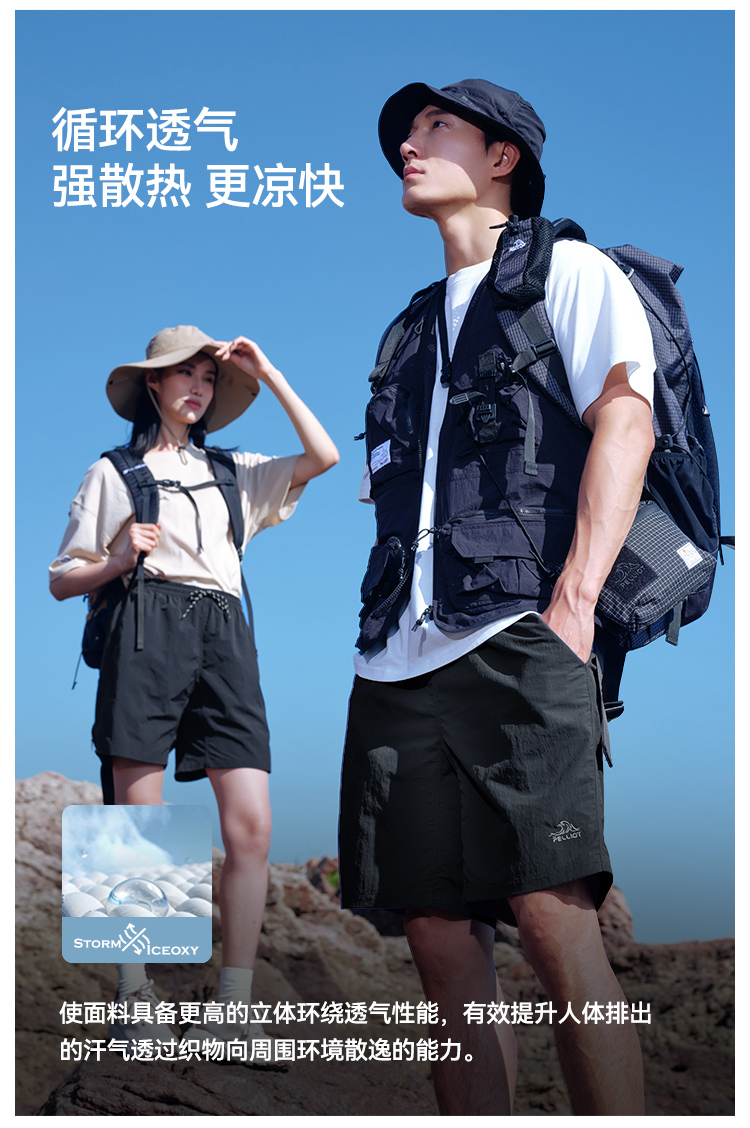 【山系】伯希和户外快干男轻薄透气休闲短裤女耐磨防泼登山运动裤