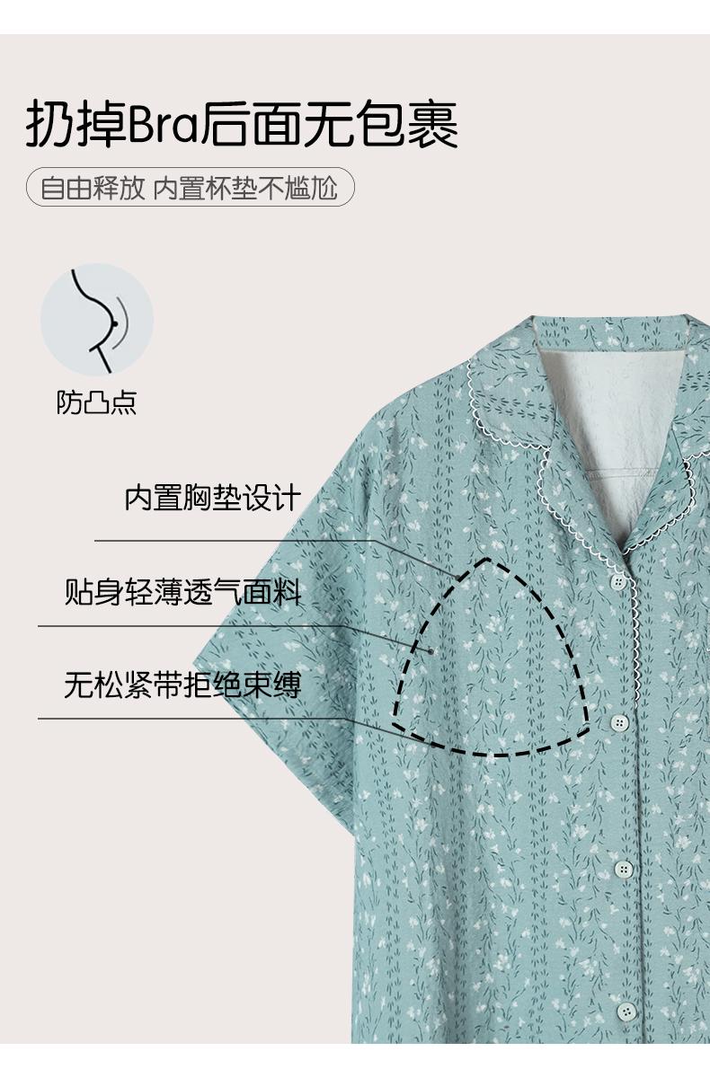 可人儿小众设计泡泡绵女士带胸垫睡衣夏季短袖可外出家居服三件套