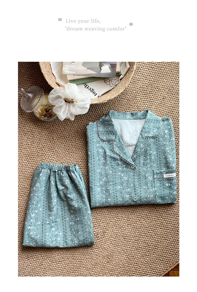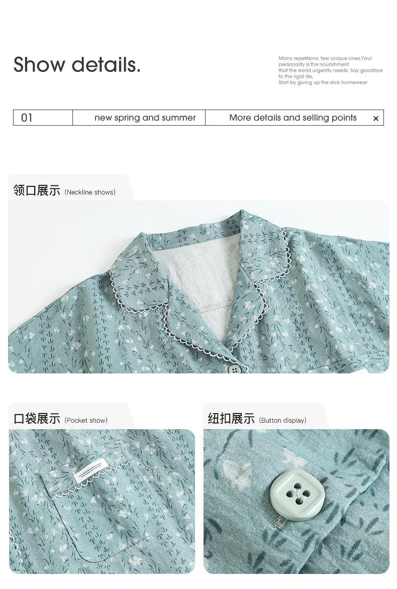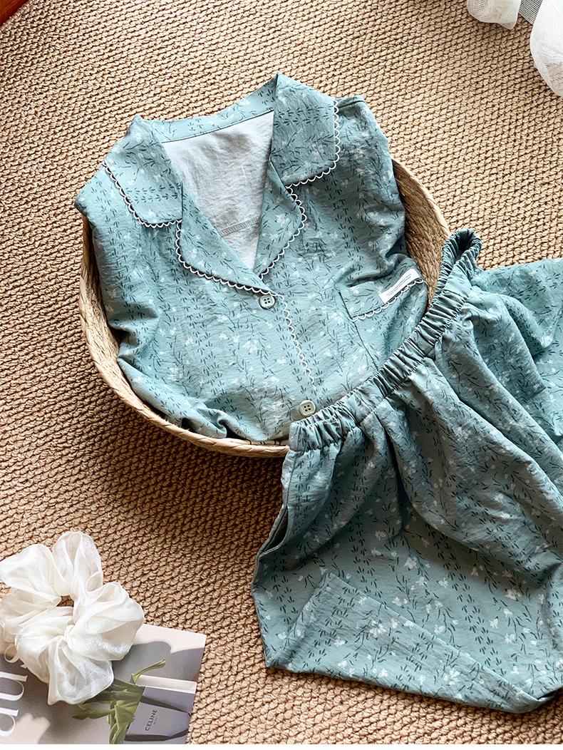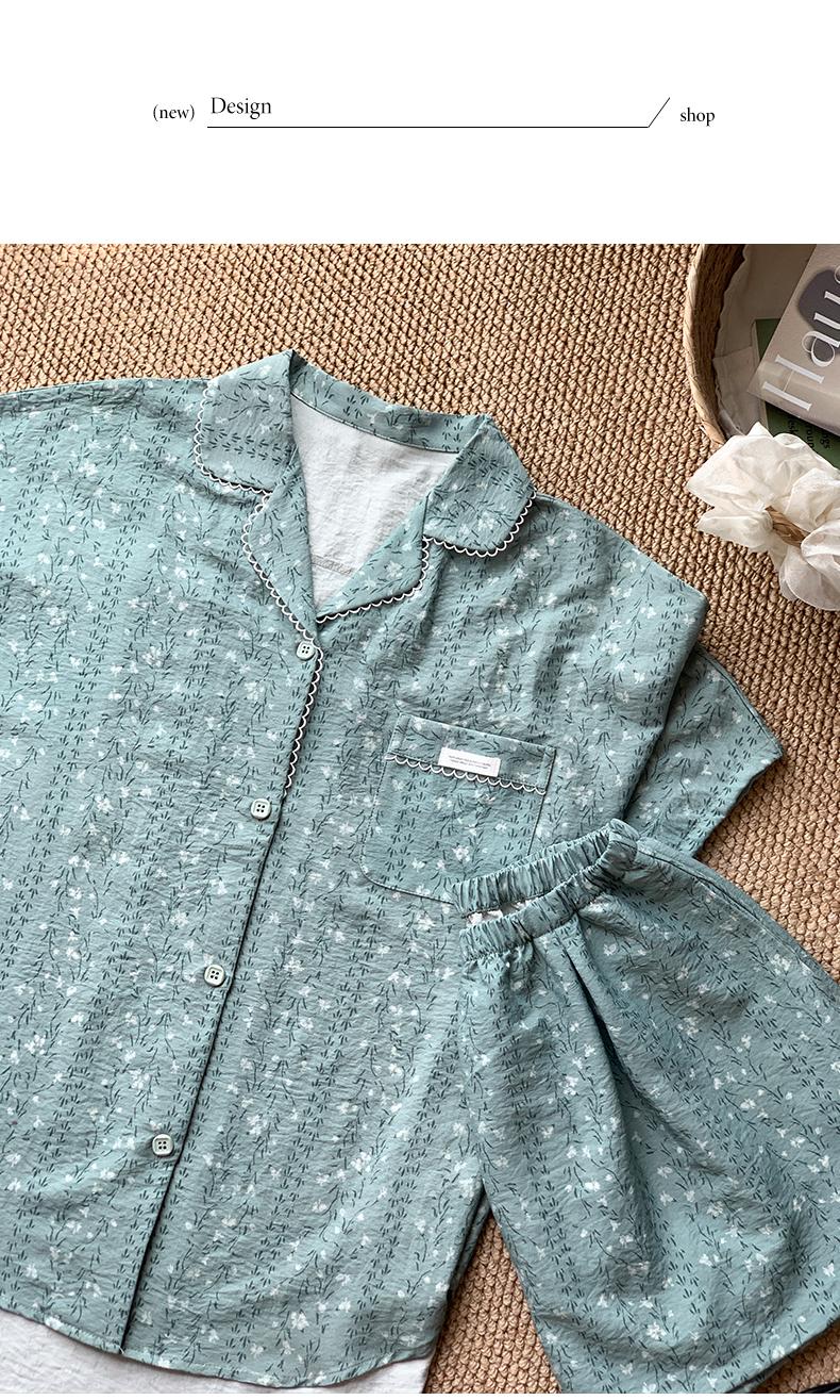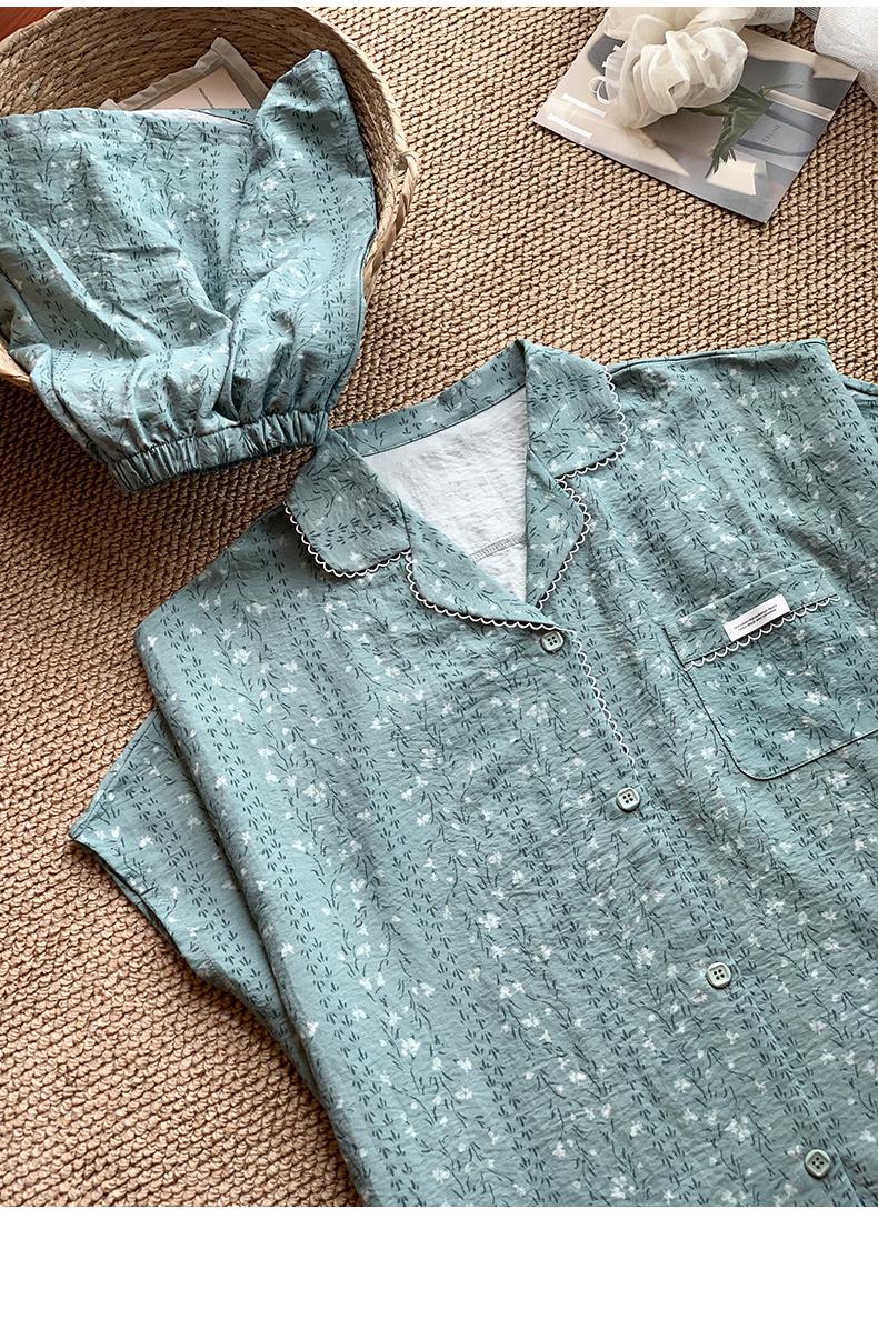 可人儿小众设计师新款泡泡绵女士睡衣夏季短袖可外出家居服三件套