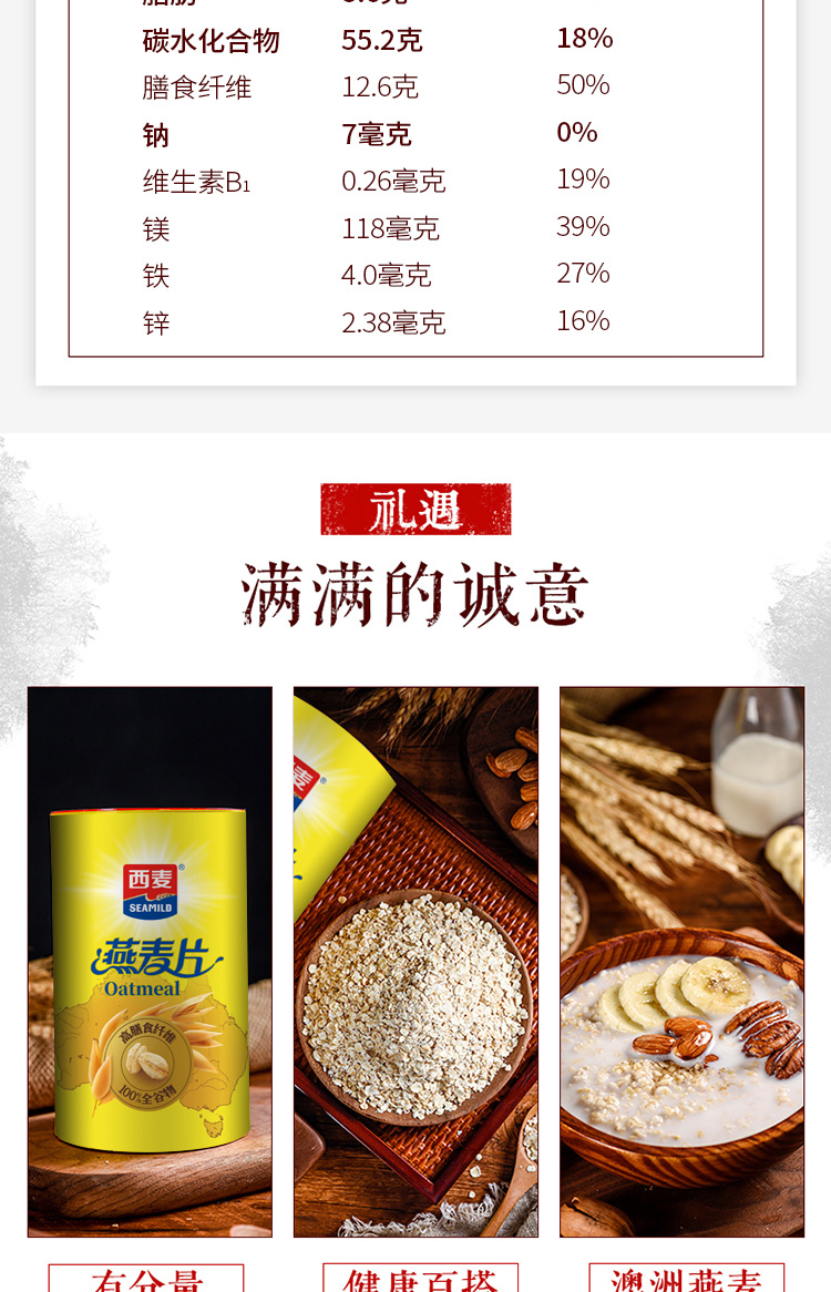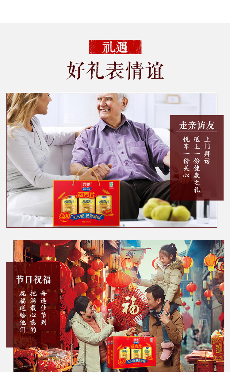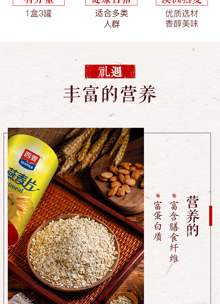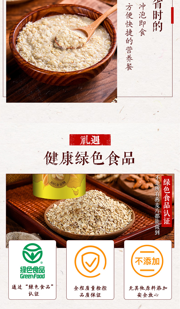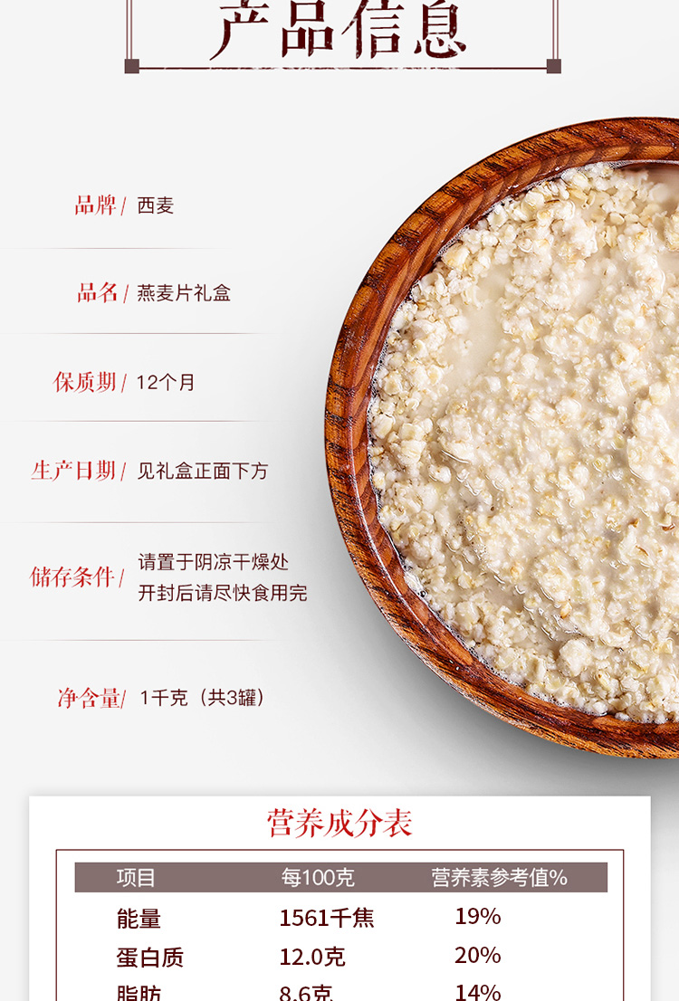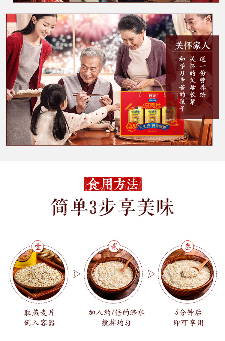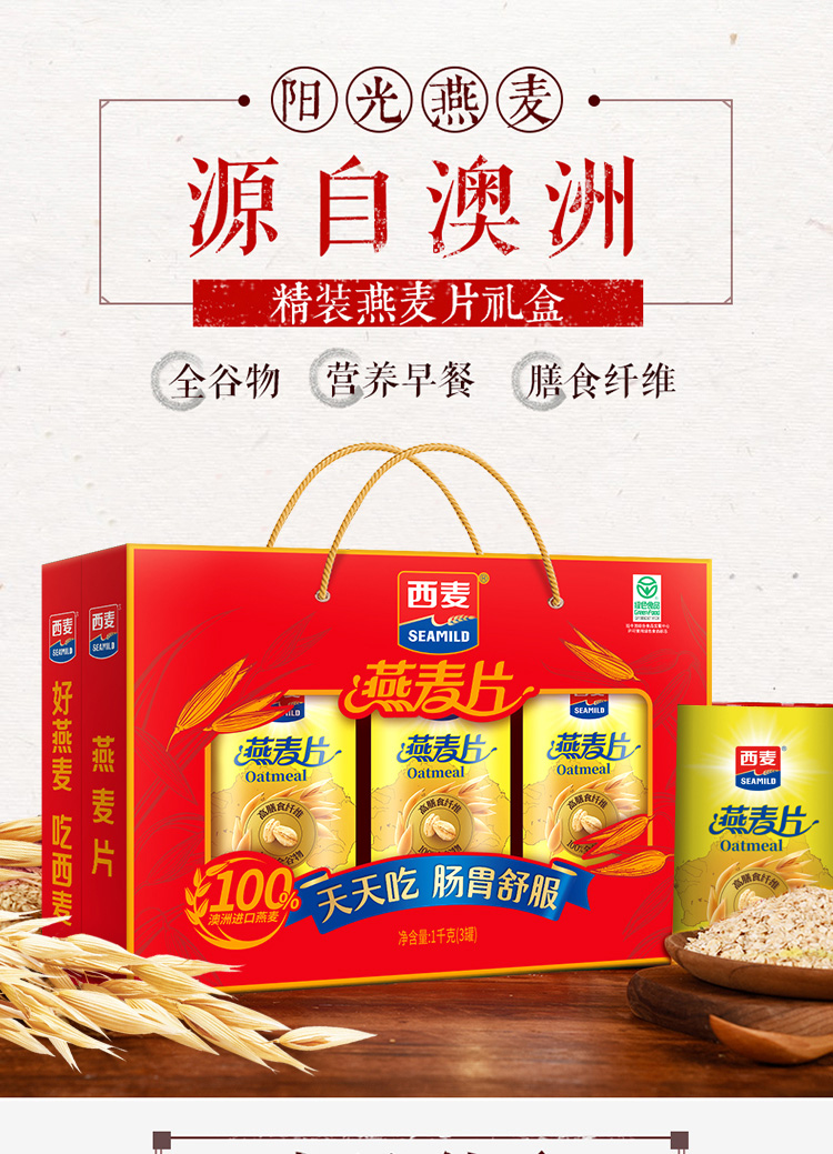 燕麦片礼盒1kg内含3包独立包装高纤维即食早餐家庭健康节假日礼赠装