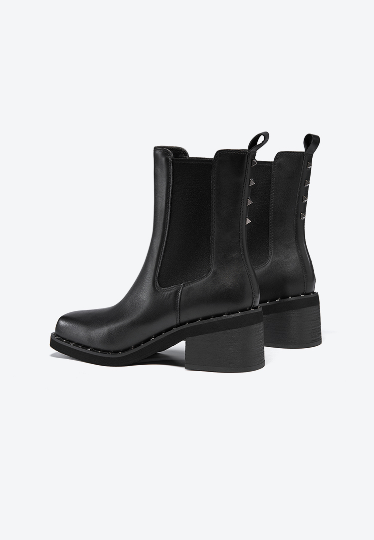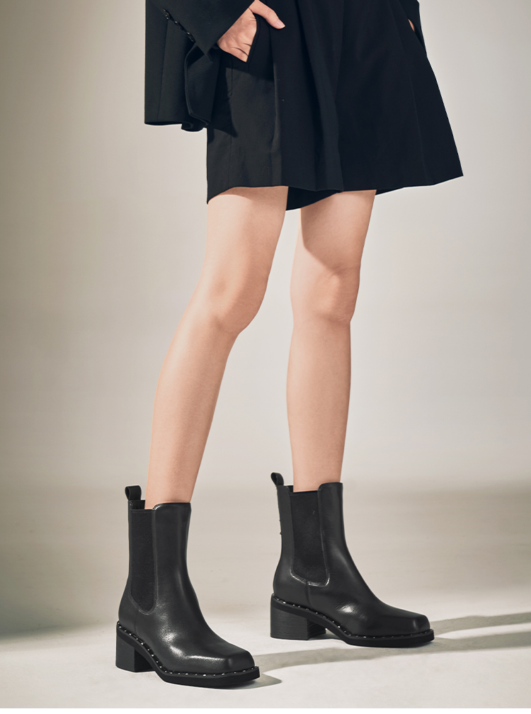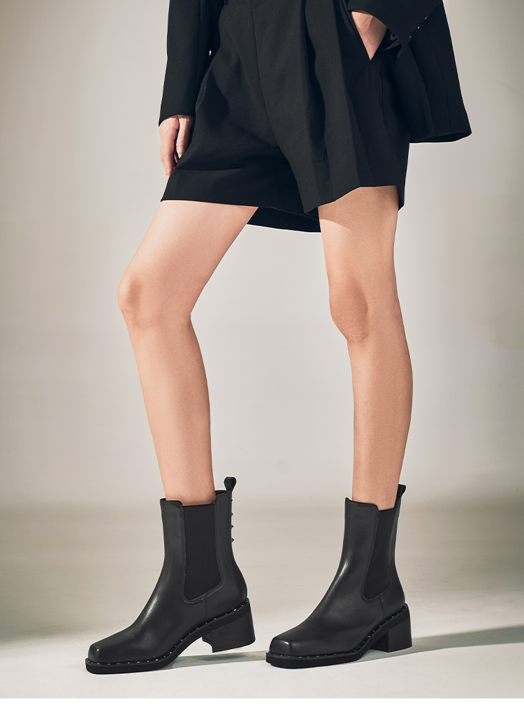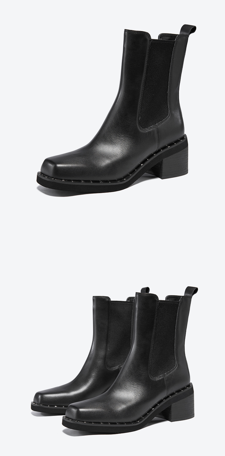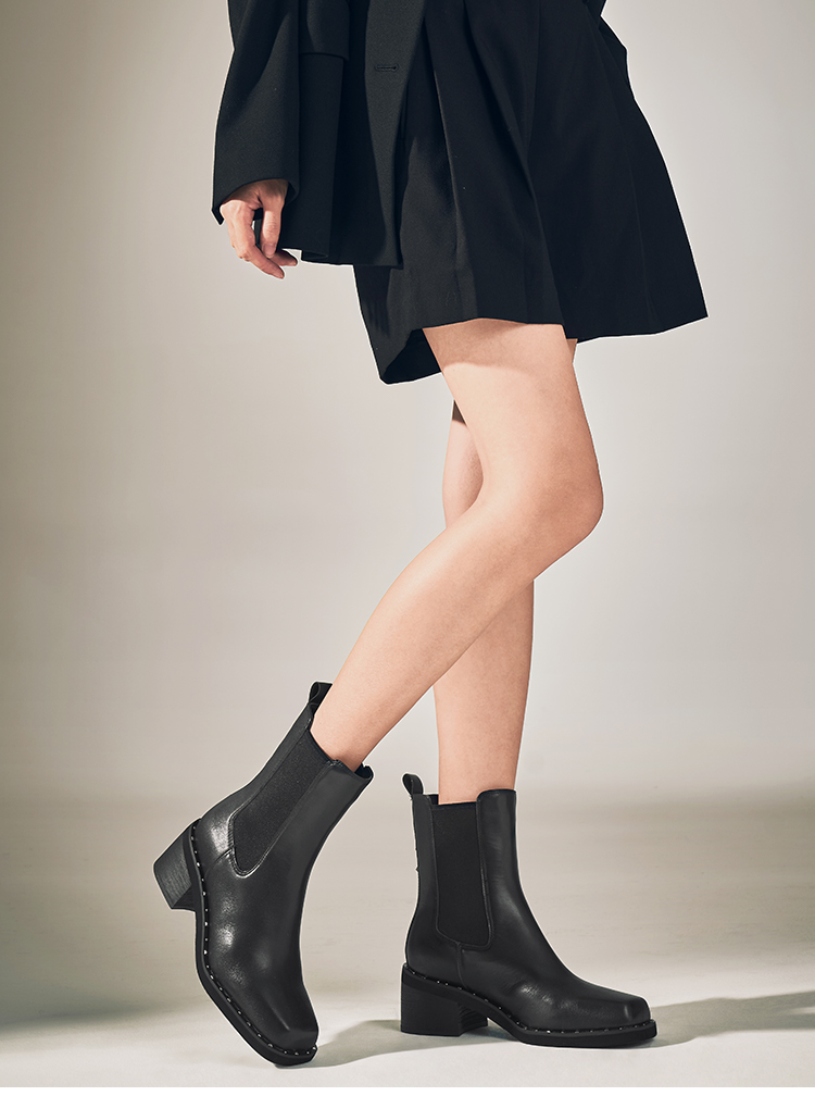 星期六时髦猪鼻头铆钉沿边粗跟切尔西SSC4116345