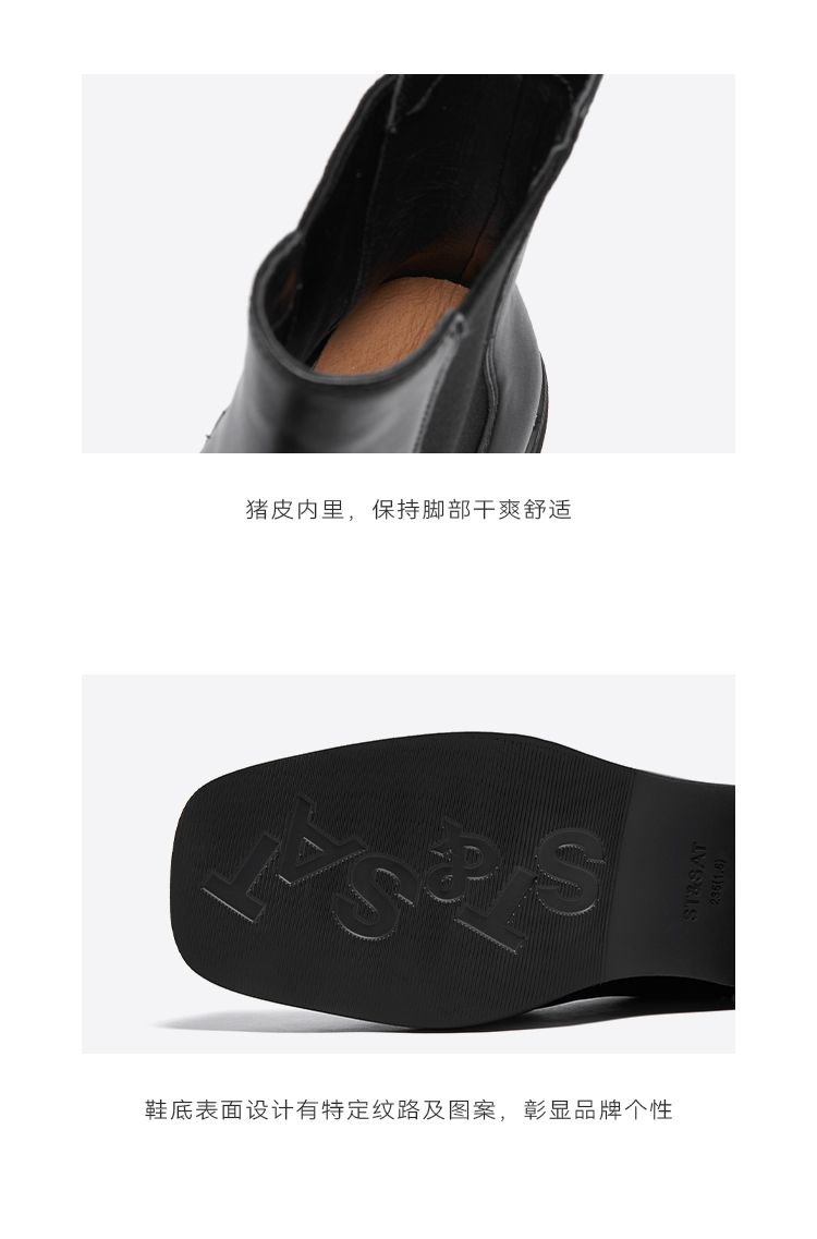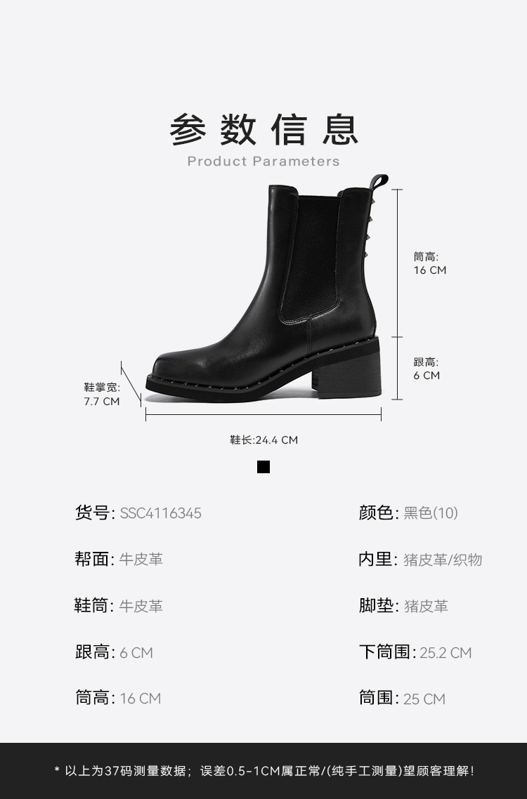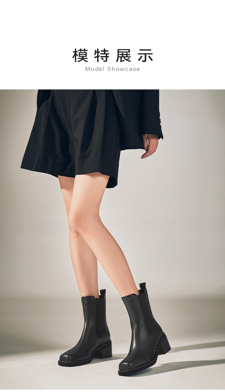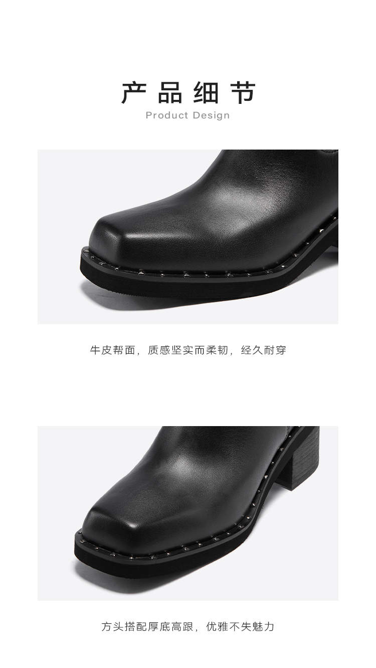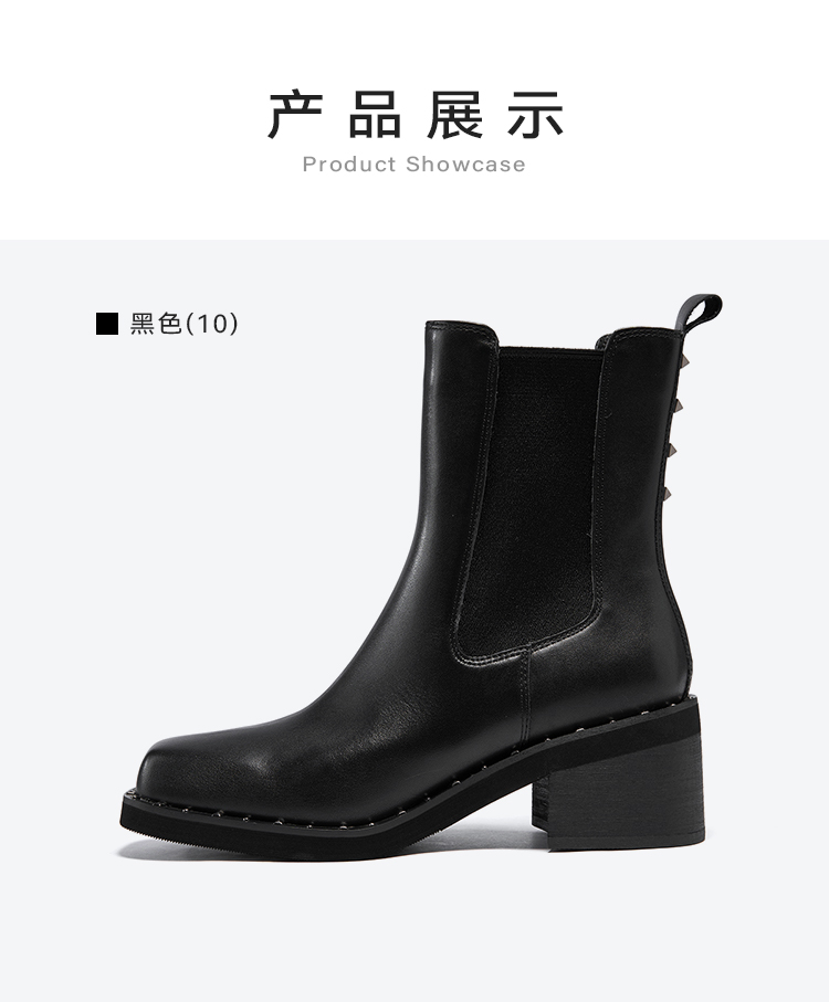 星期六时髦猪鼻头铆钉沿边粗跟切尔西SSC4116345
