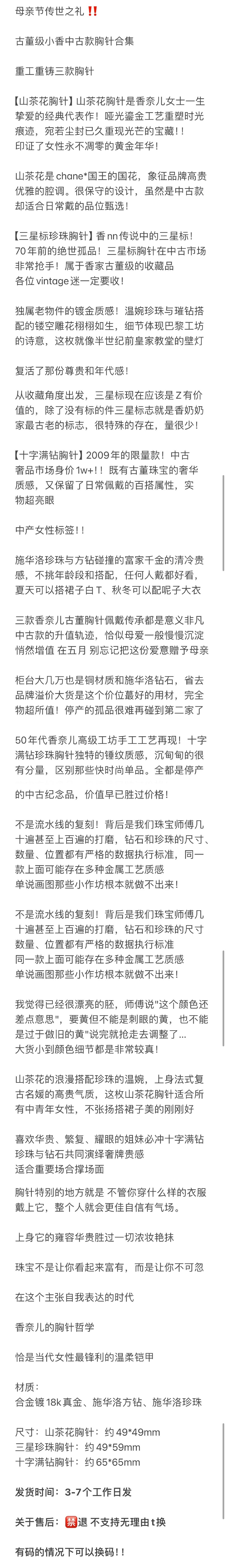 母亲节传世之礼 古董级 小香中古款胸针合集 重工重铸三款胸针