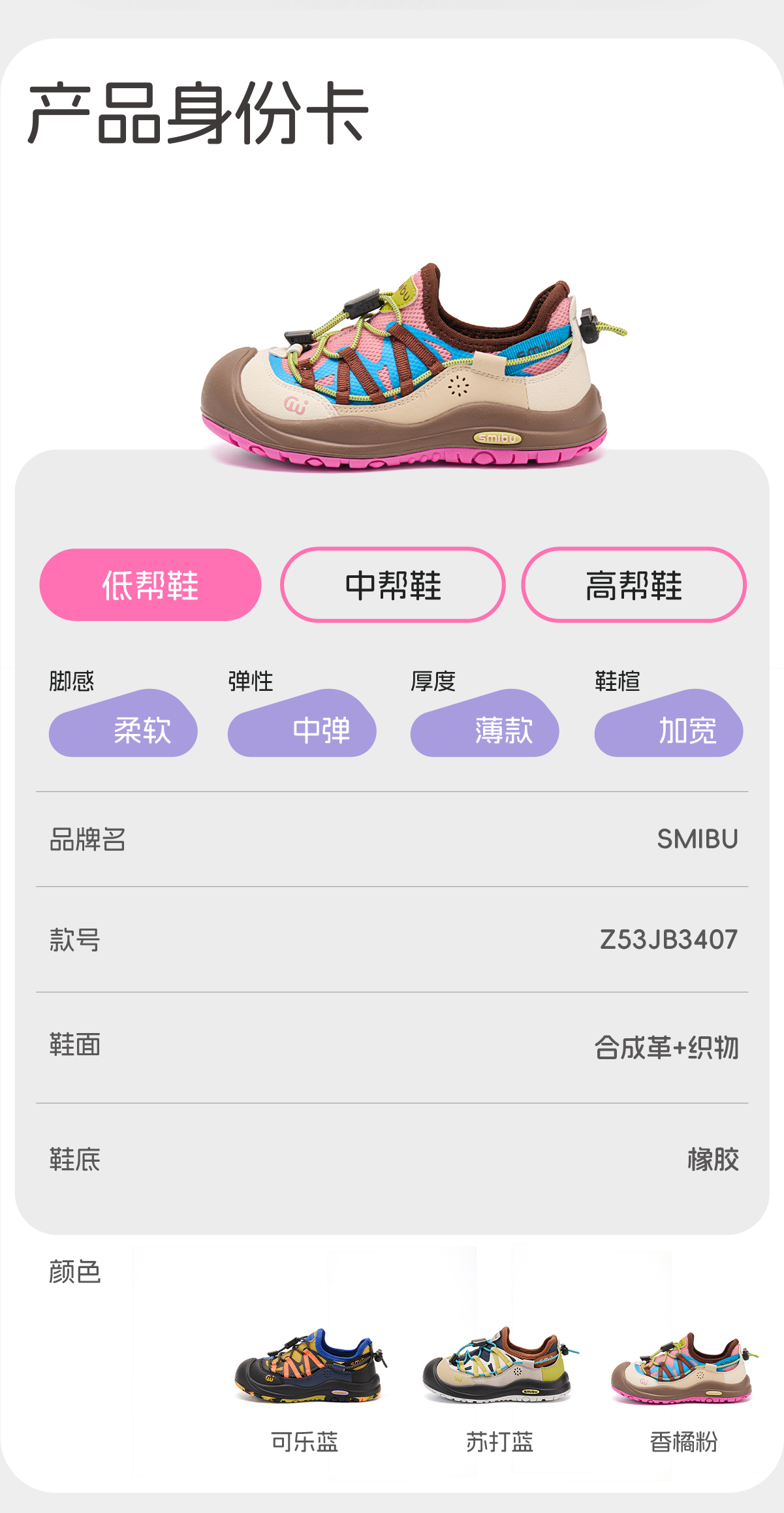 【旷野徒步系列】SMIBU中大童春秋季新款拼色防滑户外休闲徒步鞋运动鞋Z53JB3407