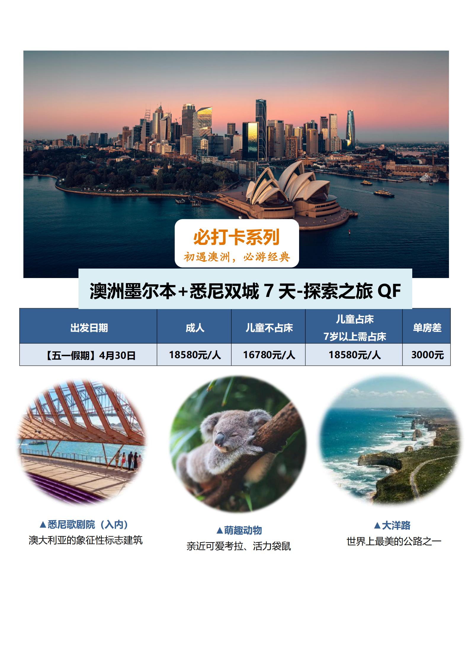 【五一】<澳大利亚墨尔本+悉尼双城7天探索之旅>悉尼歌剧院、悉尼渡轮、悉尼动物园、大洋路、蓝山国家公园、悉尼大学、墨尔本大学