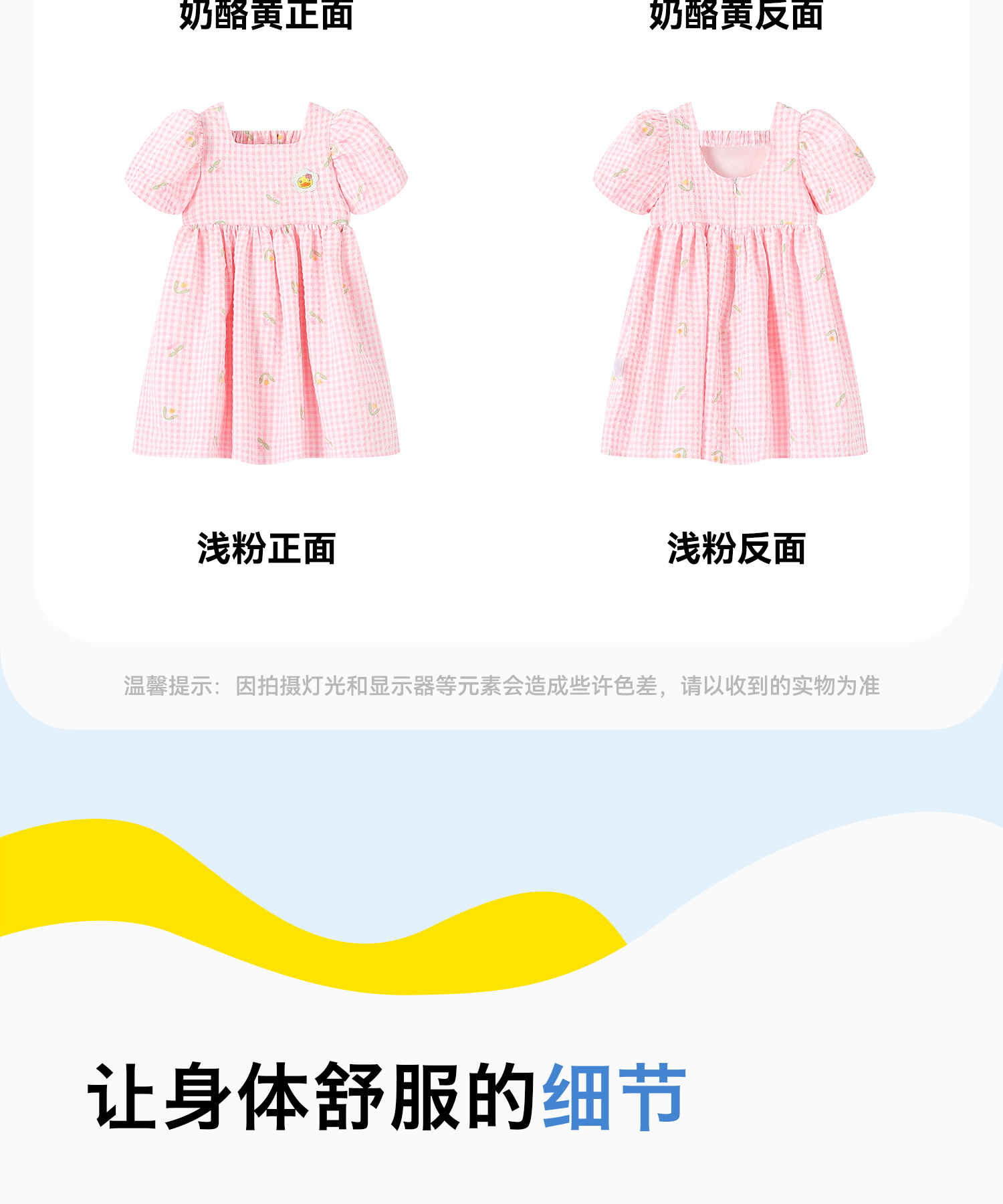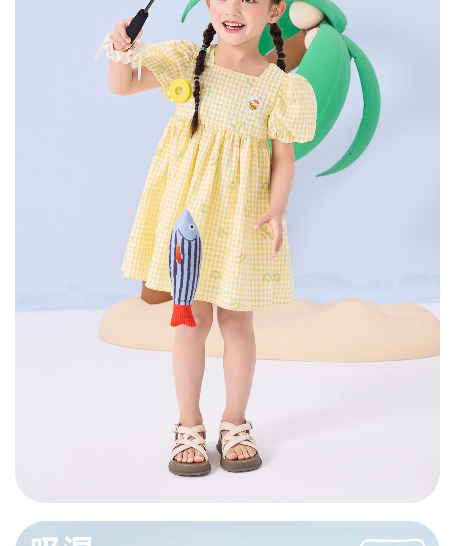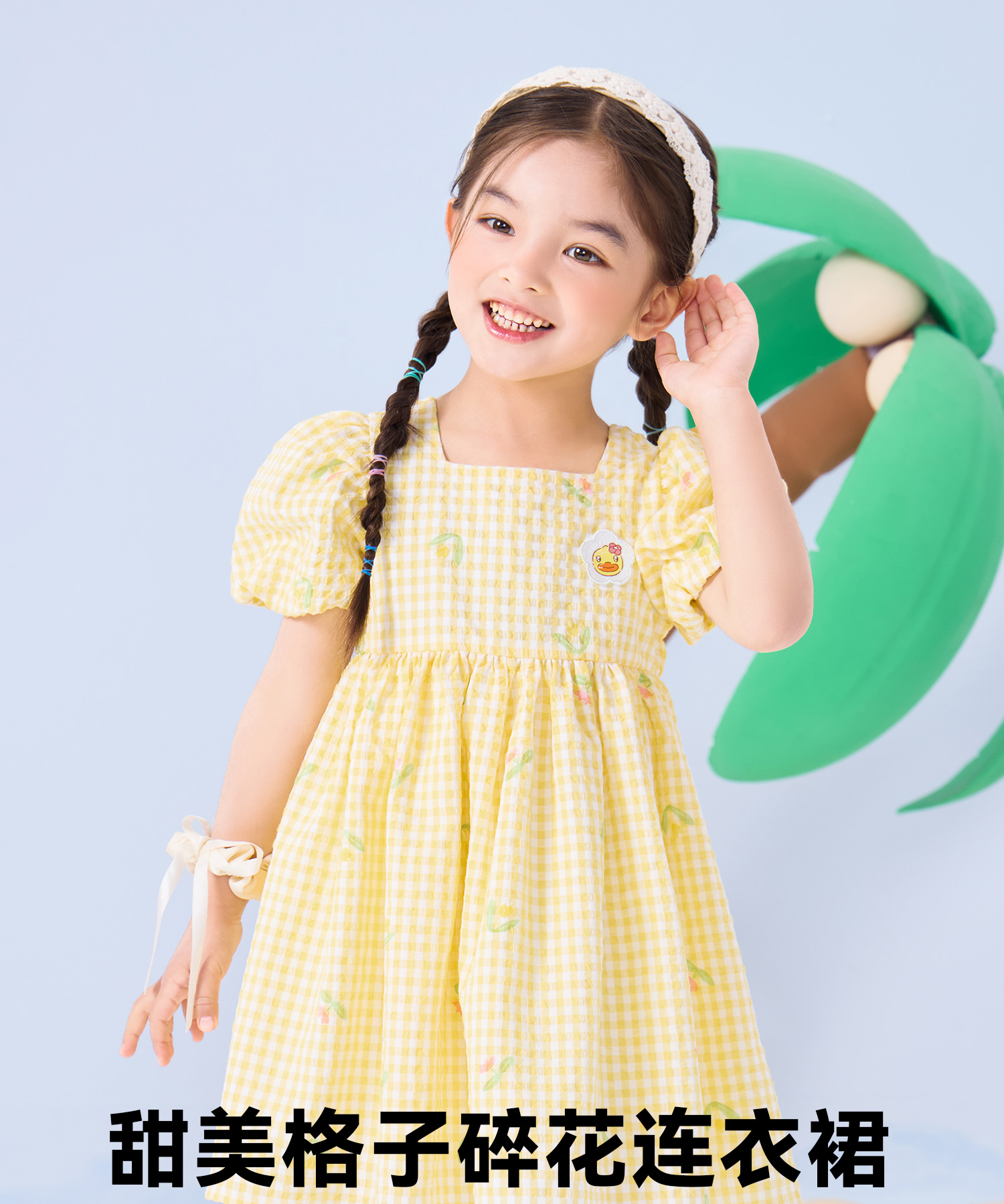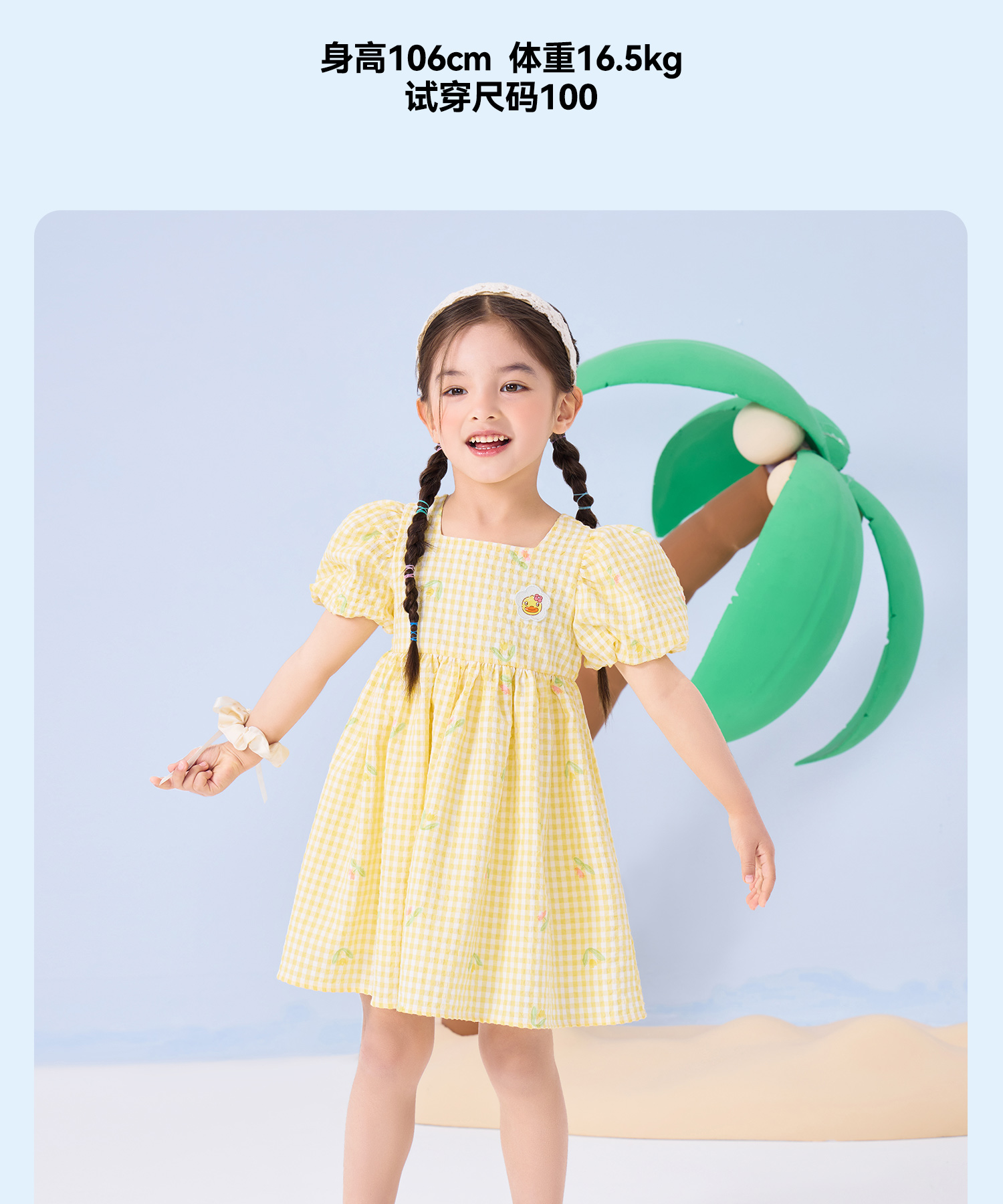 bduck小黄鸭童装夏季女童连衣裙儿童裙子泡泡袖公主裙夏季潮90-130 FF2680009