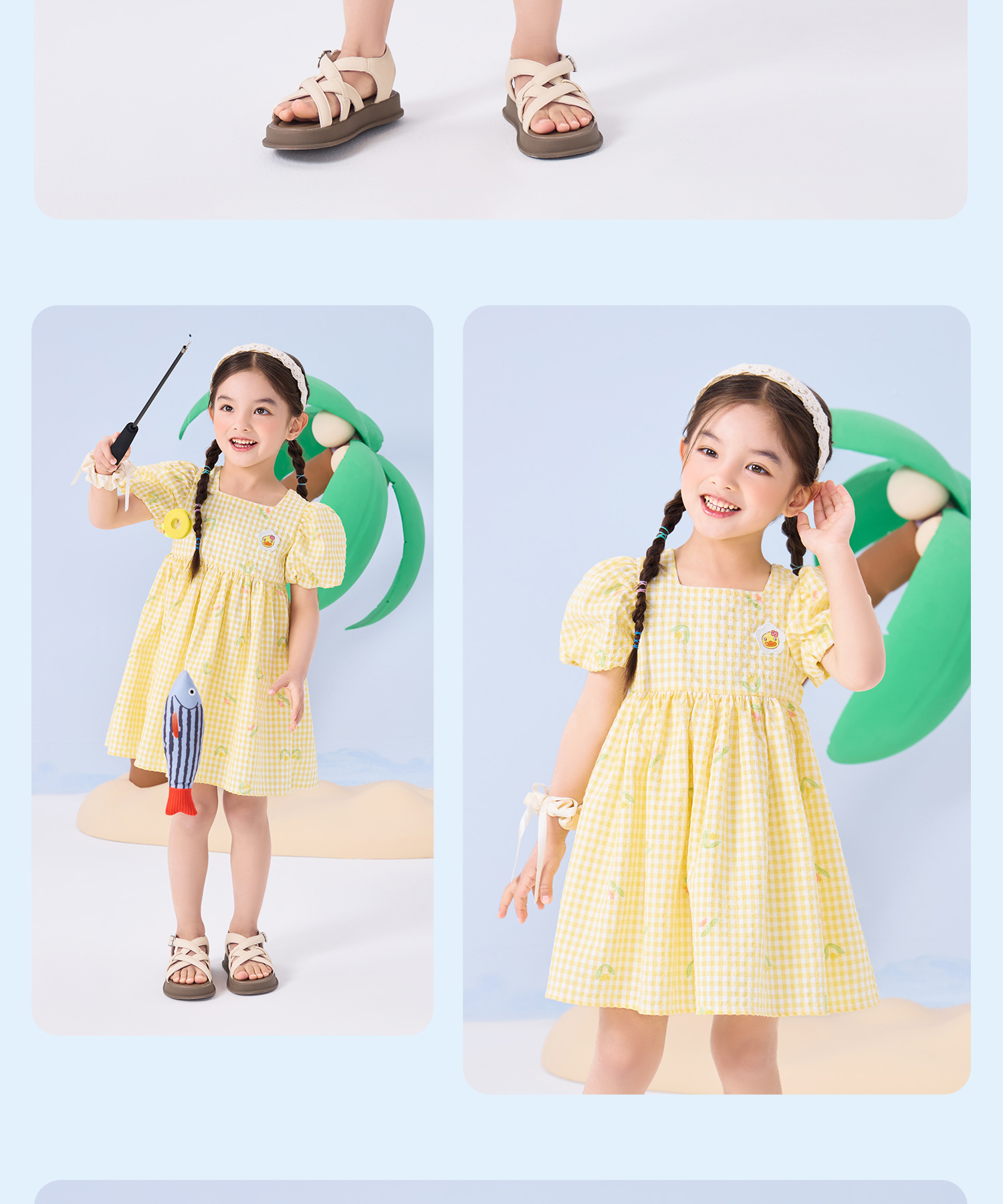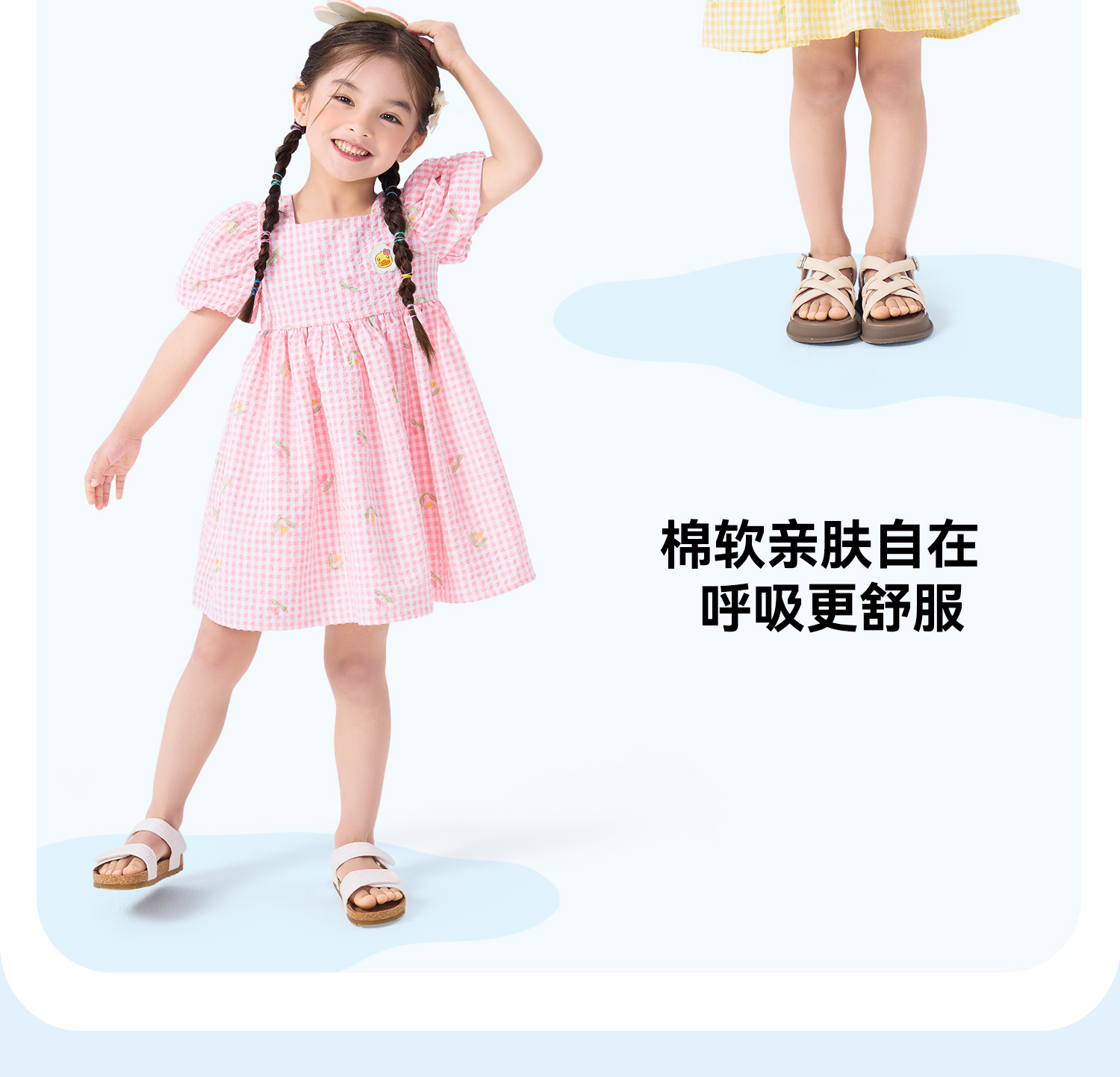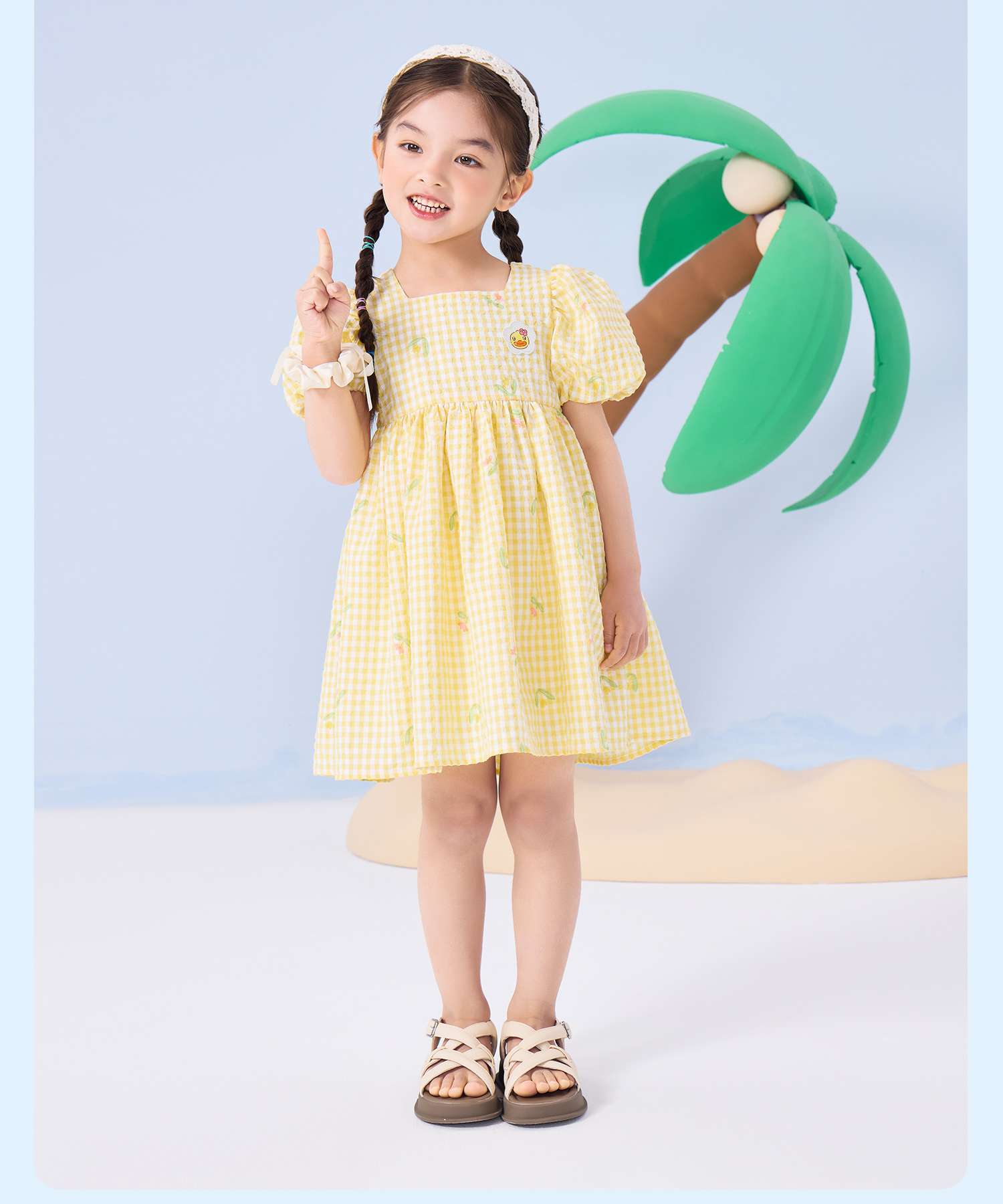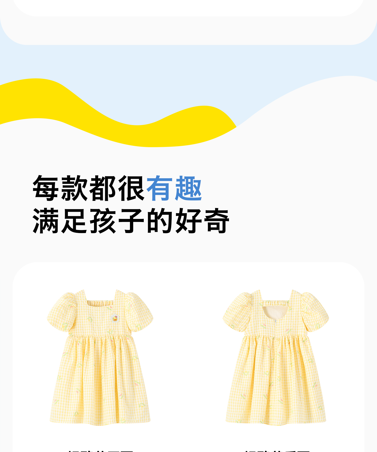 bduck小黄鸭童装夏季女童连衣裙儿童裙子泡泡袖公主裙夏季潮90-130 FF2680009