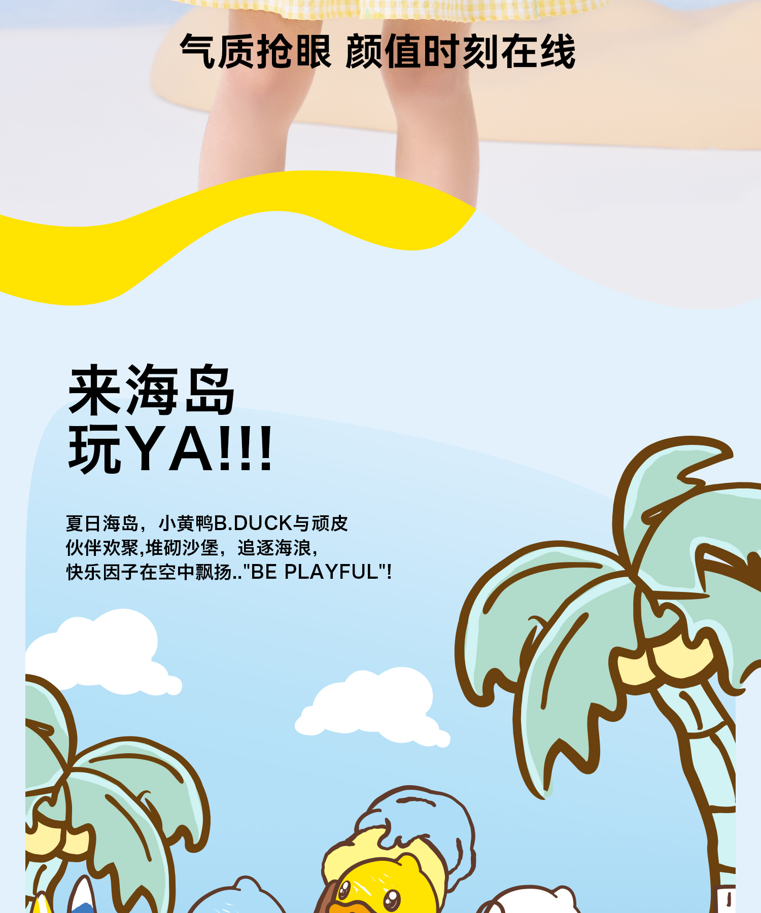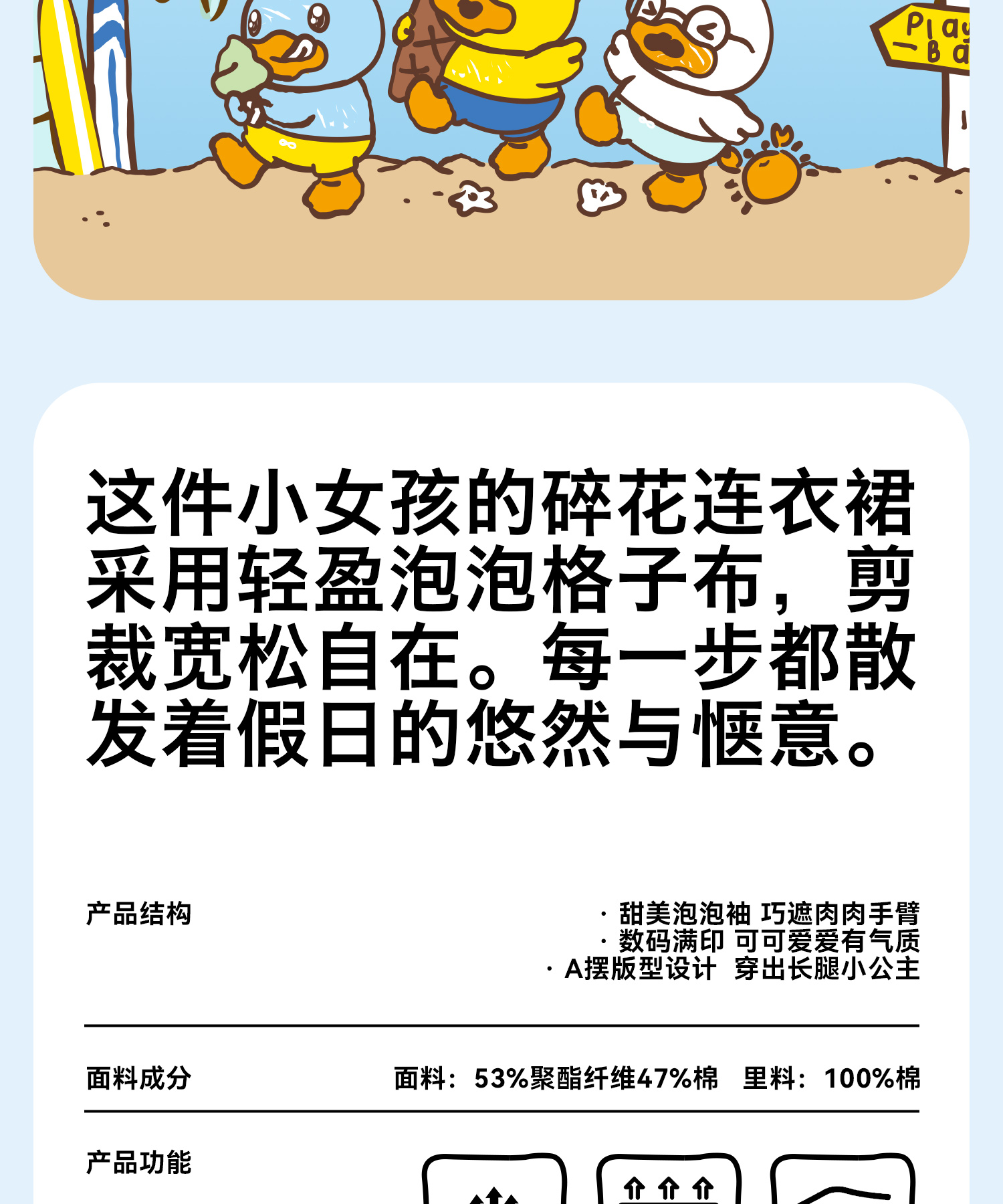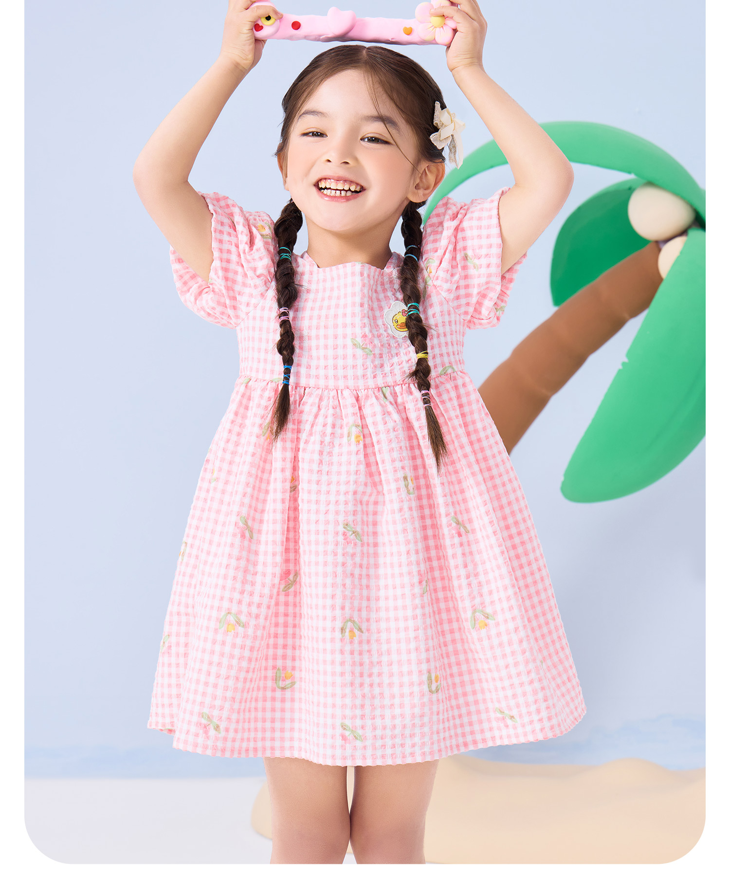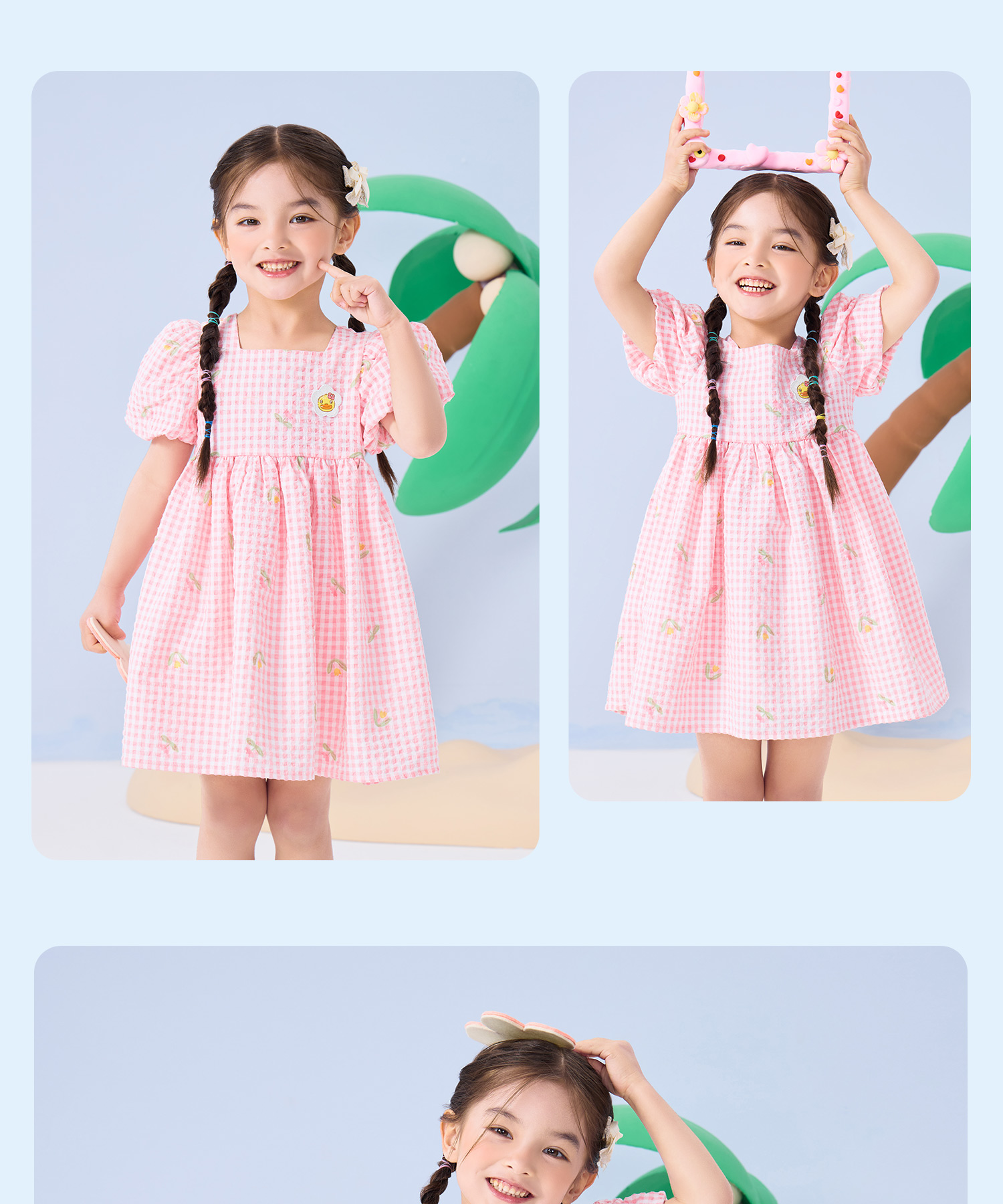 bduck小黄鸭童装夏季女童连衣裙儿童裙子泡泡袖公主裙夏季潮90-130 FF2680009