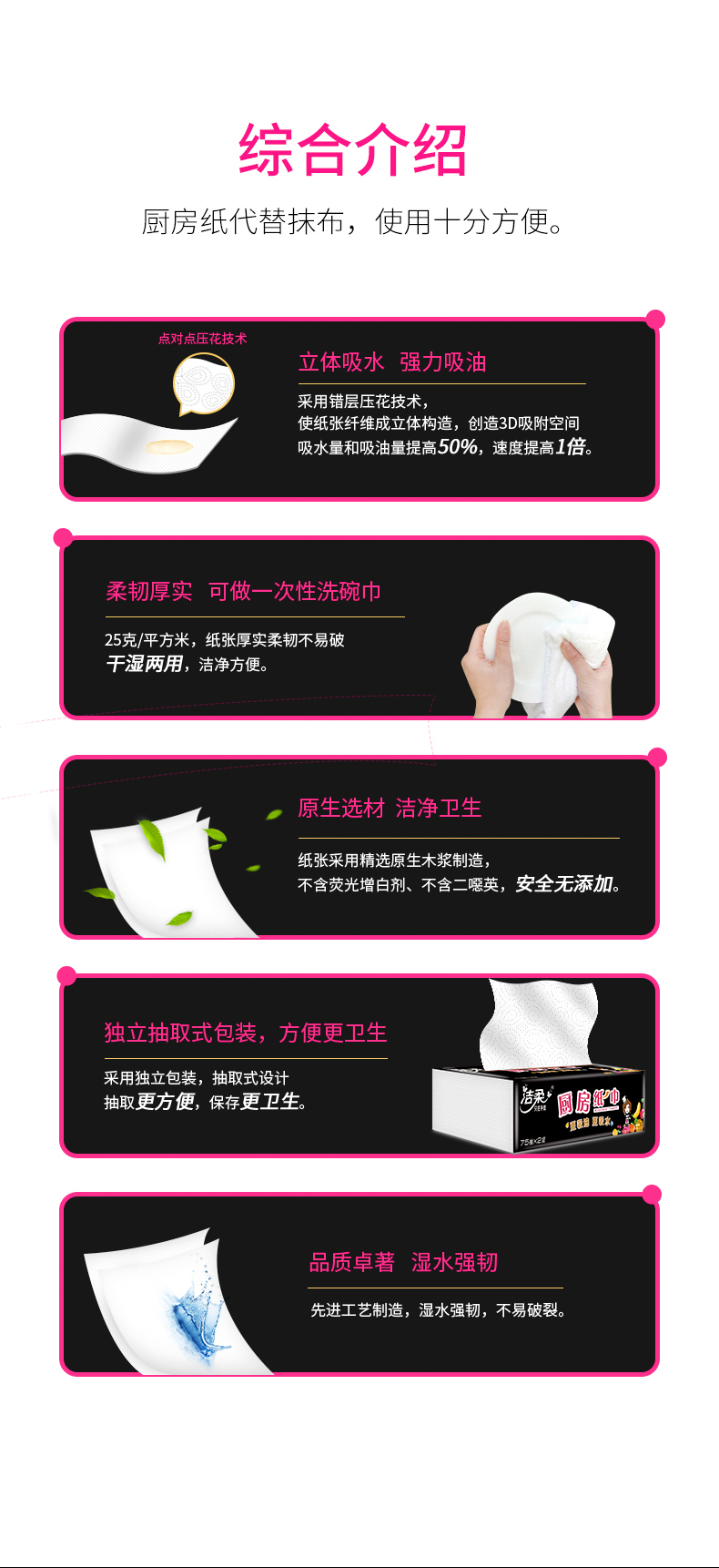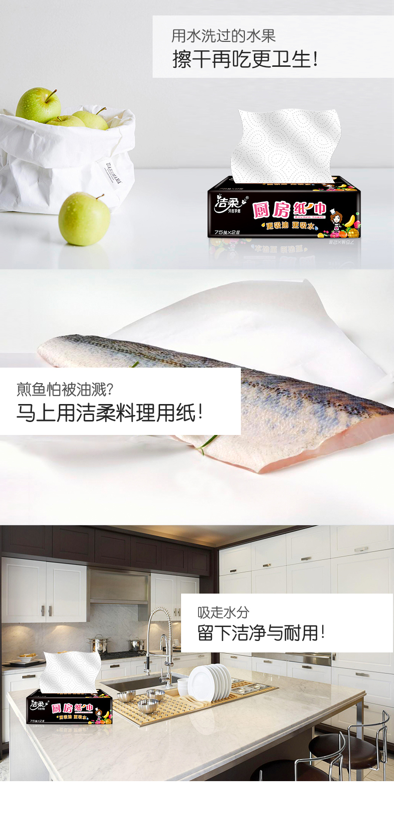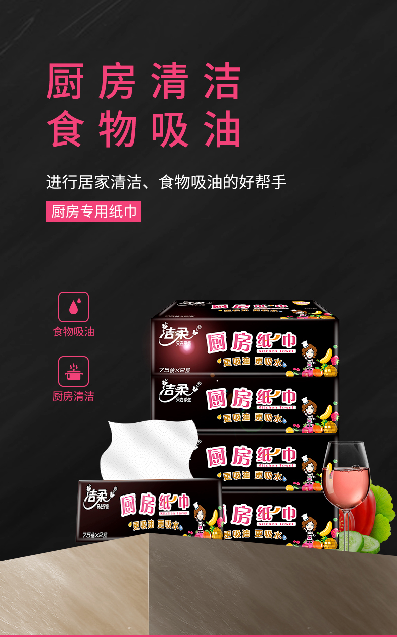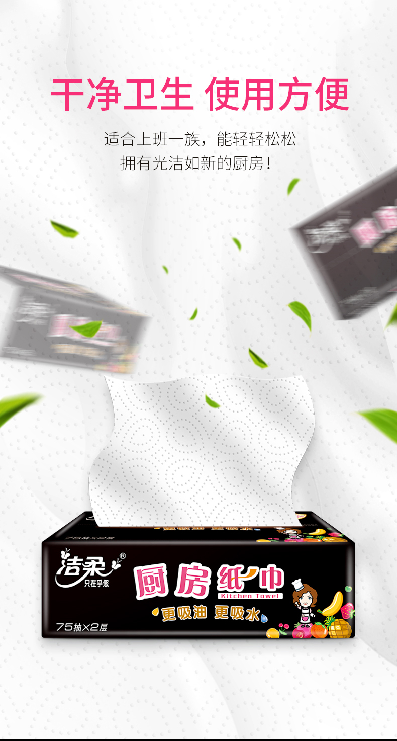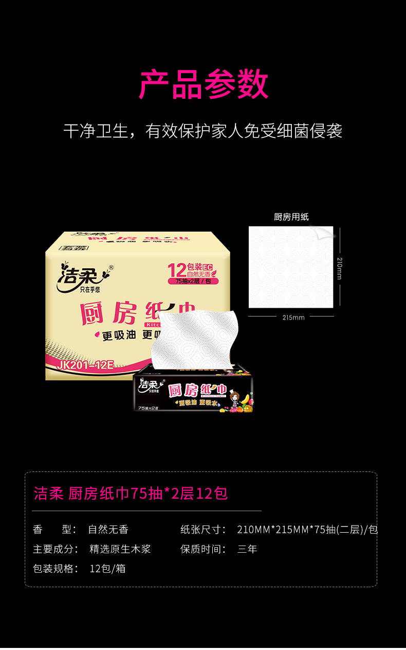 洁柔 厨房纸巾75抽2层(12包装)