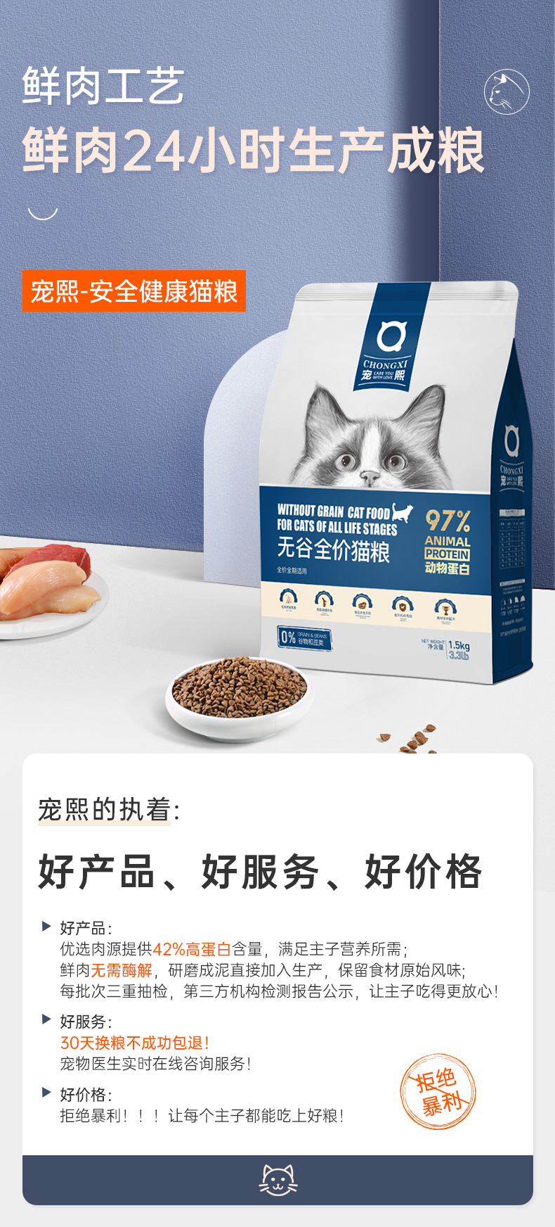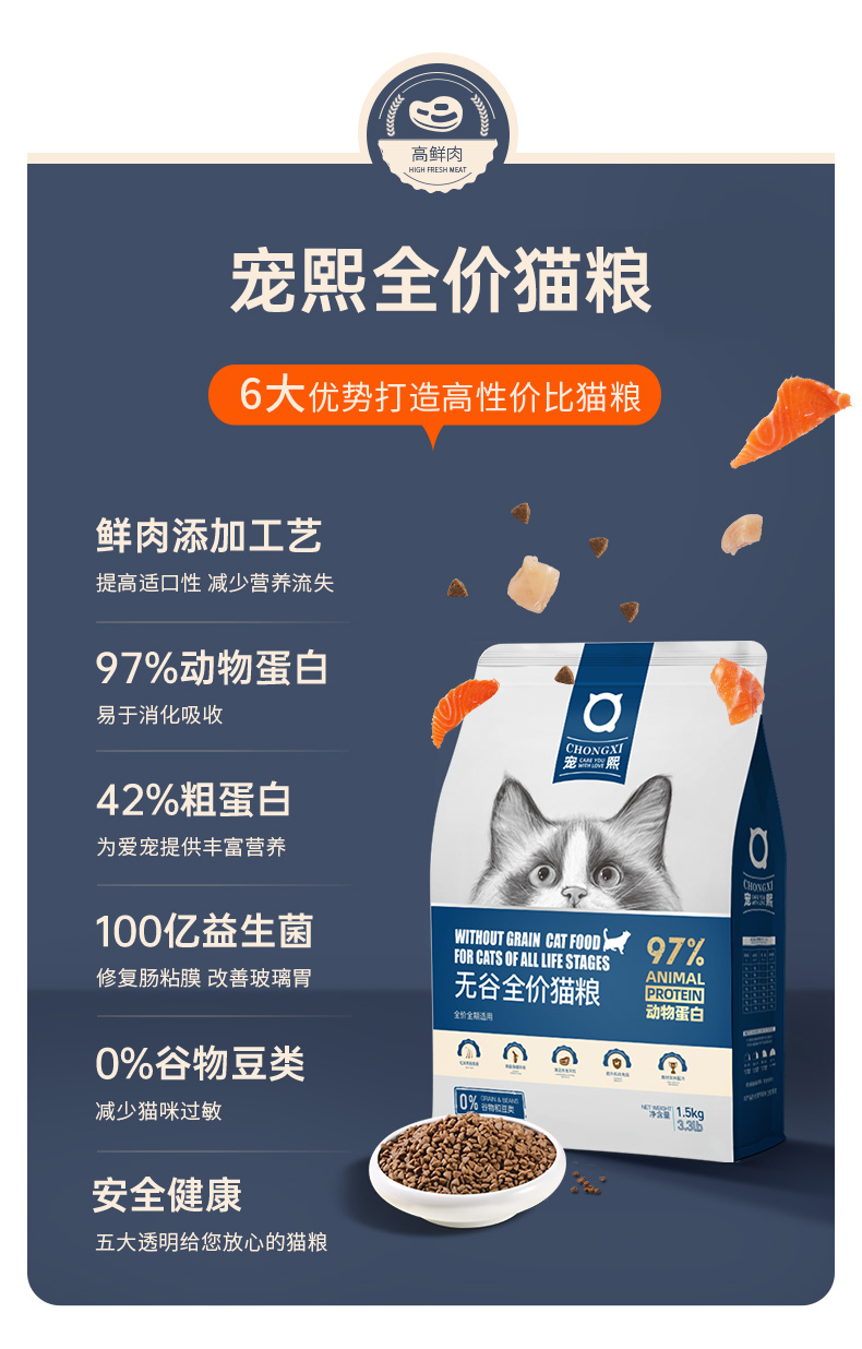 宠熙全价全期猫粮1.5kg/1.5kg*3