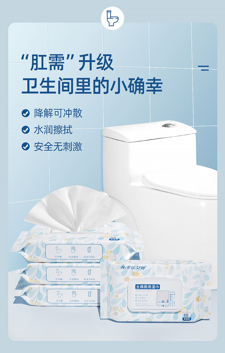 【“肛”需升级 卫生间里的小确幸】卫生湿厕纸 杀jun可降解 冲马桶不堵. 擦屁股洁厕湿巾 成人便携 40抽