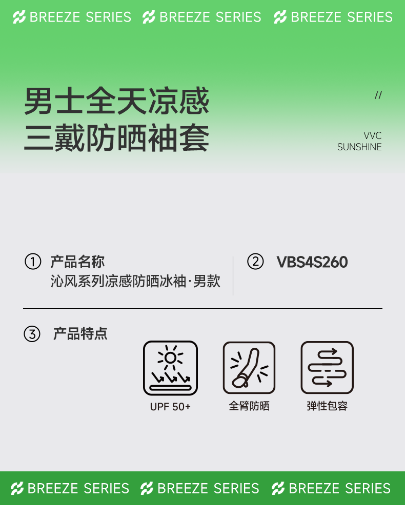 VVC沁风系列凉感防晒冰袖男款(时尚黑/寂静灰)VBS4S260