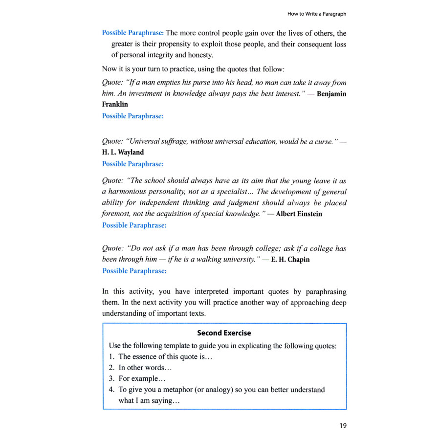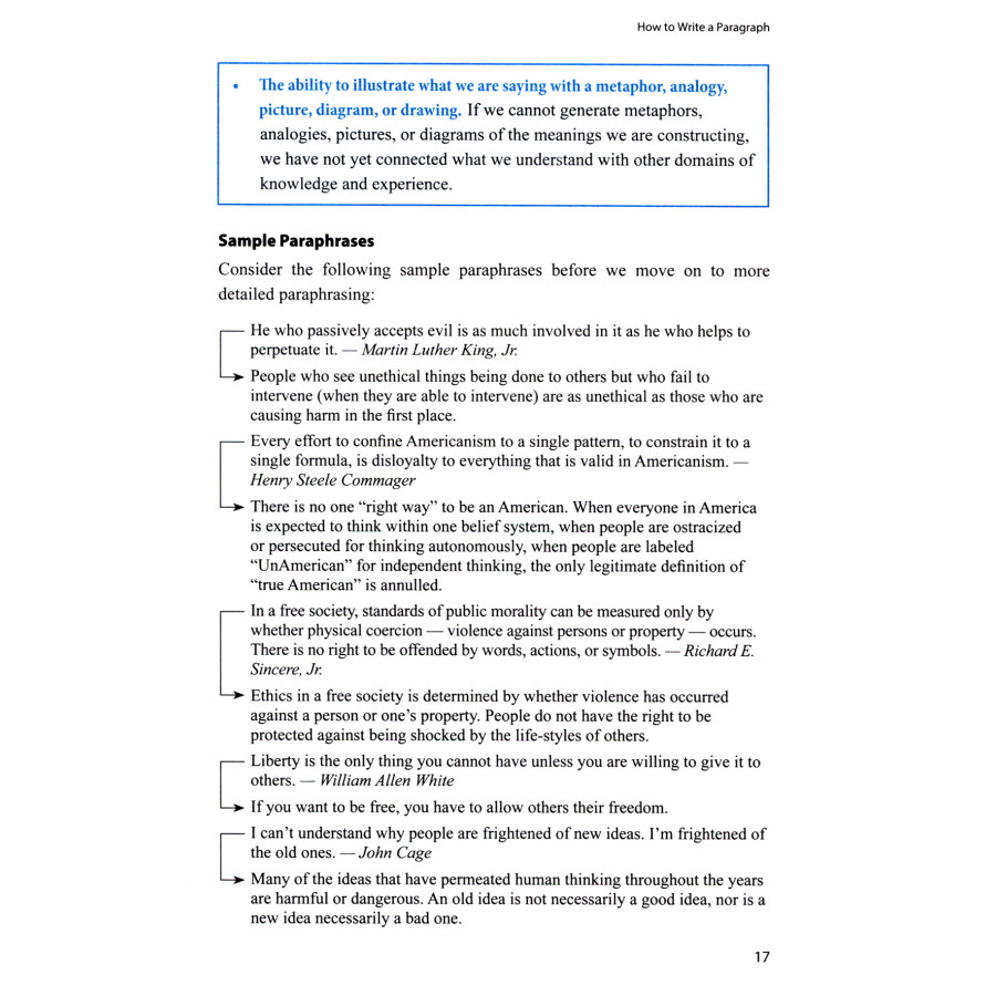 The Practice Exercises in Substantive Writing Paraphrasing Sample Paraphrases Paraphrasing Short Quotes Paraphrasing and Clarifying Substantive Texts Exploring Conflicting Ideas Exploring Key Ideas Within Disciplines Analyzing Reasoning Evaluating Reasoning