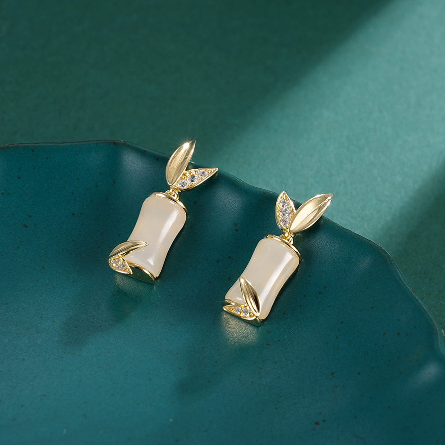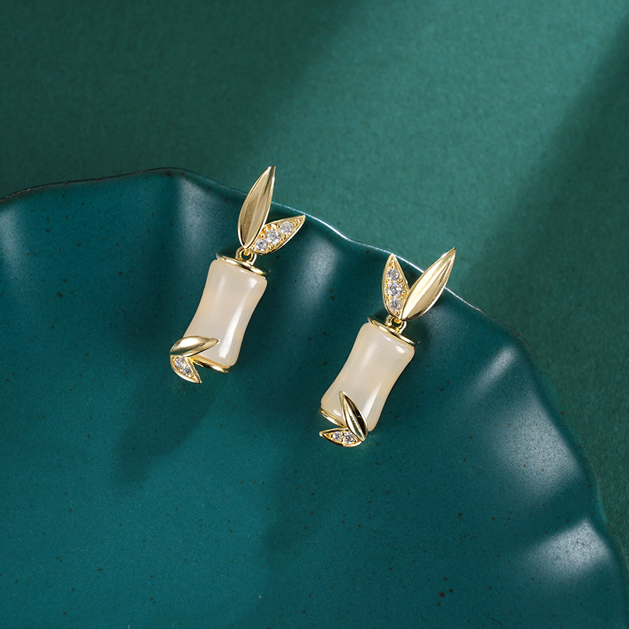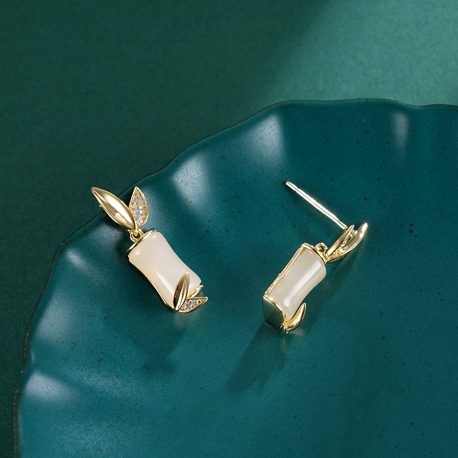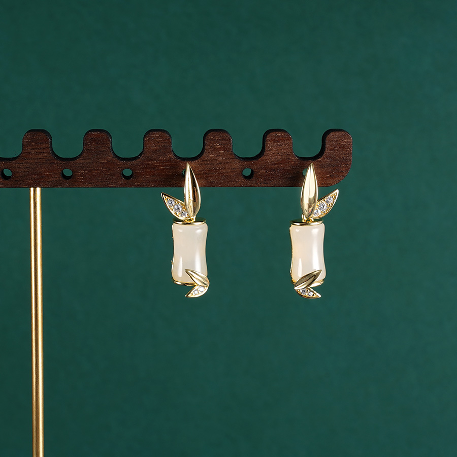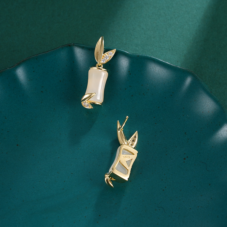 【寓意】:耳钉以“竹节”为灵感设计,镀金与镶嵌工艺交融,复古祥和。寓意坚韧高洁,独守清雅。