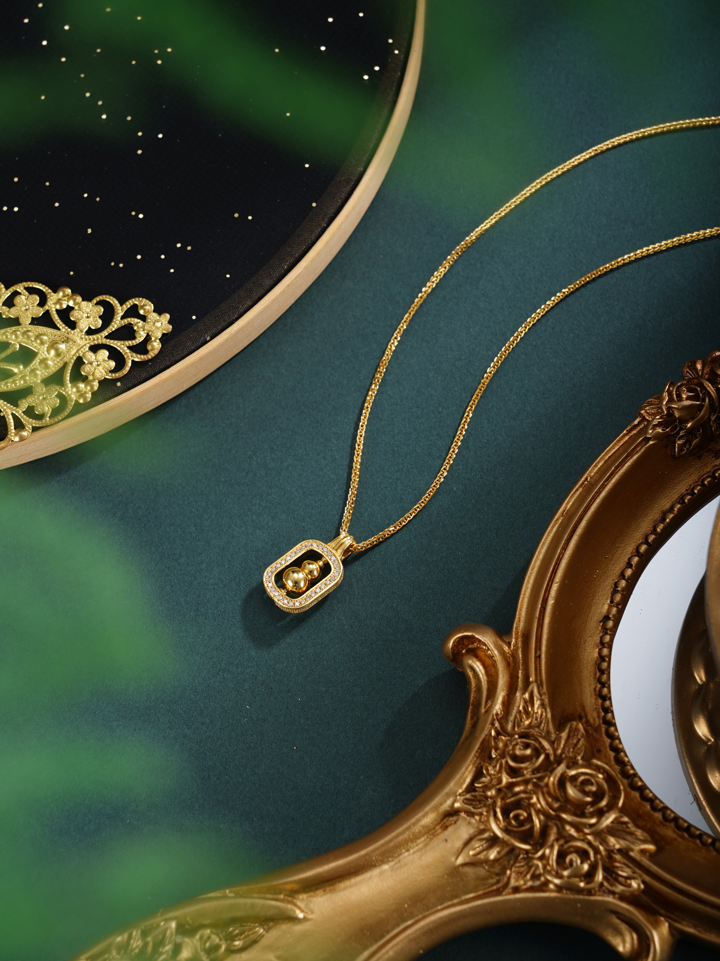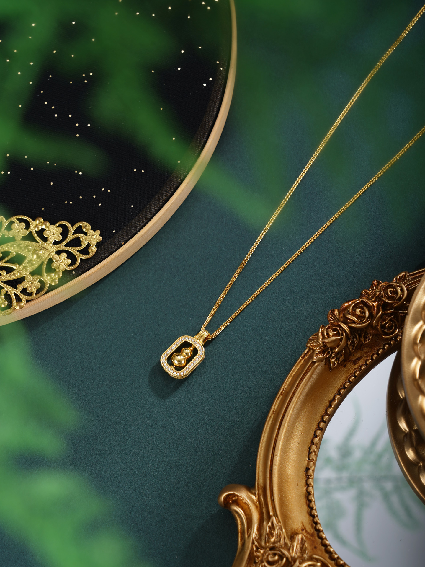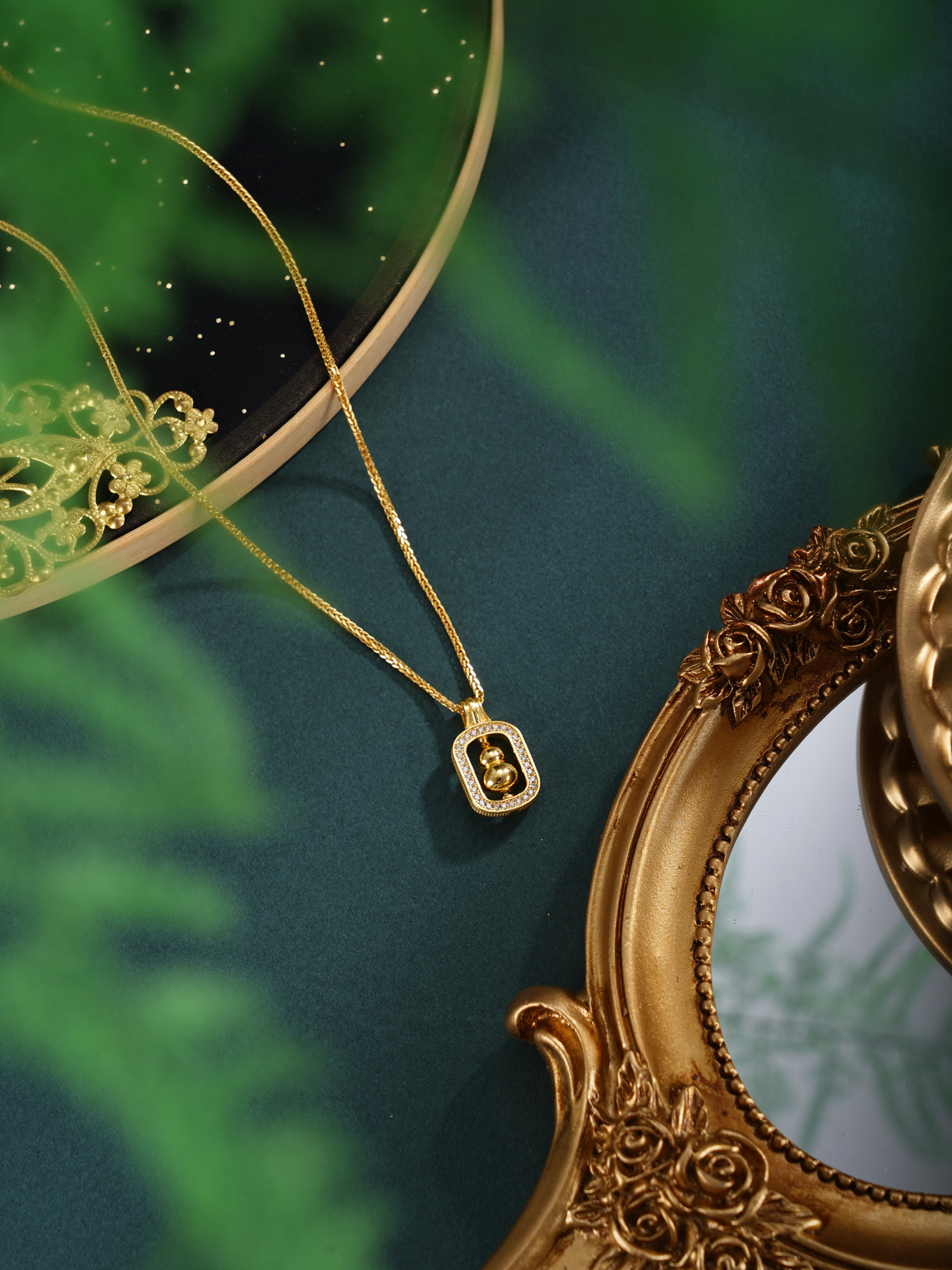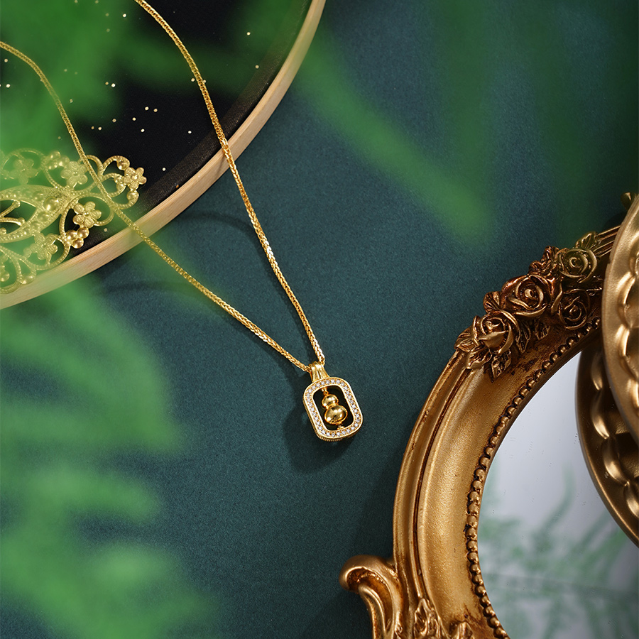 【寓意】:项链纯银材质,以“葫芦”为设计核心,象征"福禄双全",辅以微镶锆石工艺,寓意人生圆满而璀璨。