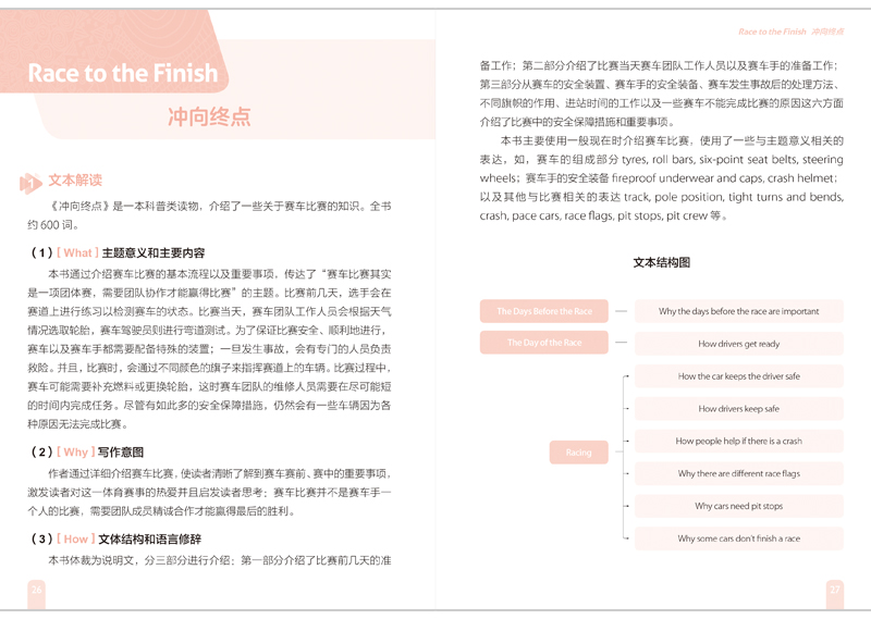 “多维阅读中文教师用书”根据本土教学实践经验研发,精心编写了教学设计,包含文本解读、教学目标、教学流程图、教学过程、课堂小结、课外作业和可供选择的学案,为教师解决“教什么、怎么教”的难题提供了完美解决方案。“英文版教学指导用书”在中文教师用书的基础上根据教师课堂教学需求研发,为读物的每一页都设计了实用的英文教学提示,给教师教学提供了语言便利,方便教师帮助学生破译阅读密码、进行深度学习。