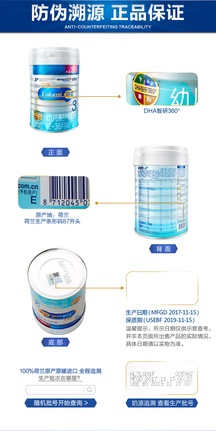 美赞臣铂睿幼儿配方奶粉(12-36月龄.3段)850克罐装