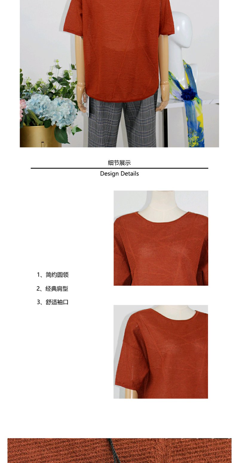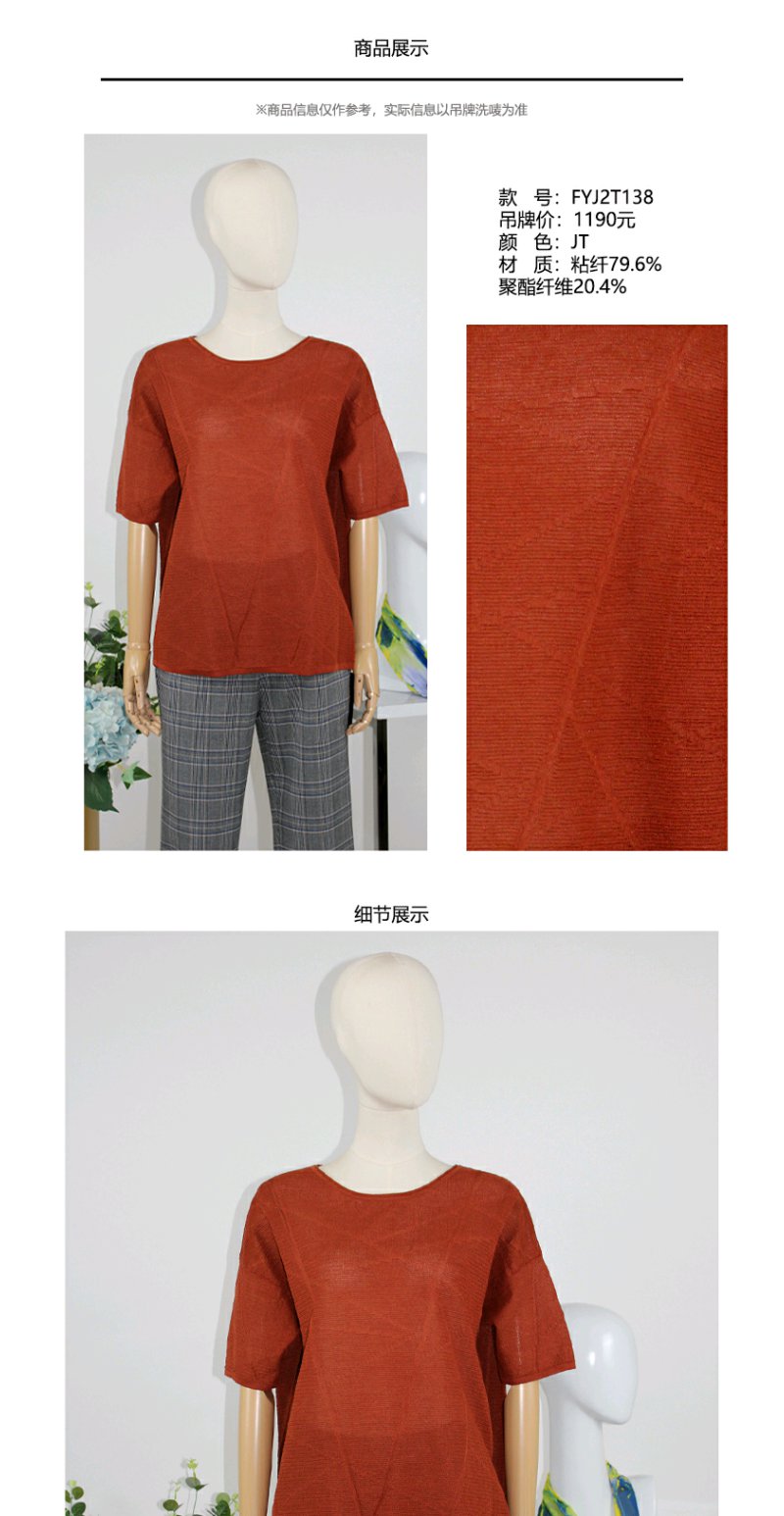 FOCALS福柯斯女装秋季新款圆领短袖套头上衣针织衫FYJ2T138JT