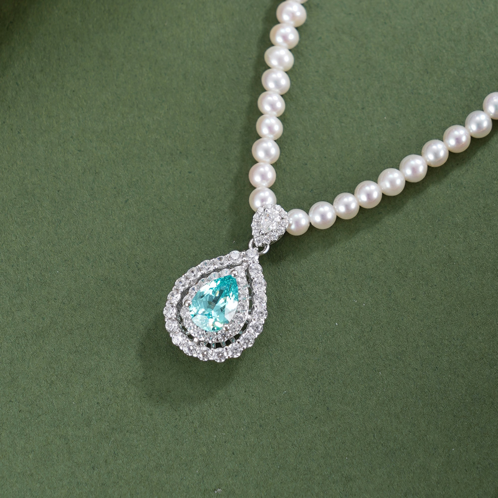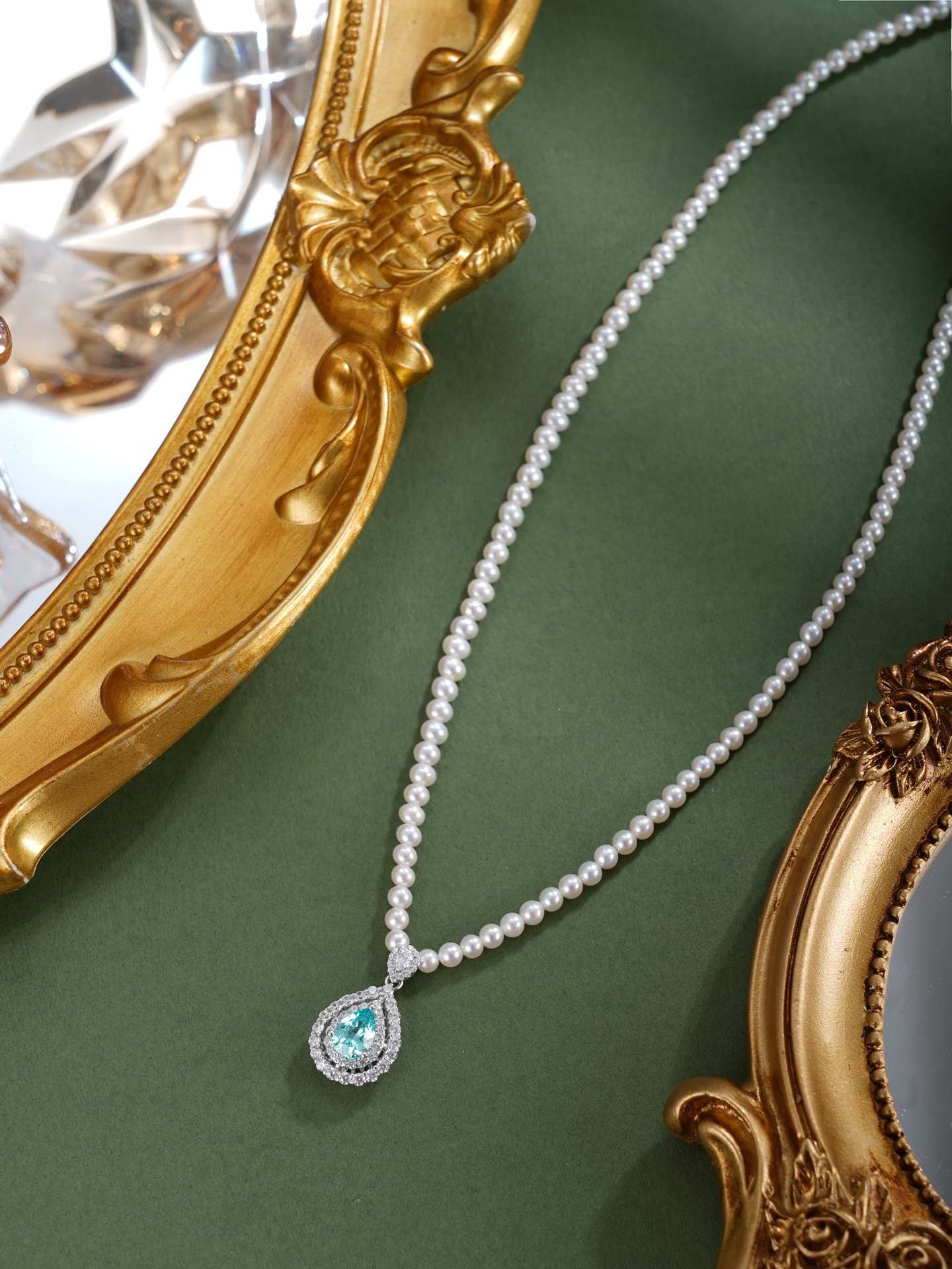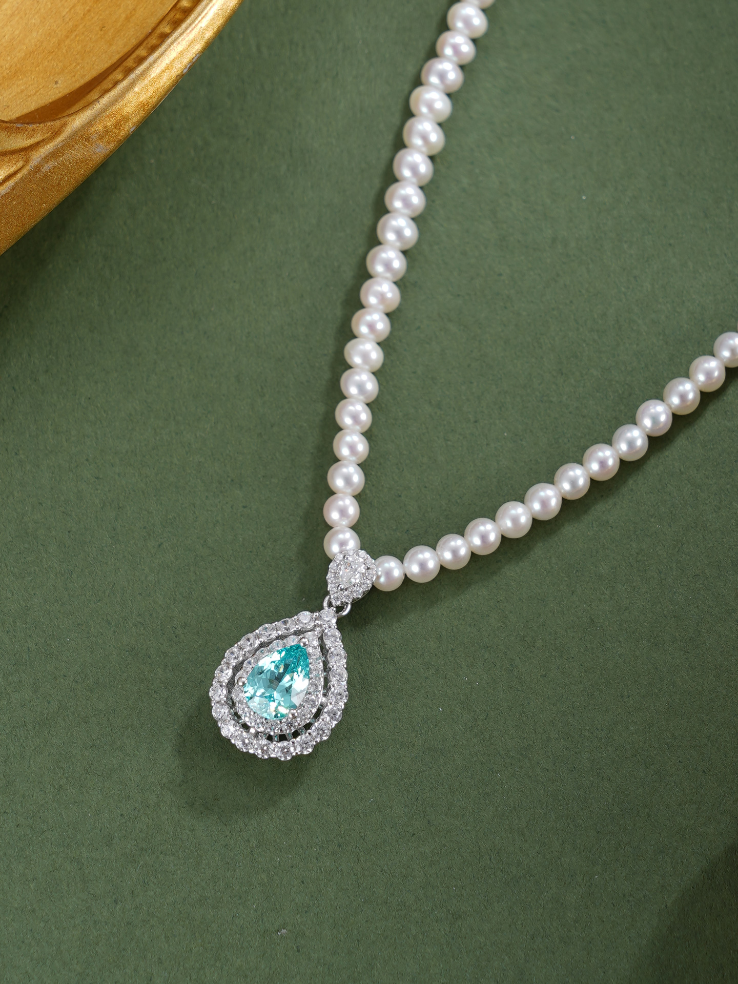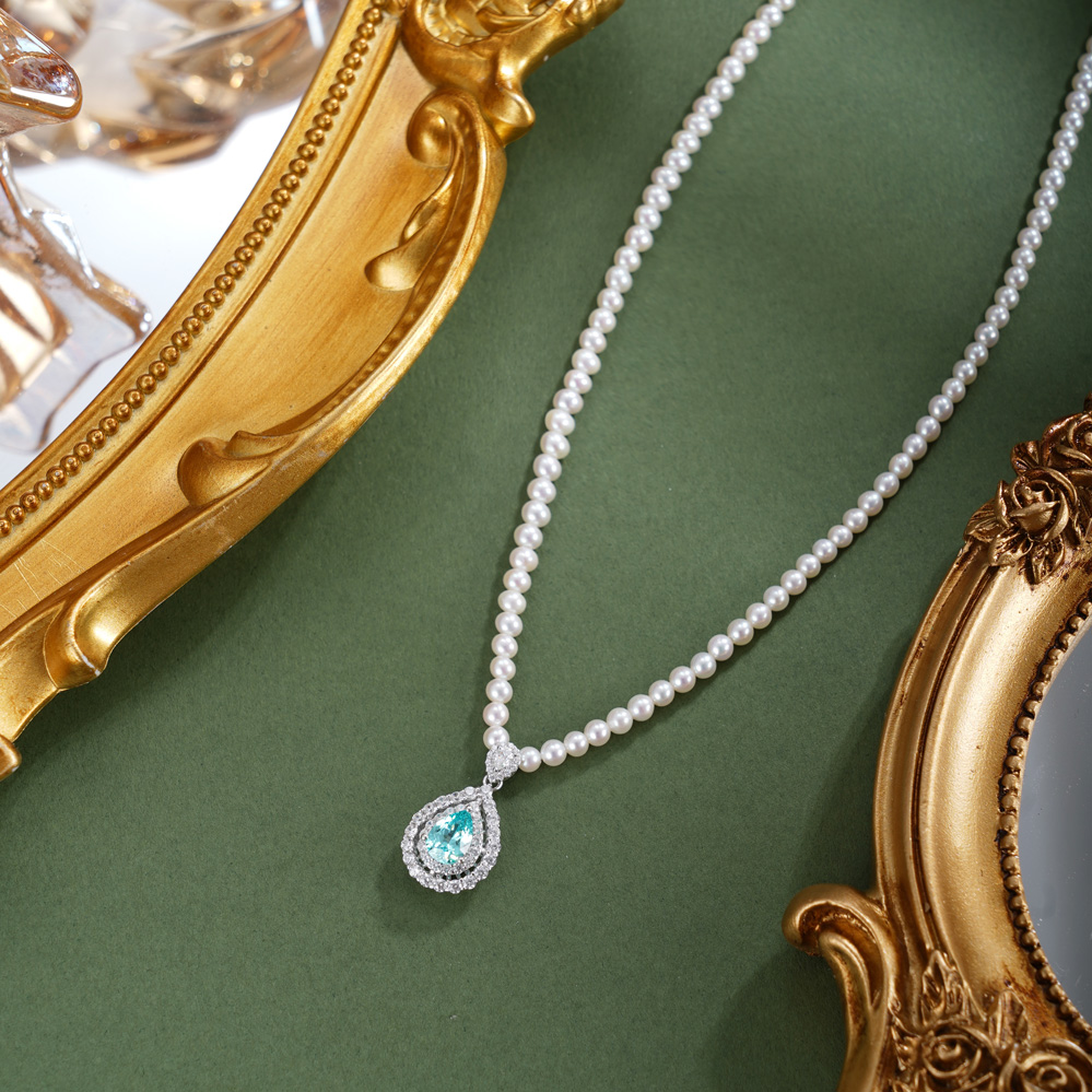 子佩集【蓝海诗心】银S925珍珠惜王妃项链【ZZXL024】2.8mm珠蓝水滴2601