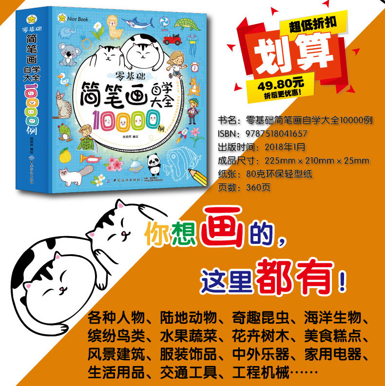简笔画自学大全10000例幼儿园小学生学宝宝画画书入门启蒙大全3-6-7-8-12岁教材书幼师成人儿童美术培训绘画素描教材自学教程