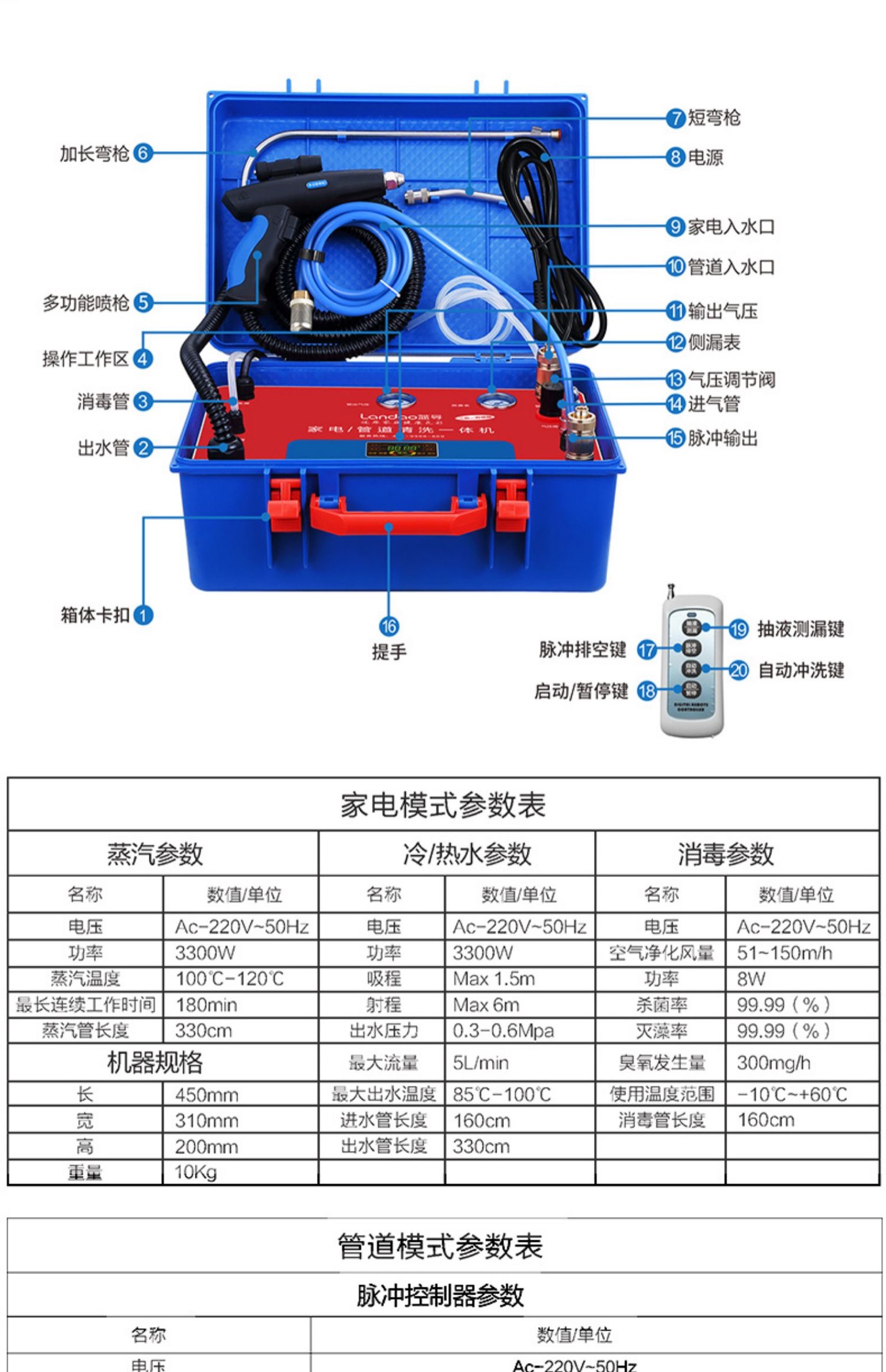 蓝导家电清洗设备自来水管道地暖脉冲多功能一体机高温蒸汽清洁机/023