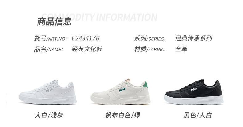 匹克2024新款男女子经典传承系列情侣款经典文化鞋E243417B/E243418B