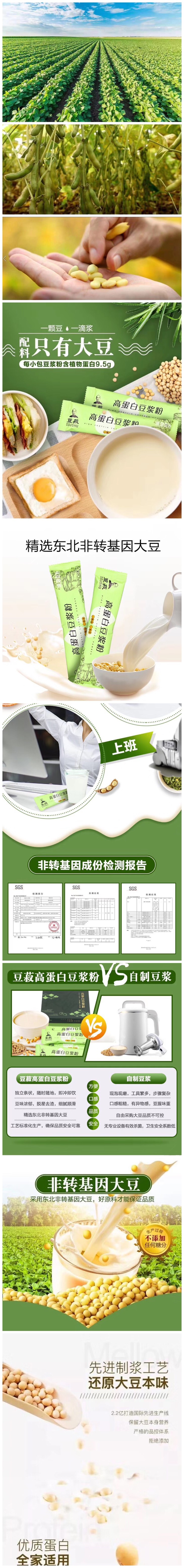 【产品介绍】采用人工精选东北非转基因有机优质大豆,色光泽,形饱满 ,豆香味浓,使用超高速破壁工艺生产,纯天然 ,无添加。