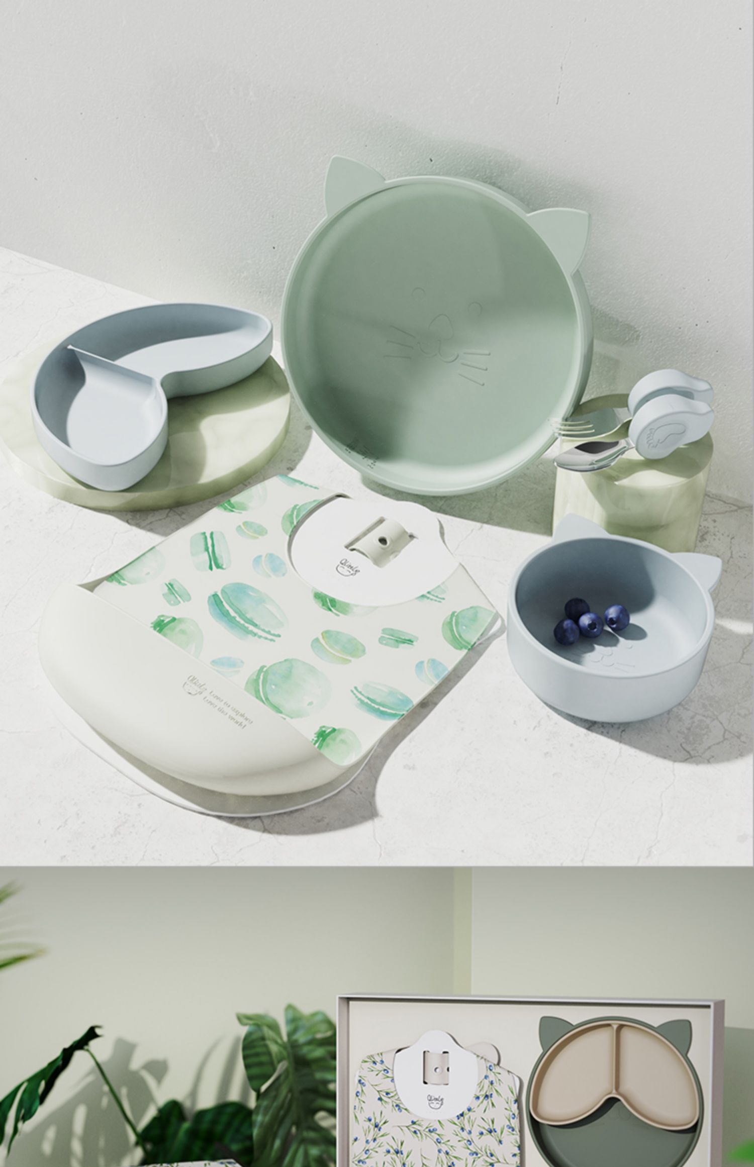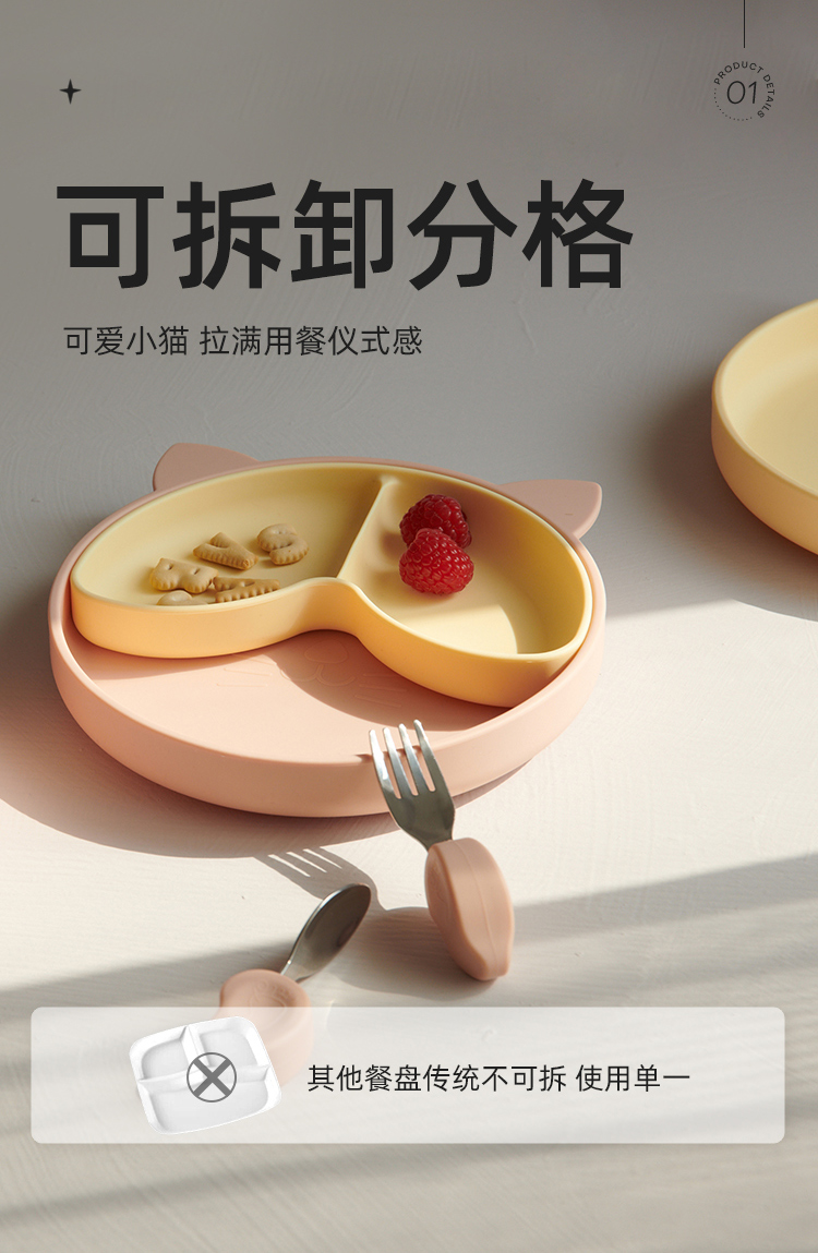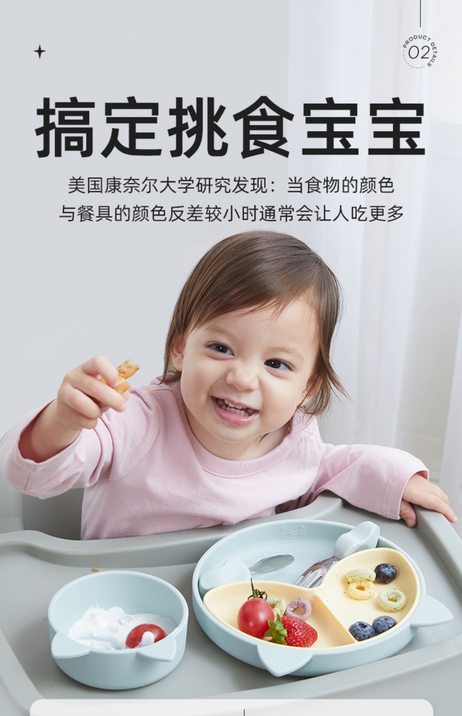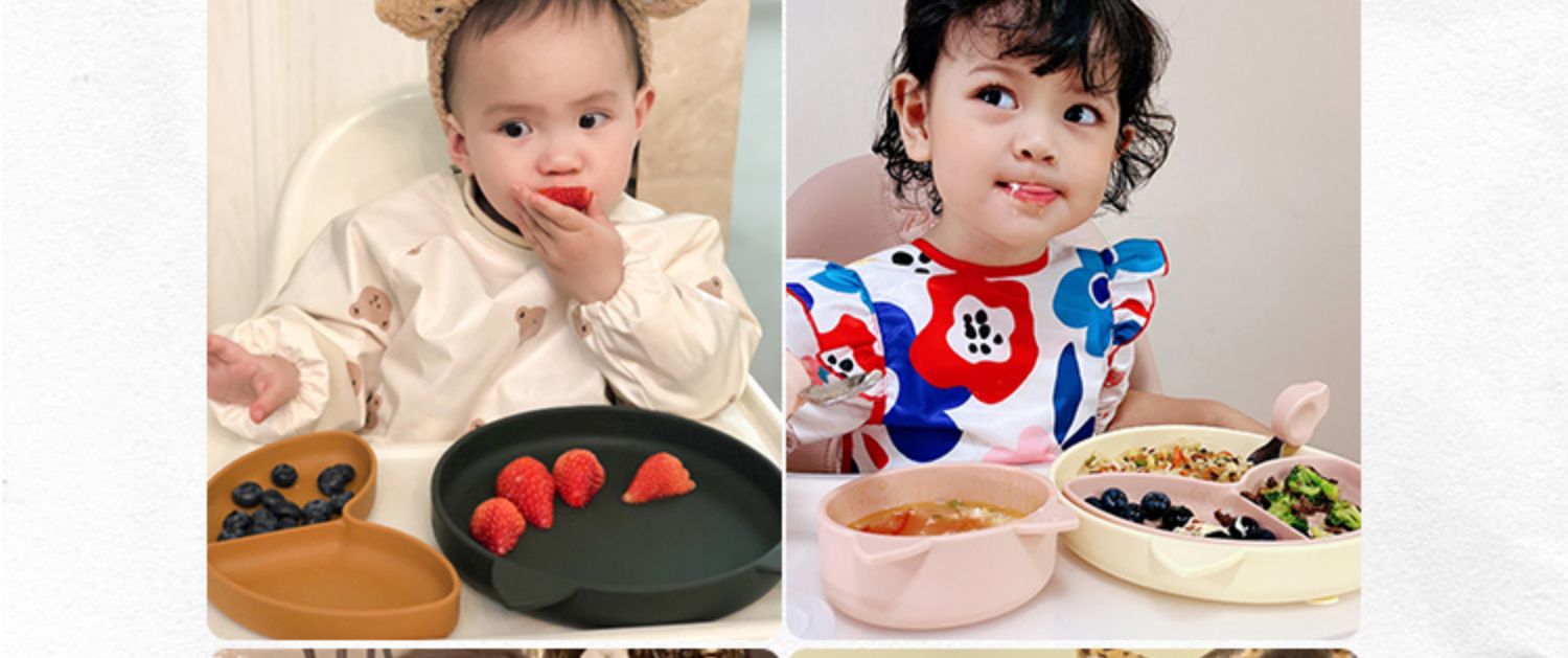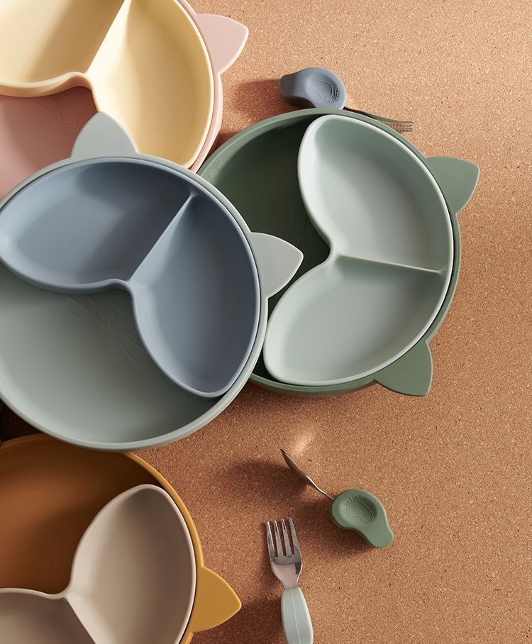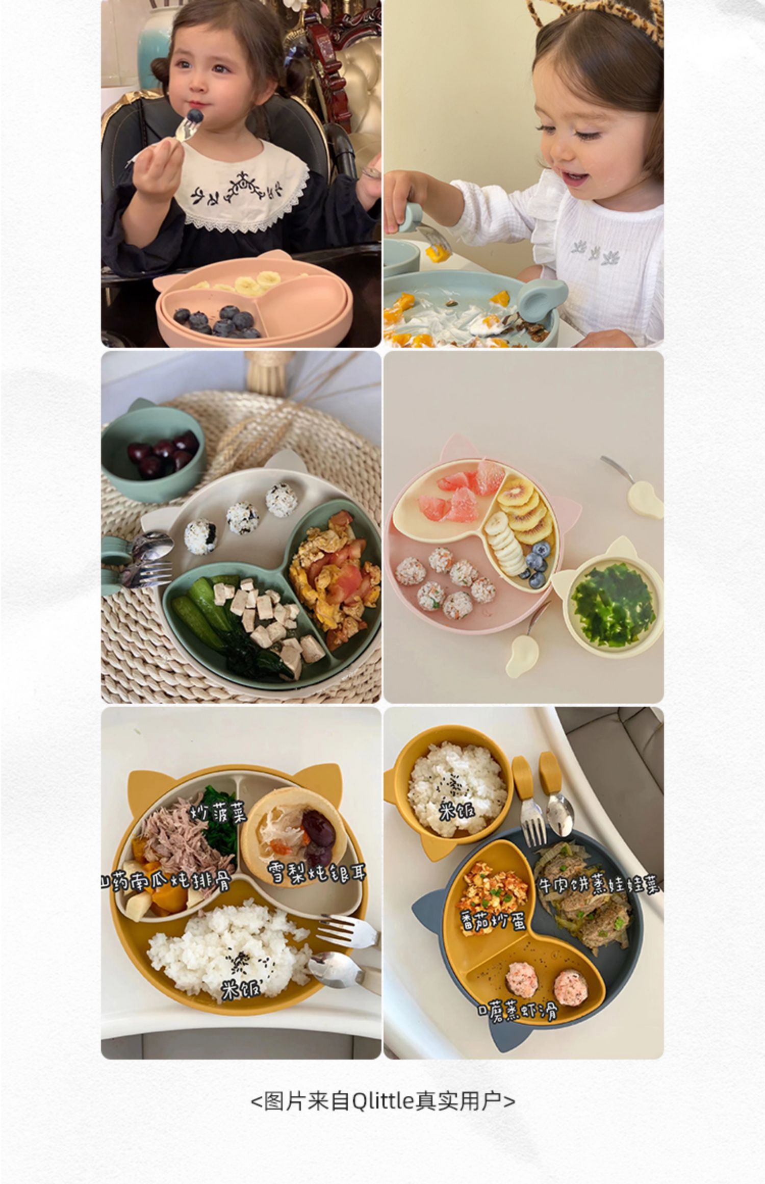 Qlittle宝宝硅胶分格盘+吸力餐盘组合 | 自主进食硅胶吸盘 可拆卸 易清洗 无异味