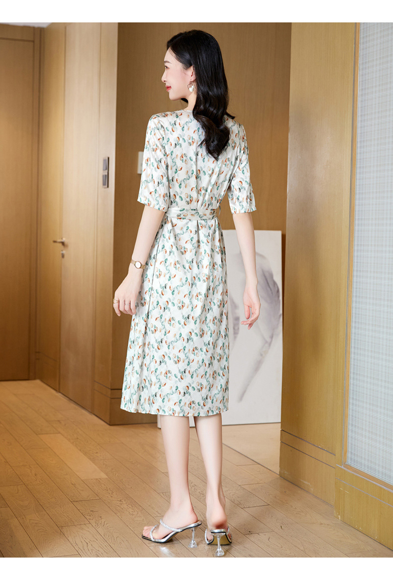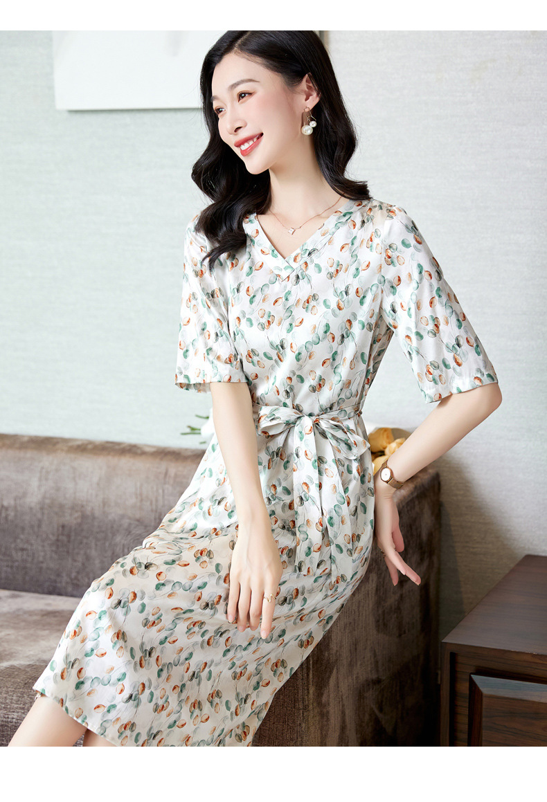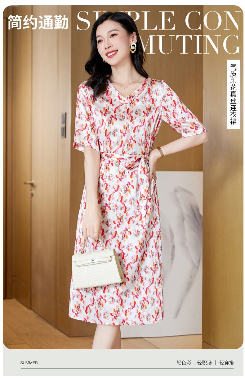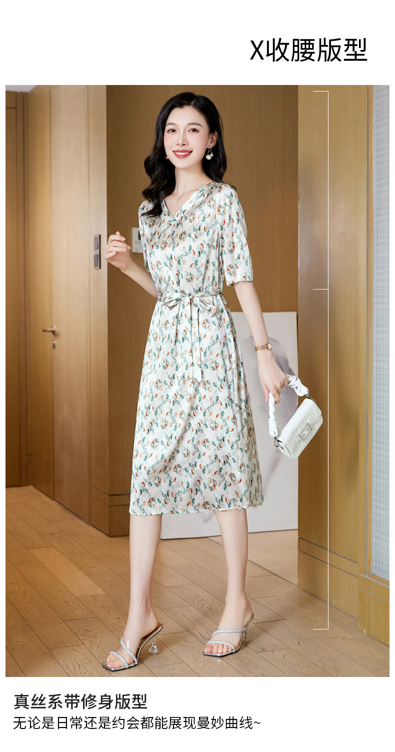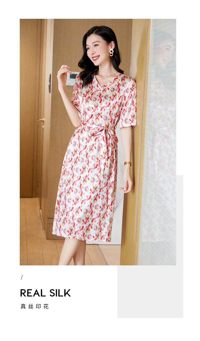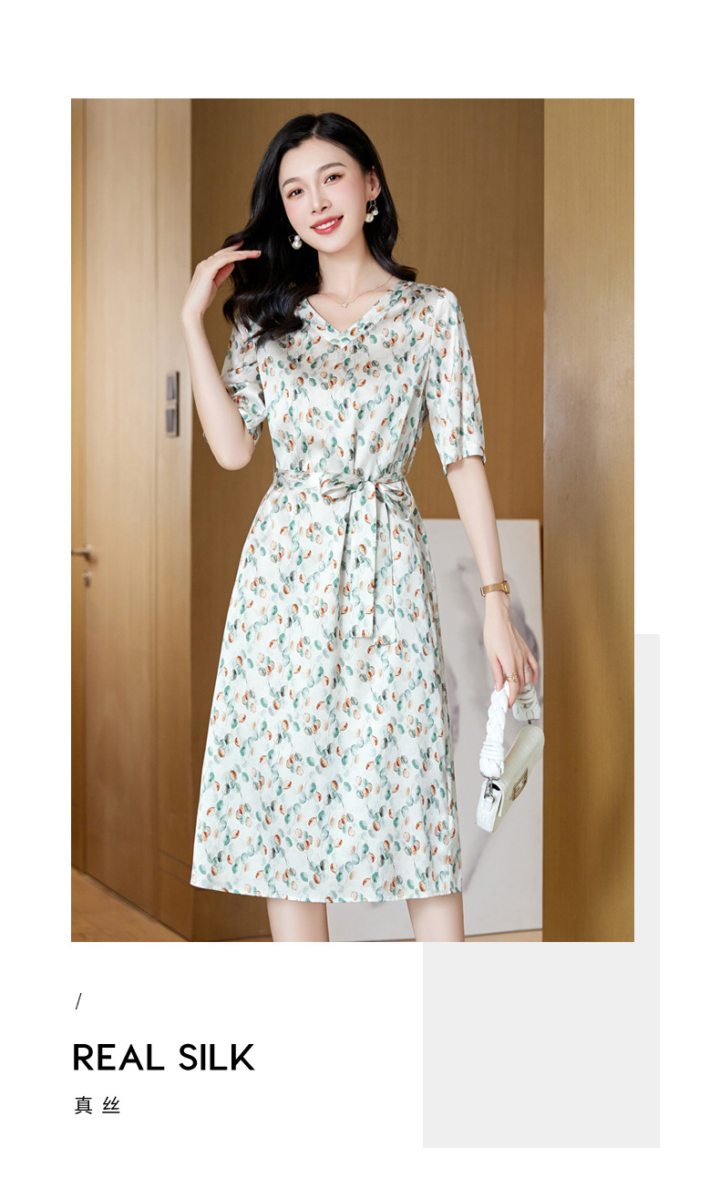高端真丝印花V领气质知性百搭优雅连衣裙LZW-ASE23066
