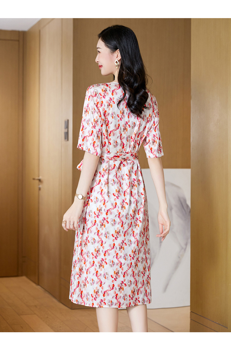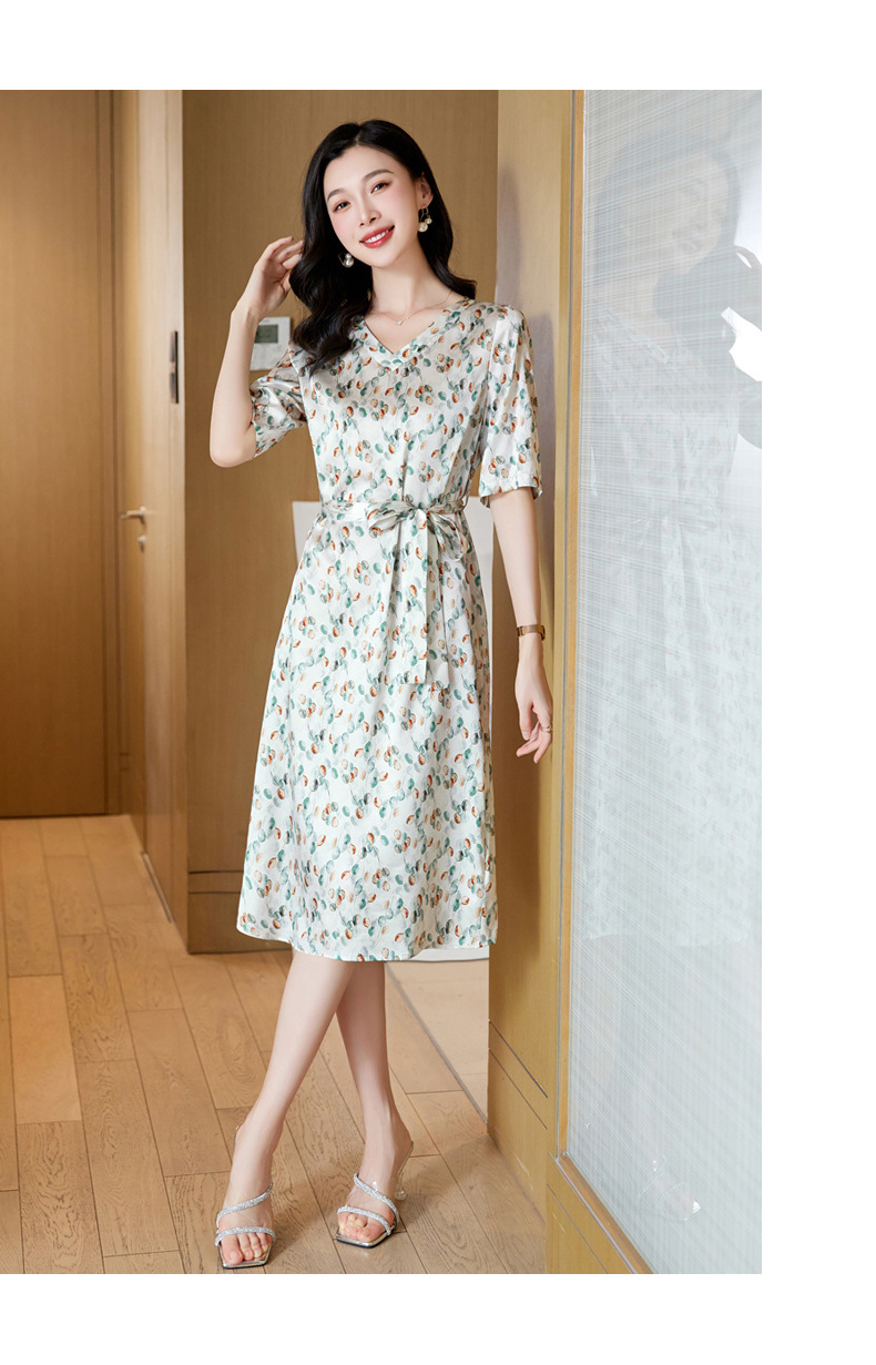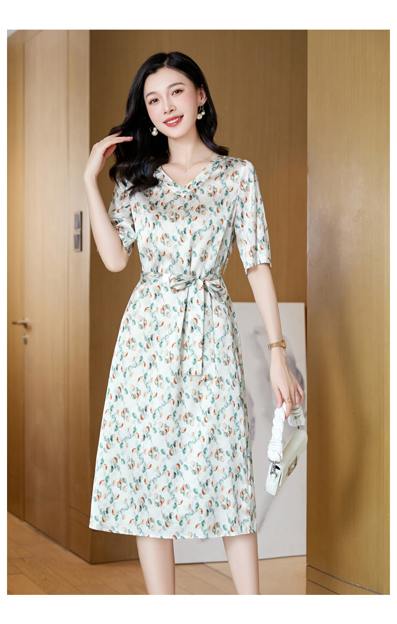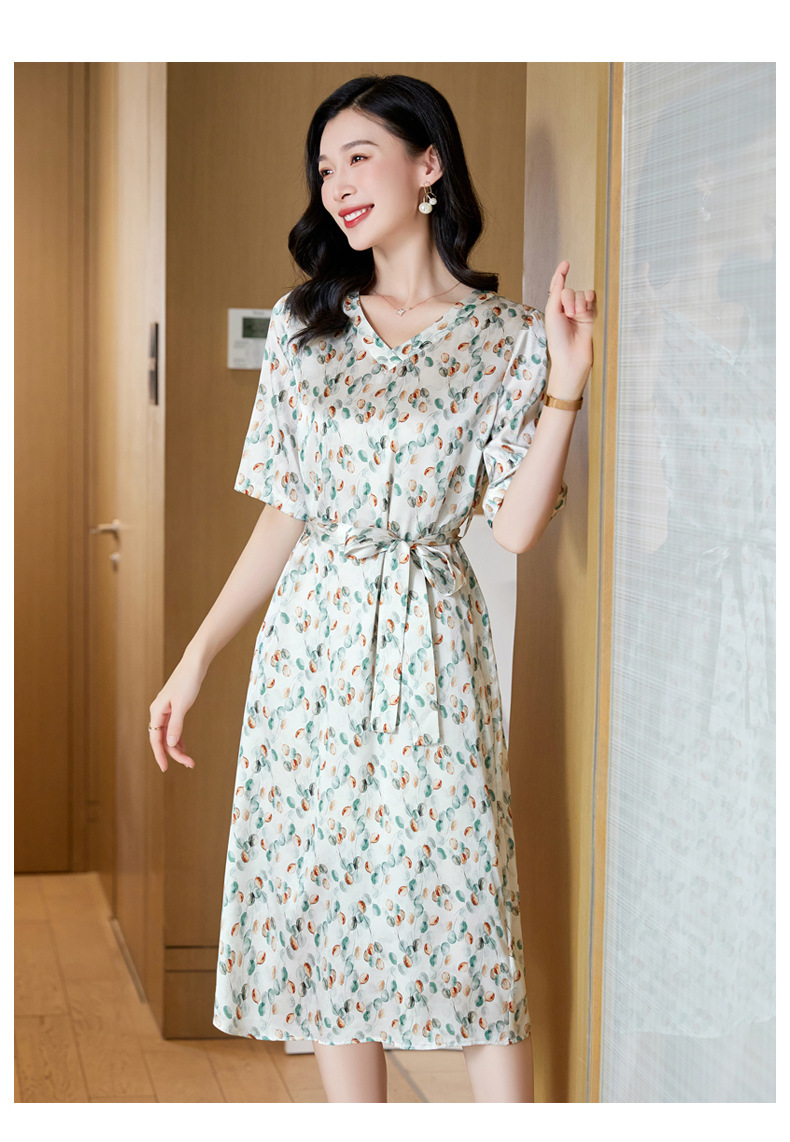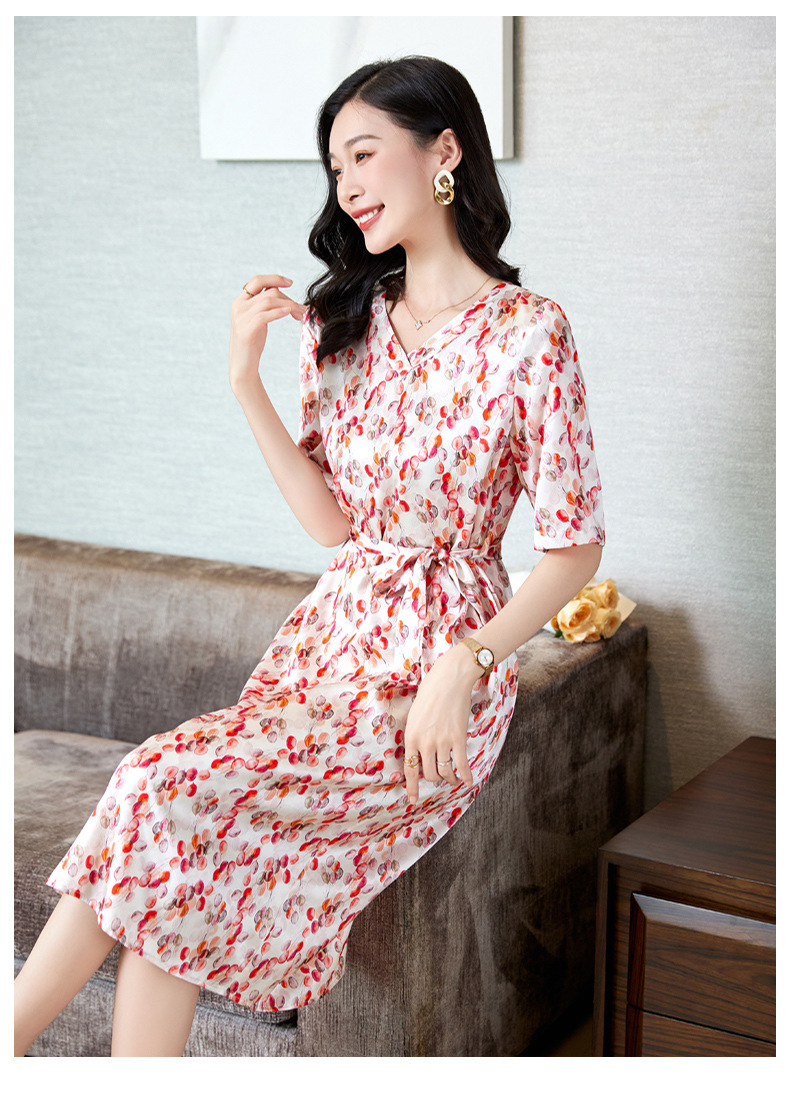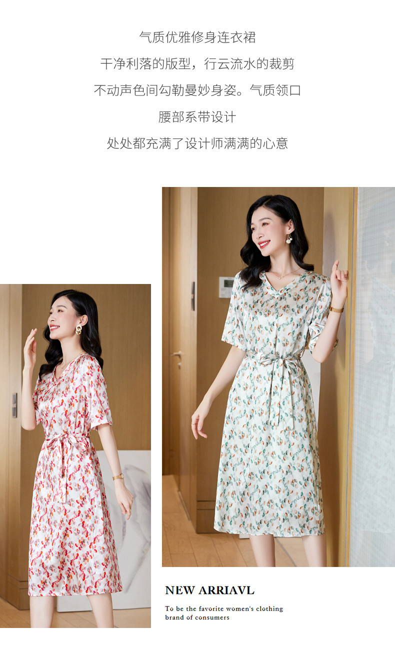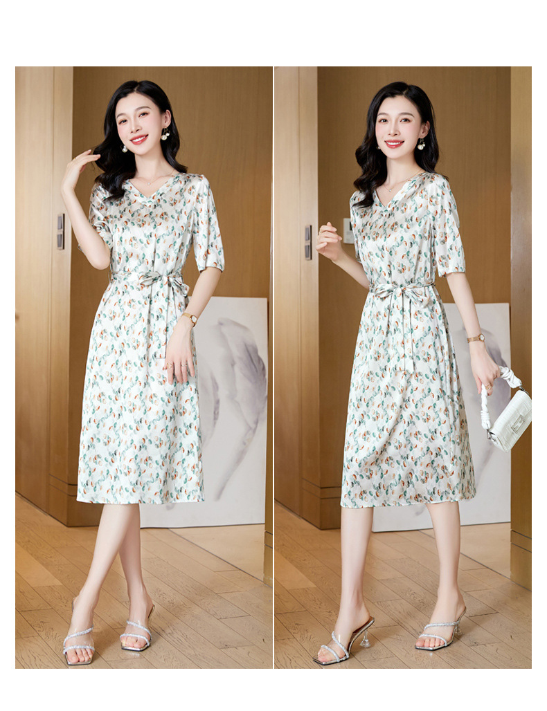 高端真丝印花V领气质知性百搭优雅连衣裙LZW-ASE23066