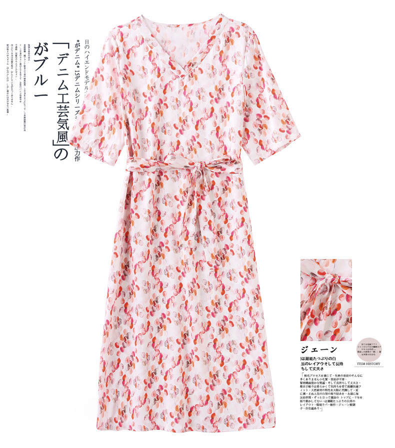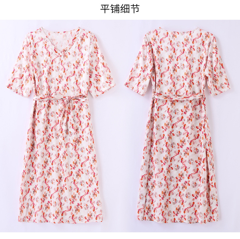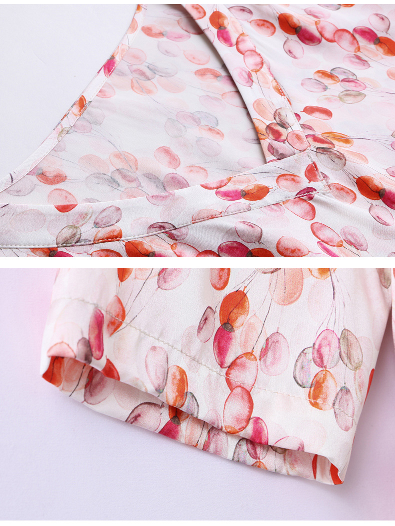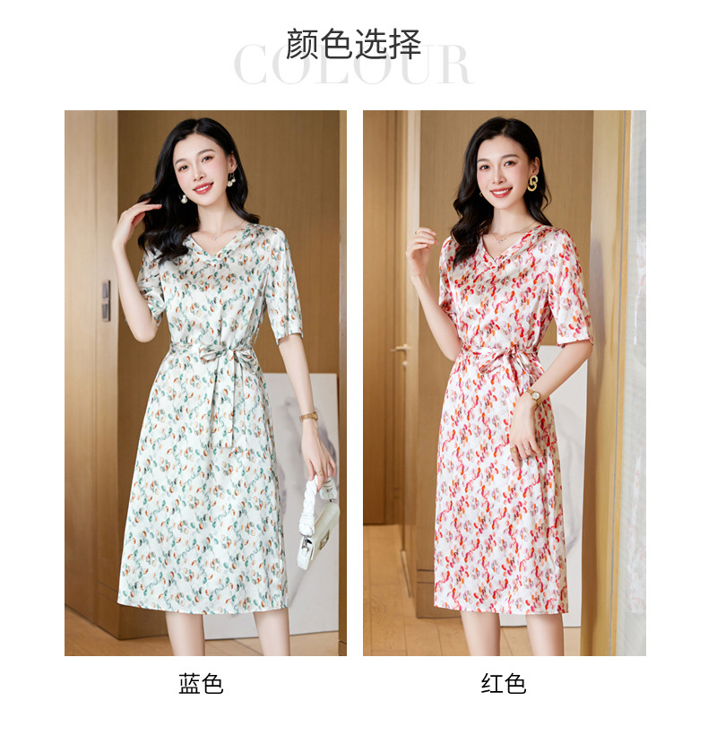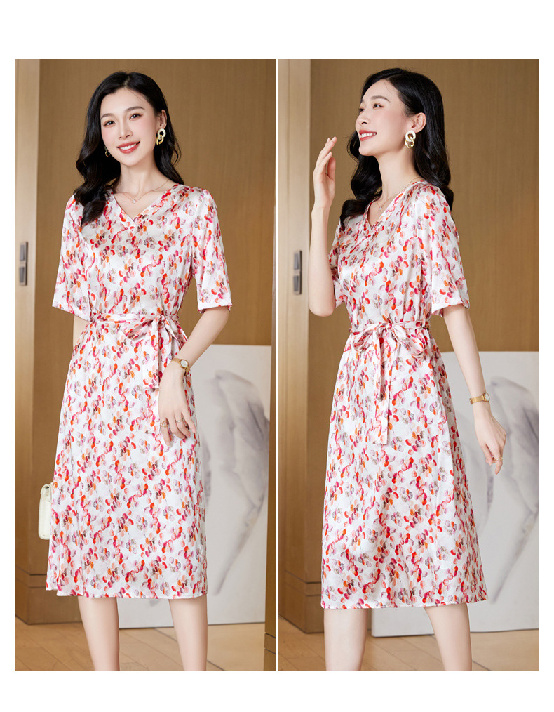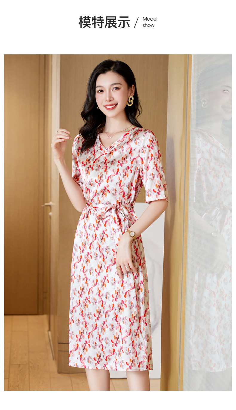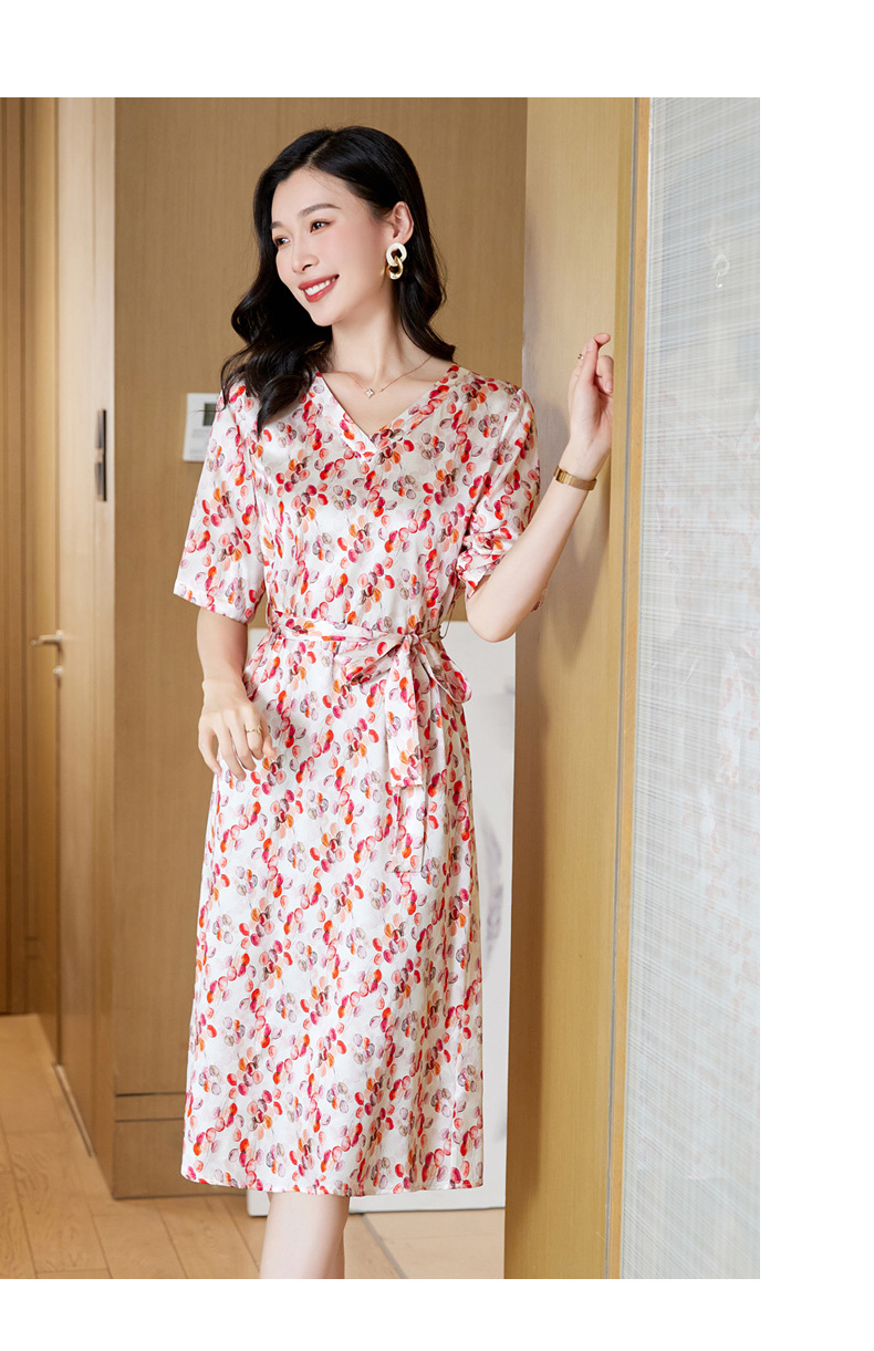 高端真丝印花V领气质知性百搭优雅连衣裙LZW-ASE23066