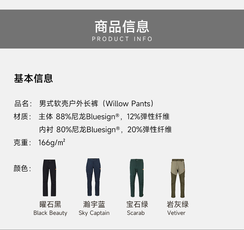 TUFTE 男士垂柳系列软壳长裤