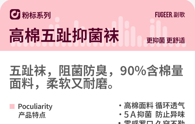 副歌5A抗菌中筒五指袜运动健身分趾袜男/女5趾袜3双装(女35-39,男39-43码)2345/1285(2月5号后发货)