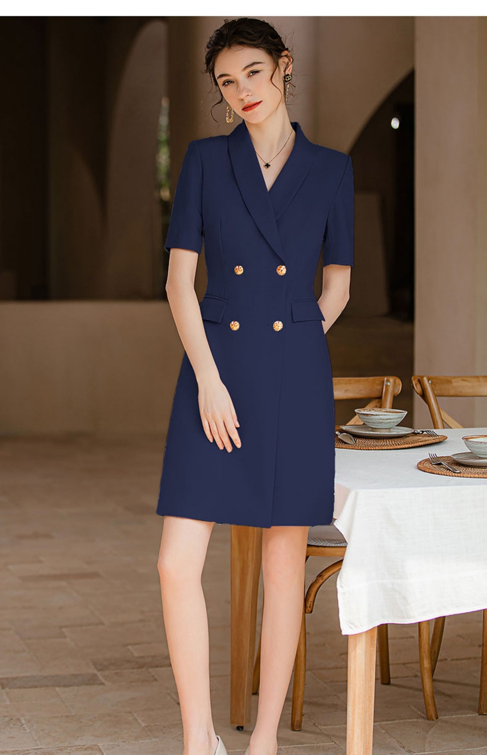 IWY/藏青色时尚连衣裙职业西装裙商务通勤收腰设计显瘦售楼部工装Q920-ZL