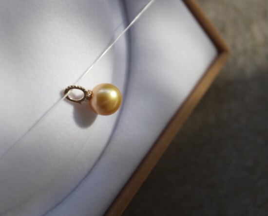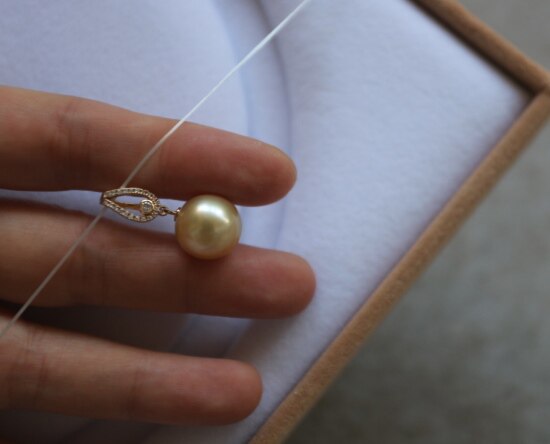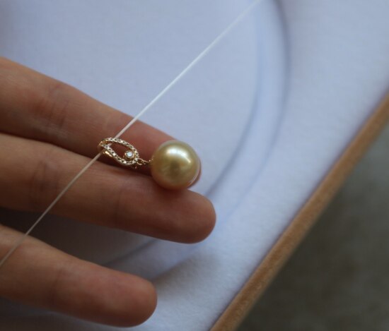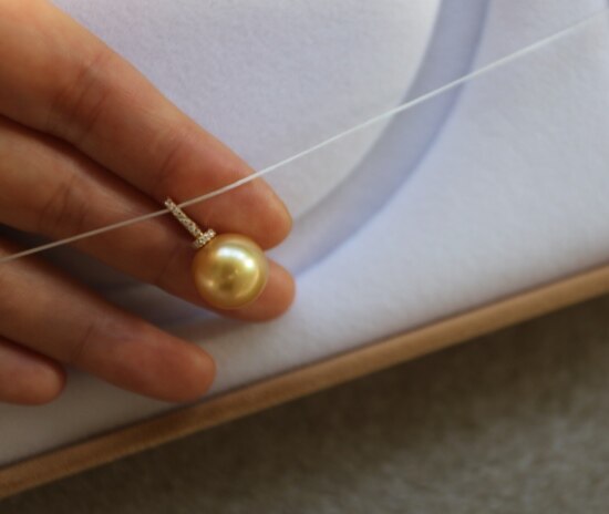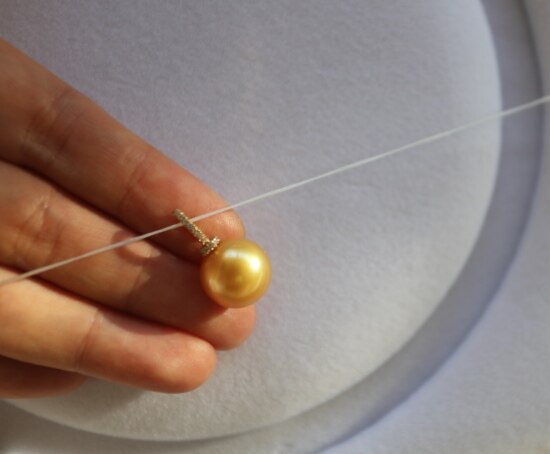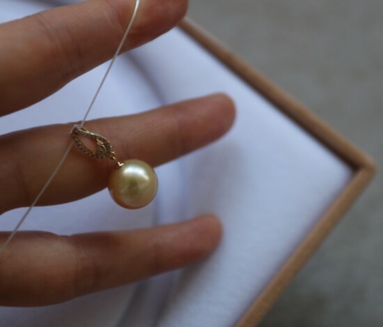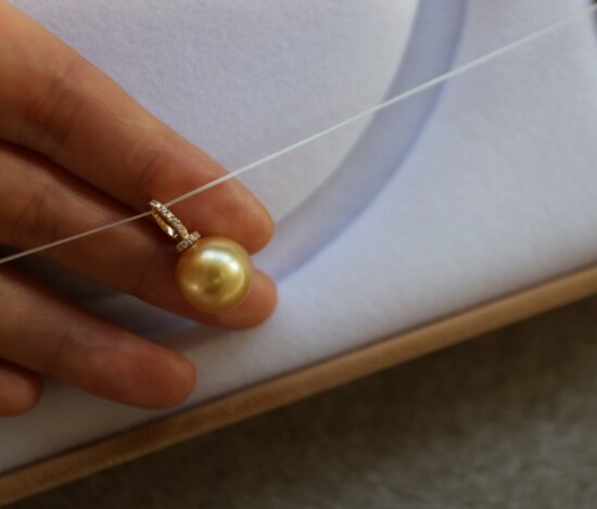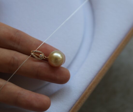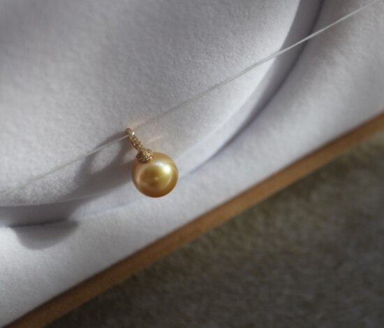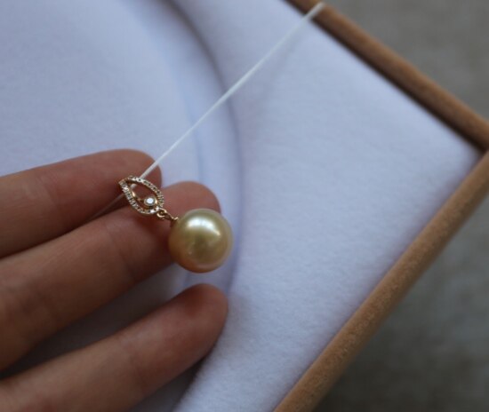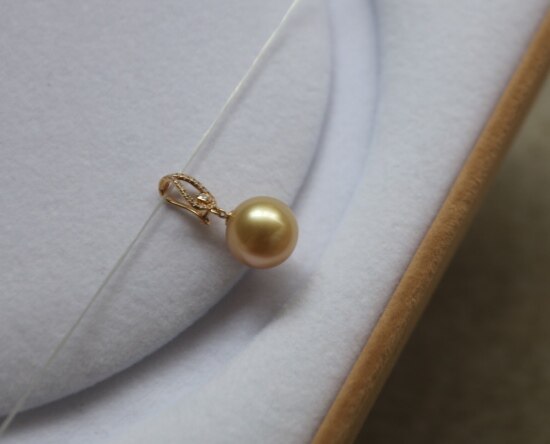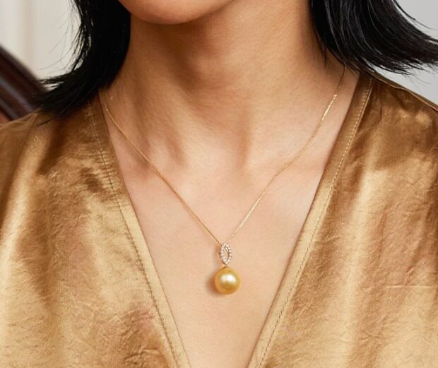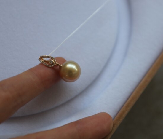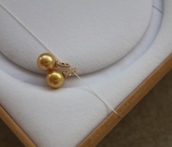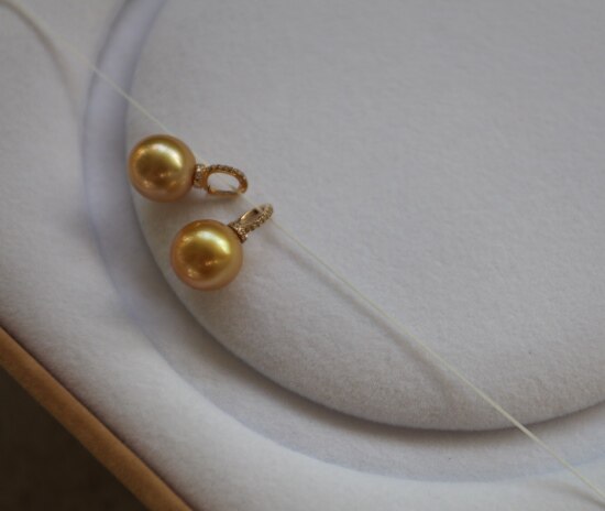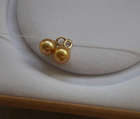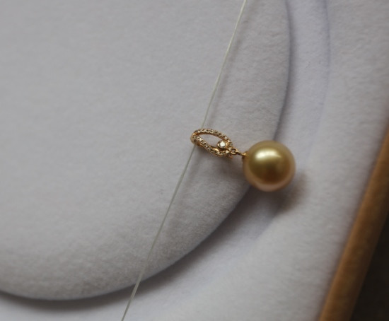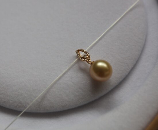 年少不知珍珠美 哈!天然海水 南洋金珠 18K+天然小碎钻 吊坠 二款入