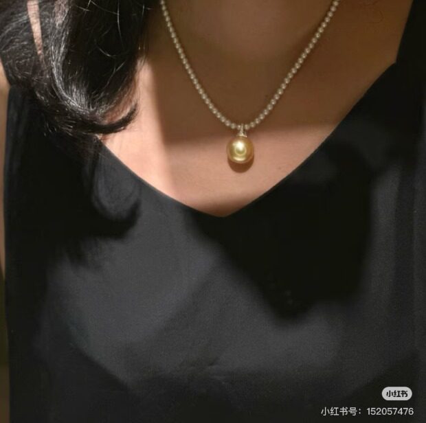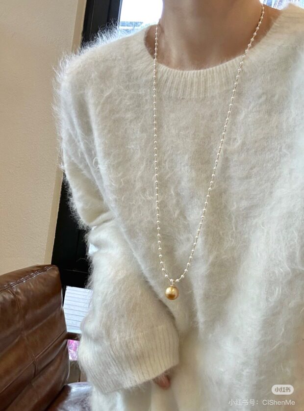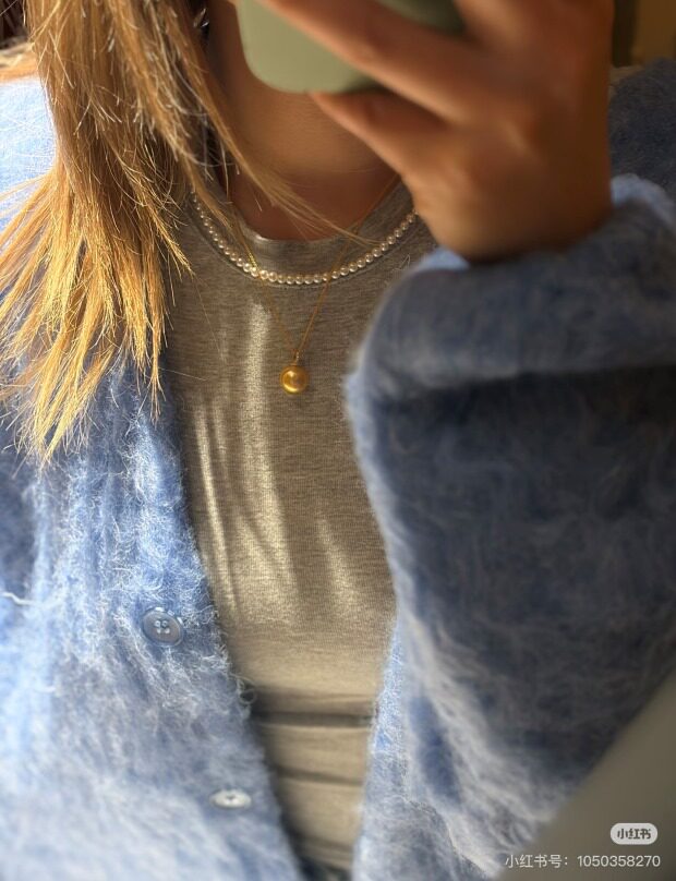 锁骨链或者稍微靠下一点 单戴或者叠戴小米珠 都能兼顾到