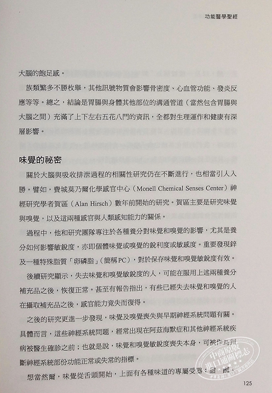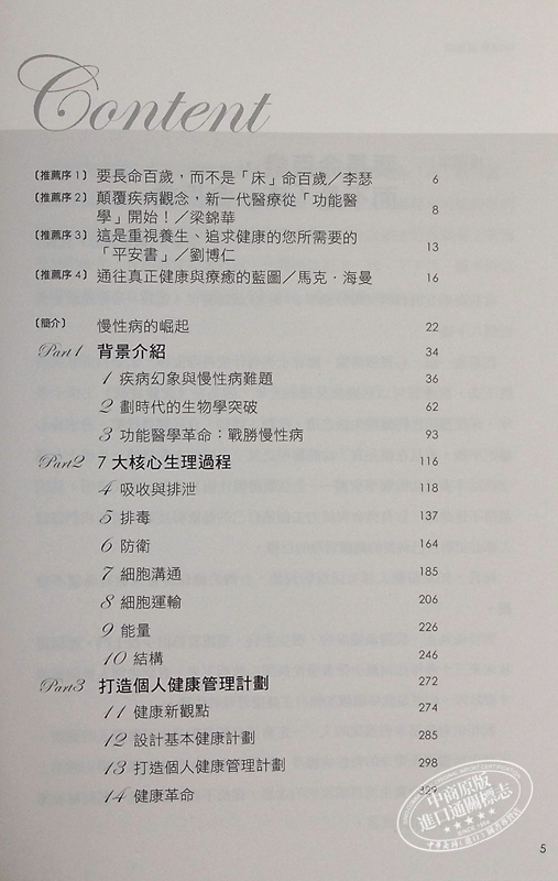 1.健康,量身訂做:功能醫學計劃就像雷射,只要你專注尋找個人專屬的鑰匙,就能解開促進人體機能的個體基因潛力。這是一套量身訂做的法則,能找出症狀背後的成因,並恢復體內平衡。它不只是改善飲食、多多運動、管理壓力,或減少接觸環境毒素等等,有益健康的基礎工作。重要的是,功能醫學就是有益健康的科學。疾病消失只不過是副作用而已。